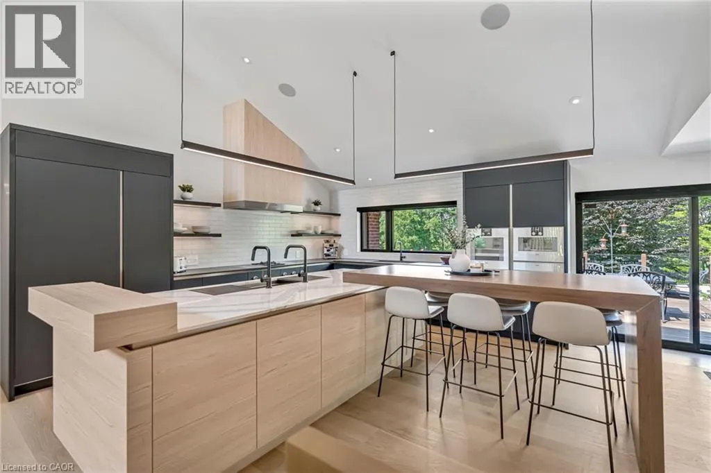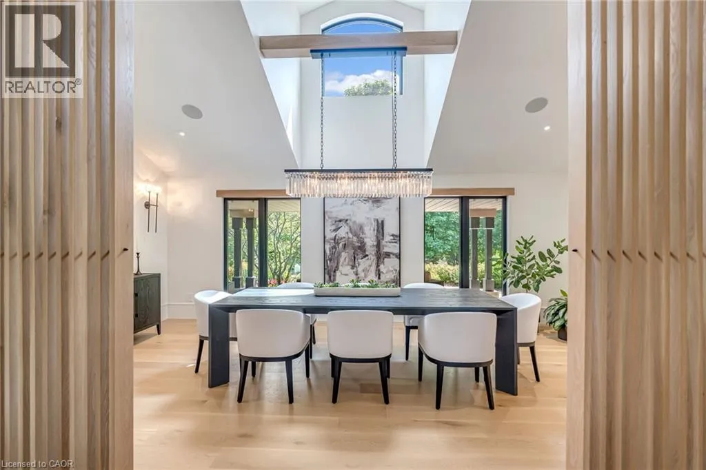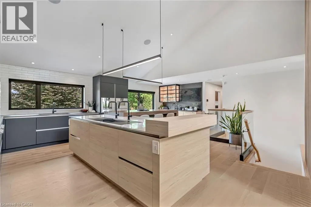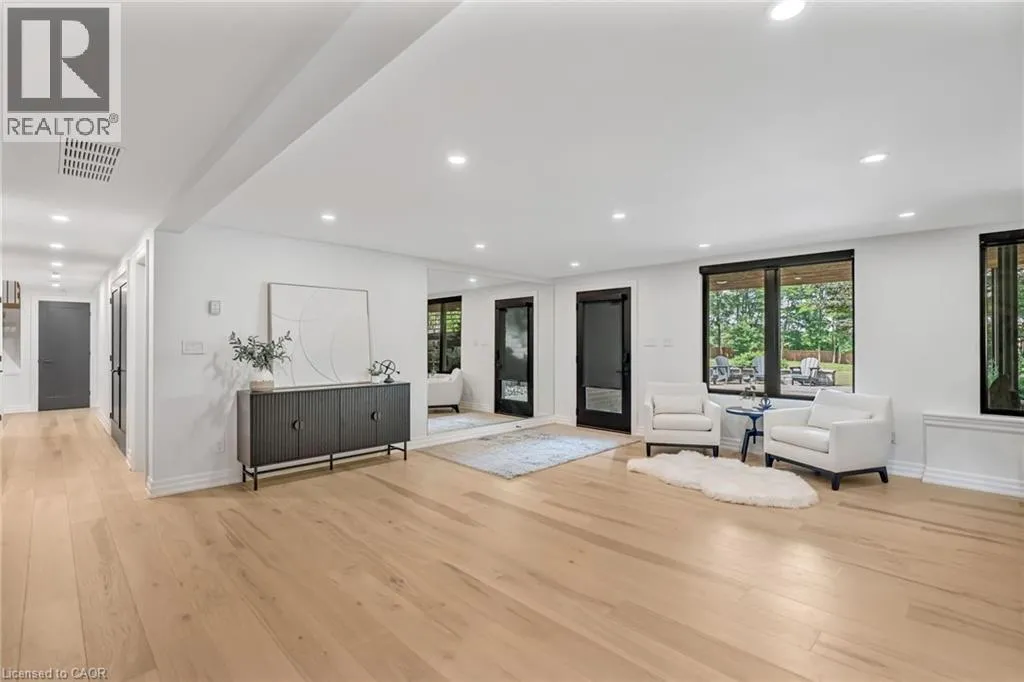 Brock Rd North to Fox Run Rd - turns into Fox Run Dr Too many upgrades to list!! Set on a private 1.8-acre lot in Fox Run Estates, this beautifully renovated 5 bedrooms, 4 bathroom home blends modern sophistication with natural surroundings. The backyard retreat offers a heated saltwater pool with waterfall, poolside sauna, multi-level steel-framed Brazilian hardwood decks, Credit Valley sandstone walkways, and lush gardens for complete privacy. Inside, over 5,000 sq. ft. of finished living space showcases white oak flooring, soaring vaulted ceilings, a contemporary kitchen with quartz and Dekton countertops, Gaggenau appliances, comprehensive control4 smart home system (Alarm, Sound, Blinds, Cameras, Automated Gate), and custom wood accents. The newly renovated walk-out basement includes three additional bedrooms, a gym, office, large family room, and separate garage entry, ideal for multi-generational living. Highlights include a Gerard steel roof, two furnaces, security system, fully fenced yard, front security gate, Generac generator, Sonos sound system, automatic irrigation, all backing onto seven untouched acres with a neighbourhood trail. Do not miss out, this is the pinnacle of luxury living! (id:27476)