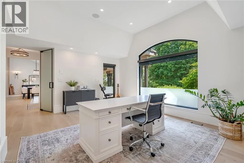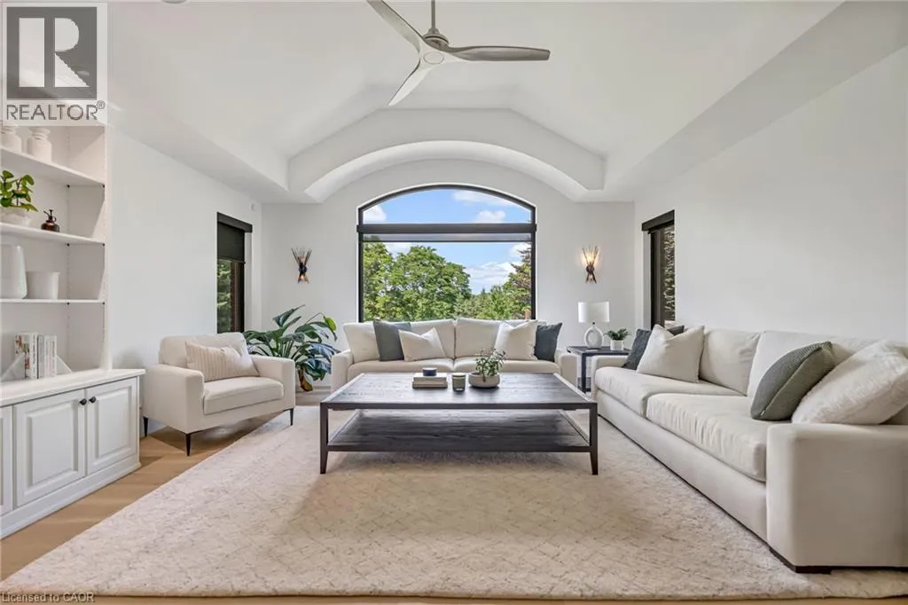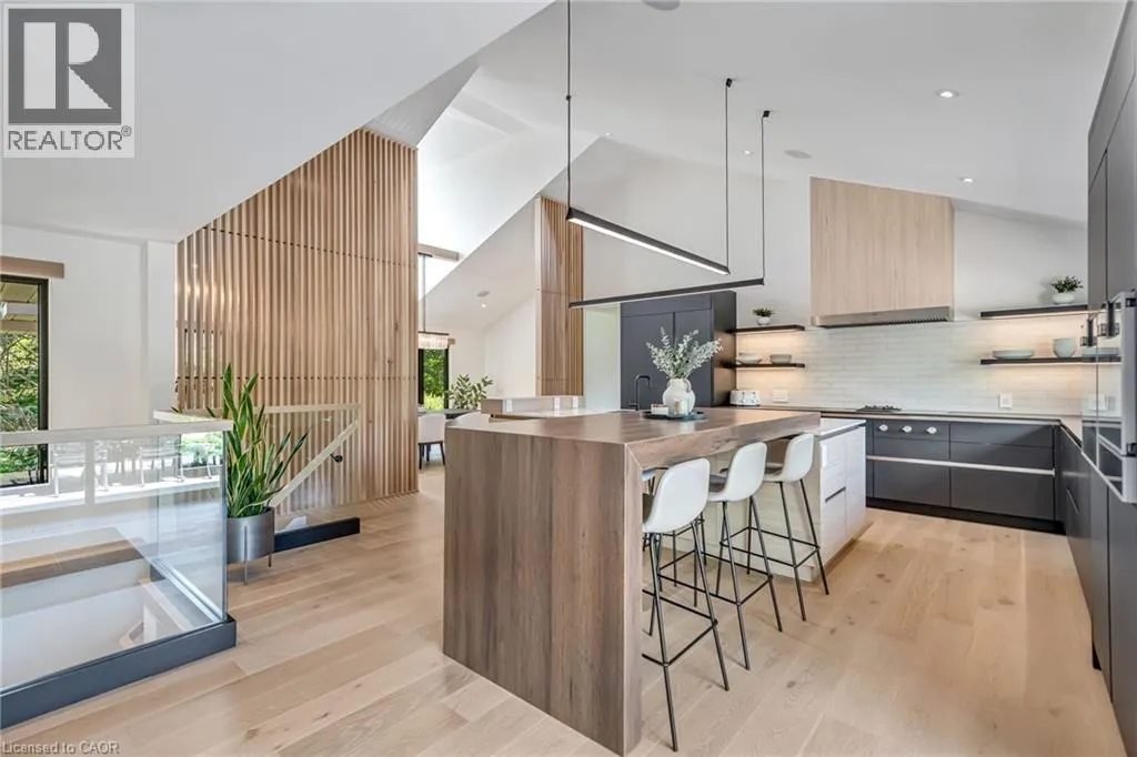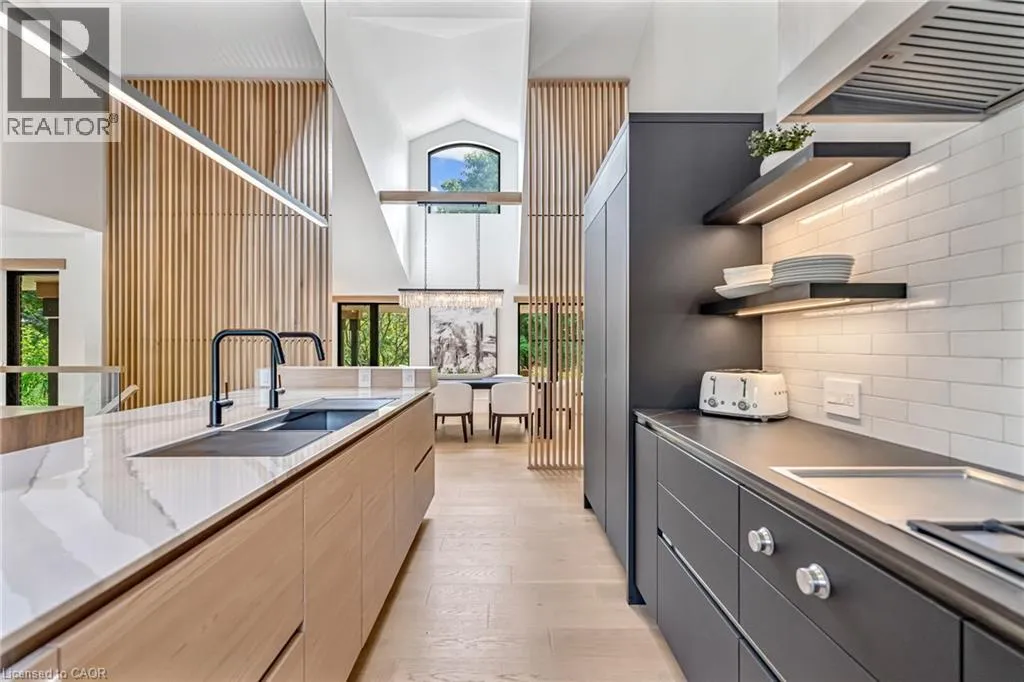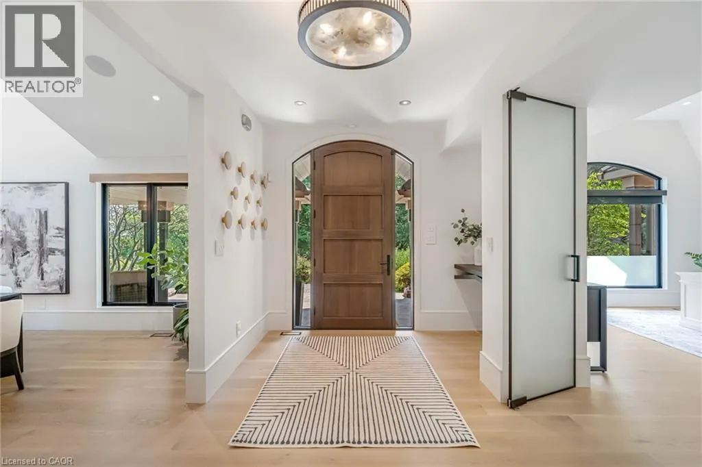 Brock Rd North to Fox Run Rd - turns into Fox Run Dr Too many upgrades to list!! Set on a private 1.8-acre lot in Fox Run Estates, this beautifully renovated 5 bedrooms, 4 bathroom home blends modern sophistication with natural surroundings. The backyard retreat offers a heated saltwater pool with waterfall, poolside sauna, multi-level steel-framed Brazilian hardwood decks, Credit Valley sandstone walkways, and lush gardens for complete privacy. Inside, over 5,000 sq. ft. of finished living space showcases white oak flooring, soaring vaulted ceilings, a contemporary kitchen with quartz and Dekton countertops, Gaggenau appliances, comprehensive control4 smart home system (Alarm, Sound, Blinds, Cameras, Automated Gate), and custom wood accents. The newly renovated walk-out basement includes three additional bedrooms, a gym, office, large family room, and separate garage entry, ideal for multi-generational living. Highlights include a Gerard steel roof, two furnaces, security system, fully fenced yard, front security gate, Generac generator, Sonos sound system, automatic irrigation, all backing onto seven untouched acres with a neighbourhood trail. Do not miss out, this is the pinnacle of luxury living! (id:27476)