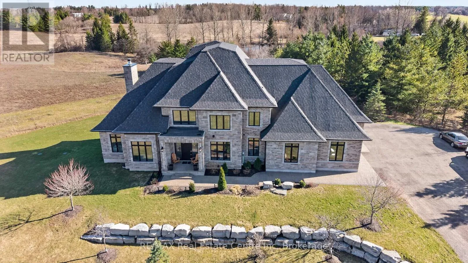Cross Streets: victoria and maltby. ** Directions: south on Victoria right on Maltby. Experience refined country living at its finest in this exceptional custom-built estate in Puslinch. Set on over 2 acres of breathtaking, picturesque grounds, this residence offers an unparalleled blend of privacy, sophistication, and timeless elegance in one of the region's most coveted locations.Thoughtfully designed with luxury in mind, this stunning home features 4 generously sized bedrooms and 4 spa-inspired bathrooms, complemented by in-floor heating that delivers year-round comfort and efficiency throughout the home.At the heart of the residence lies a true chef's kitchen, appointed with premium finishes, custom cabinetry, and an expansive layout ideal for both intimate gatherings and grand entertaining.The main floor primary suite serves as a private retreat, offering serene views and a refined space to unwind. Soaring ceilings and oversized windows flood the home with natural light, enhancing the seamless connection between indoor and outdoor living.Car enthusiasts and growing families will appreciate the impressive heated triple car garage, with ample space to comfortably accommodate up to 4 vehicles.Outdoors, the expansive estate setting provides endless opportunities to create your own private oasis while enjoying the tranquility of nature. Complete with natural gas service, this home perfectly balances rural charm with modern luxury.A rare and distinguished offering-where elegance, comfort, and prestige come together in perfect harmony. (id:27476)