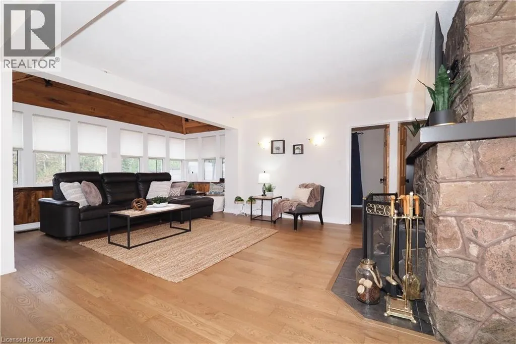 Pinebush road to Lake Road, right on Travelled Road, right on Holly Trail. Follow around the rear of 50 Holly Trail for parking Pride of ownership is evident as soon as you enter this home! Completely renovated (See supplement with long list of updates!) Updates that are not just skin-deep! Including plumbing, insulation, windows, flooring (included heated tile floors in the kitchen & bathroom!) Roof, exterior siding/stone & facia soffits. Then the updates continue with new kitchen, counters, appliances, bathroom w/heater air tub. The list goes on.. But here you aren't buying just a renovated home, you are buying into a laid back lifestyle in the Puslinch Lake community, Boating access via annual pass at McClintock's Ski school, You will love an evening in the hot tub enjoying the stars or enjoy a fire overlooking the lake from the extensively decked/landscaped front yard. This home will not disappoint! (id:27476)