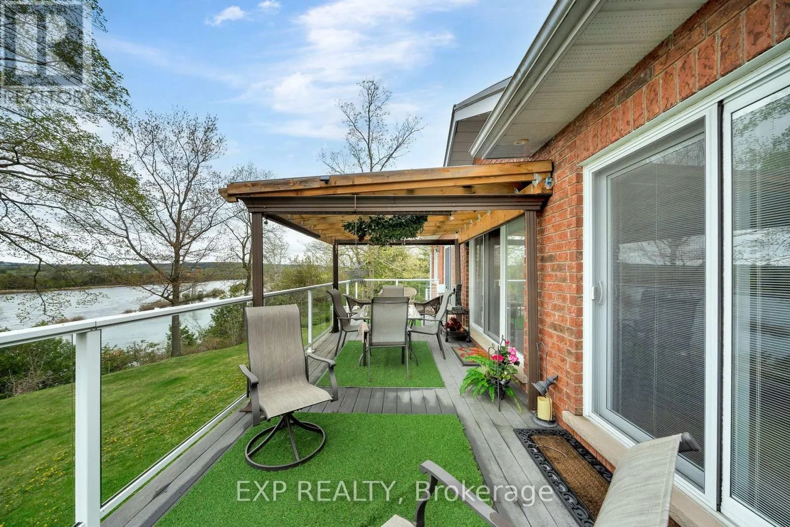 Cross Streets: Frankford Road and River Drive. ** Directions: From Frankford Road to River Drive. Nestled along the scenic shores of the Trent River in Frankford, this custom-built all brick bungalow with over 3,400 sq. ft. of finished living space offers the perfect blend of waterview serenity and small-town convenience. The home is versatile and perfect for multi- gen families, downsizers and families. Situated on a gently sloping 105 x 100+ lot, this meticulously maintained home and boasts a walkout basement and in-law suite. Enjoy the benefits of city services like municipal water and sewer services while living in a peaceful country setting. Custom built in 2006 by Paul Stinson an exceptional luxury homebuilder.Inside, the main level features a bright, well maintained home ideal for family living and entertaining. Enjoy outdoor living on the large 36 foot by 9 foot composite deck with access from the kitchen, living room and primary bedroom. Main floor laundry and inside access to the 1.5 car garage make life easy. There is room for everyone with spacious bedroom, sitting area, 3 pce bathroom and private dining room. The lower level includes a fully equipped in-law suite, complete with 2 large bedrooms, Office/den, 4 pce bathroom , kitchen, dining room, laundry room and a cozy living areaperfect for a multi-gen family or to welcome guestsBuilt for comfort and efficiency, the home features a durable metal roof and gutter guards for worry-free maintenance. Home includes landscaped yard, and patio areas on both upper and lower levels of the home. Whether you're enjoying morning coffee on the deck overlooking the Trent River, or cozying up indoors with panoramic water views, this property is a rare opportunity to enjoy waterview living year-round. Don't miss your chance to own a slice of paradise in beautiful Frankford. (id:27476)