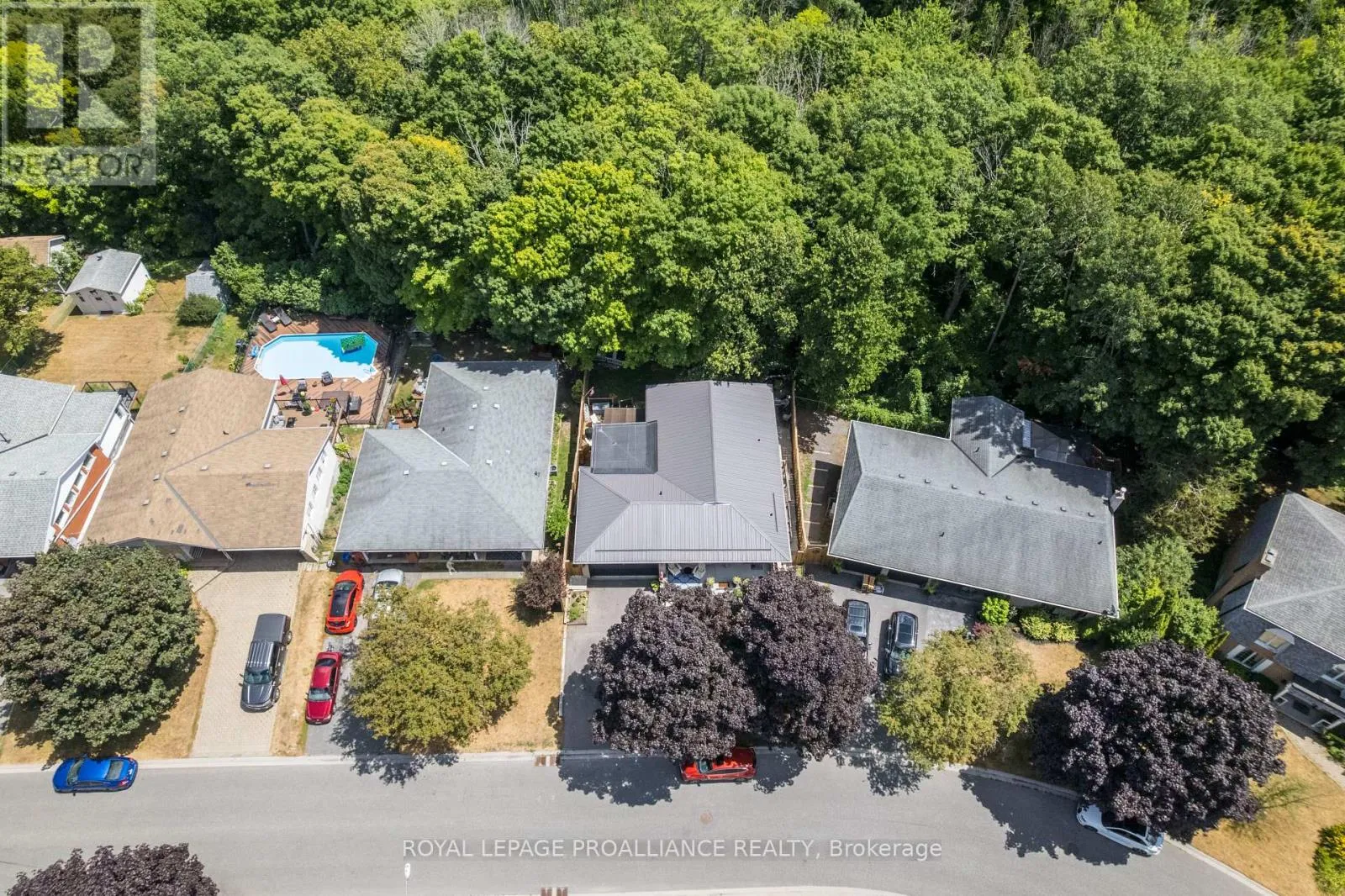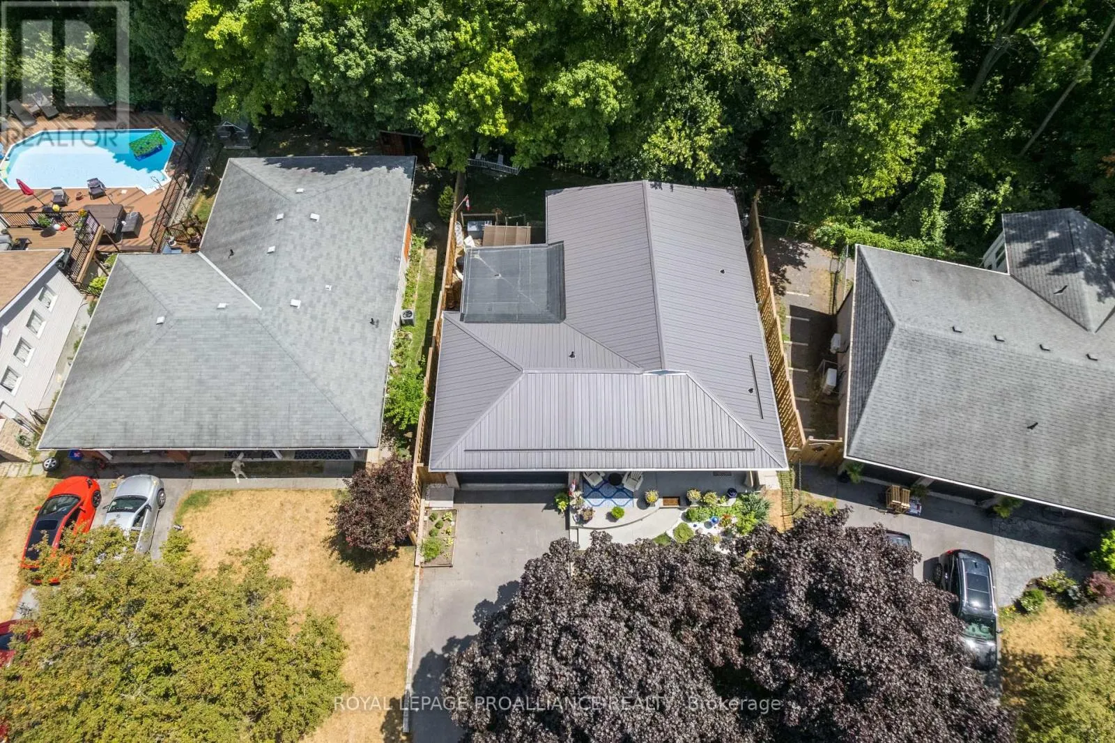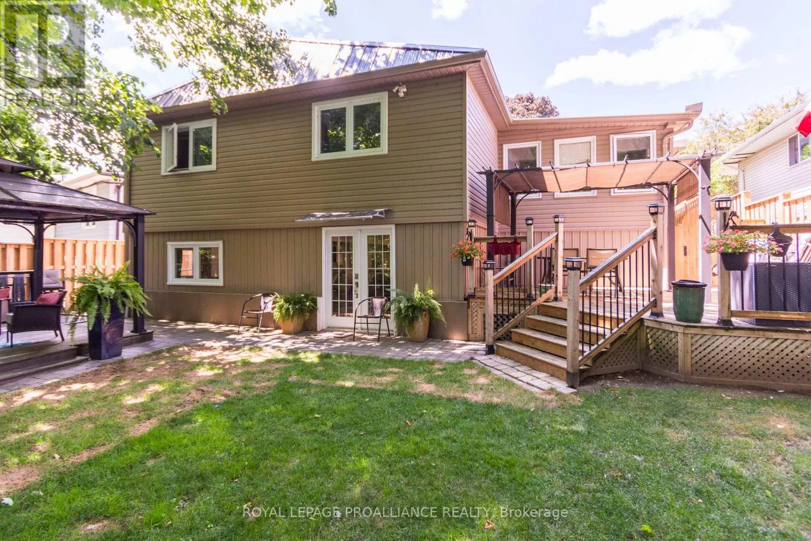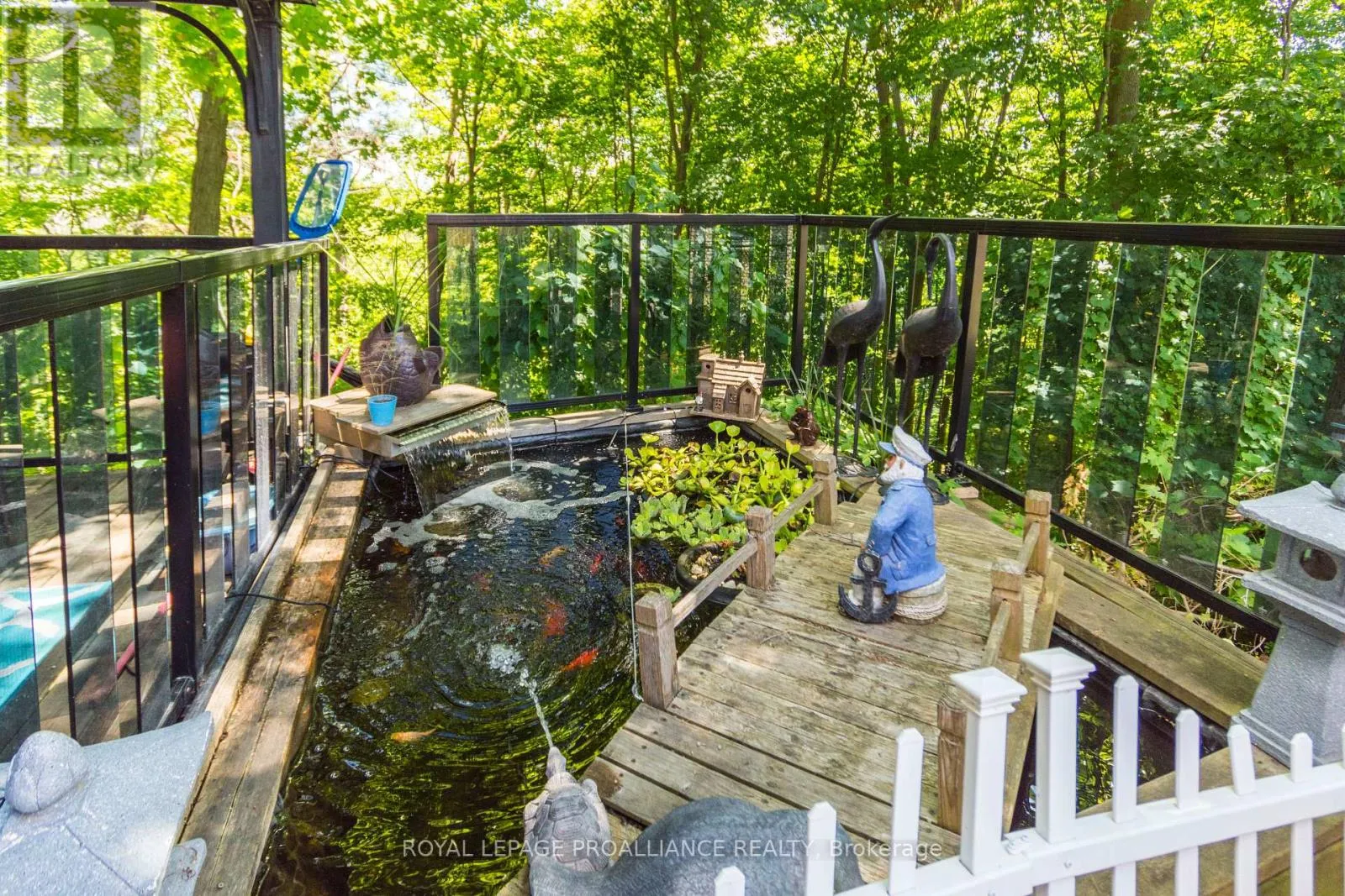 Cross Streets: Tripp Blvd/Parkview Heights. ** Directions: Dundas Street West to Tripp Blvd to Parkview Heights. Located in a desirable neighbourhood of Trenton, this 3 bedroom home features a finished walkout lower level overlooking a serene ravine. The upgraded kitchen offers modern finishes, while the lower level family room opening to a private backyard retreat with a year-round fish pond. A bonus room on the main floor provides the perfect space for an artists studio or hobbyist's dream, plus office area in lower level. Complete with 2 bathrooms and storage under the bonus room. This property combines comfort, privacy, and creative potential. (id:27476)