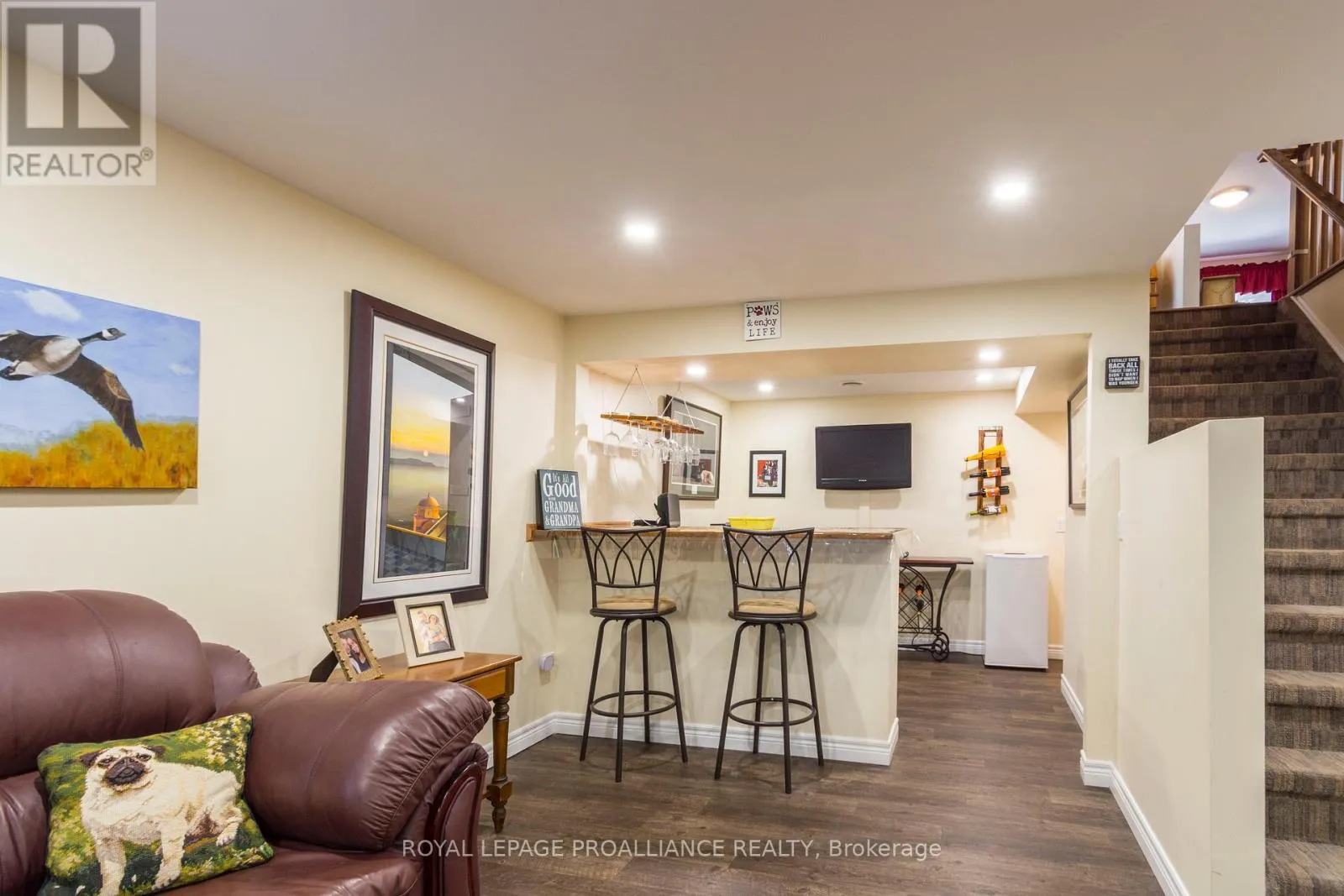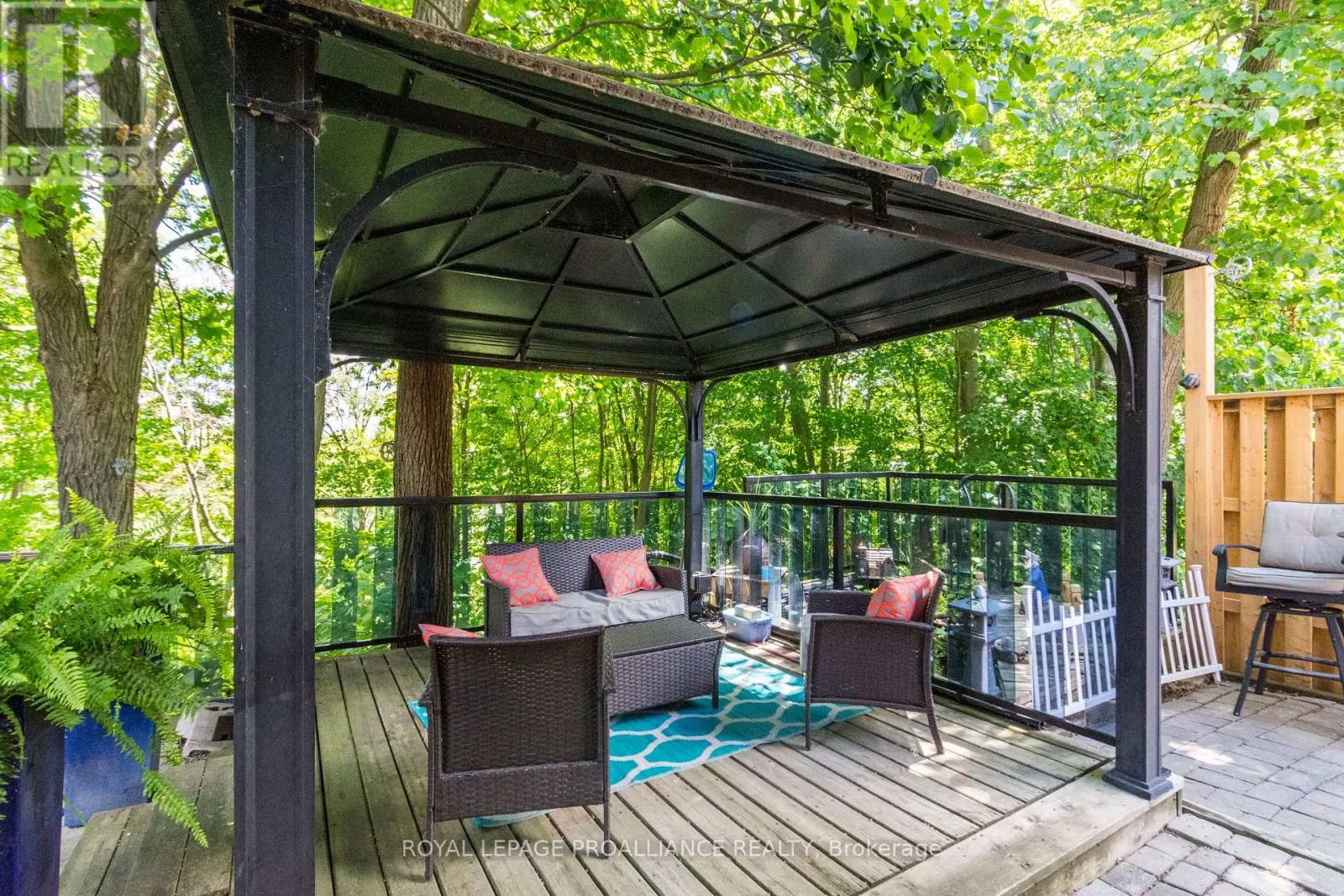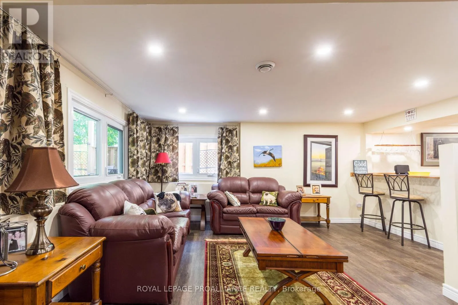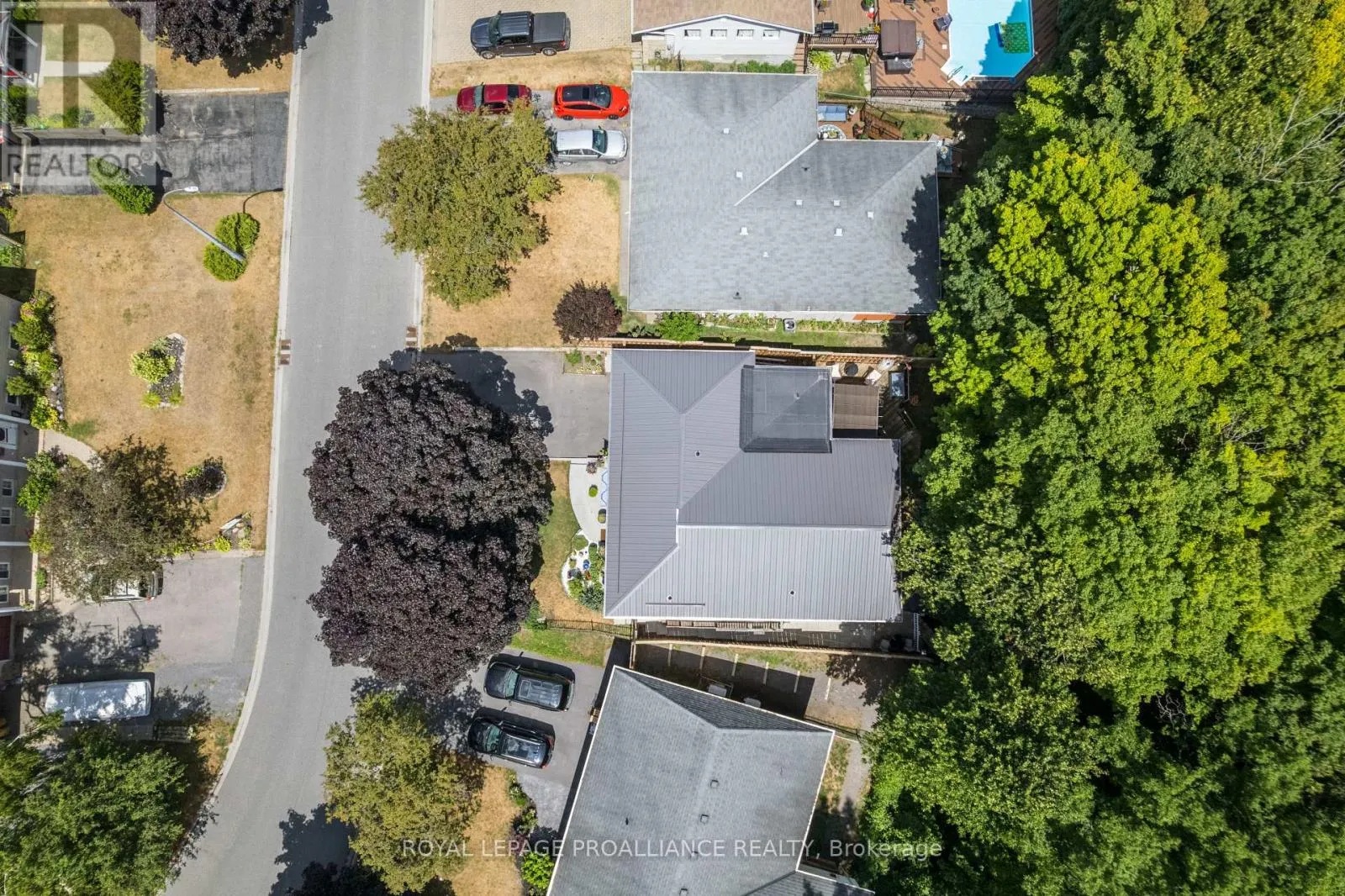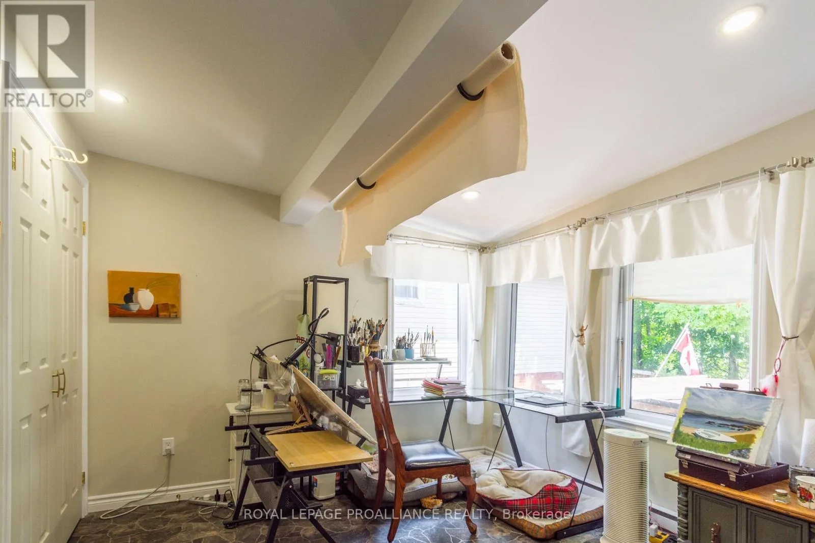 Cross Streets: Tripp Blvd/Parkview Heights. ** Directions: Dundas Street West to Tripp Blvd to Parkview Heights. Located in a desirable neighbourhood of Trenton, this 3 bedroom home features a finished walkout lower level overlooking a serene ravine. The upgraded kitchen offers modern finishes, while the lower level family room opening to a private backyard retreat with a year-round fish pond. A bonus room on the main floor provides the perfect space for an artists studio or hobbyist's dream, plus office area in lower level. Complete with 2 bathrooms and storage under the bonus room. This property combines comfort, privacy, and creative potential. (id:27476)