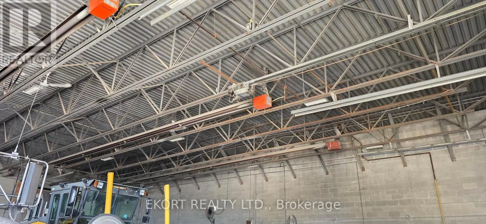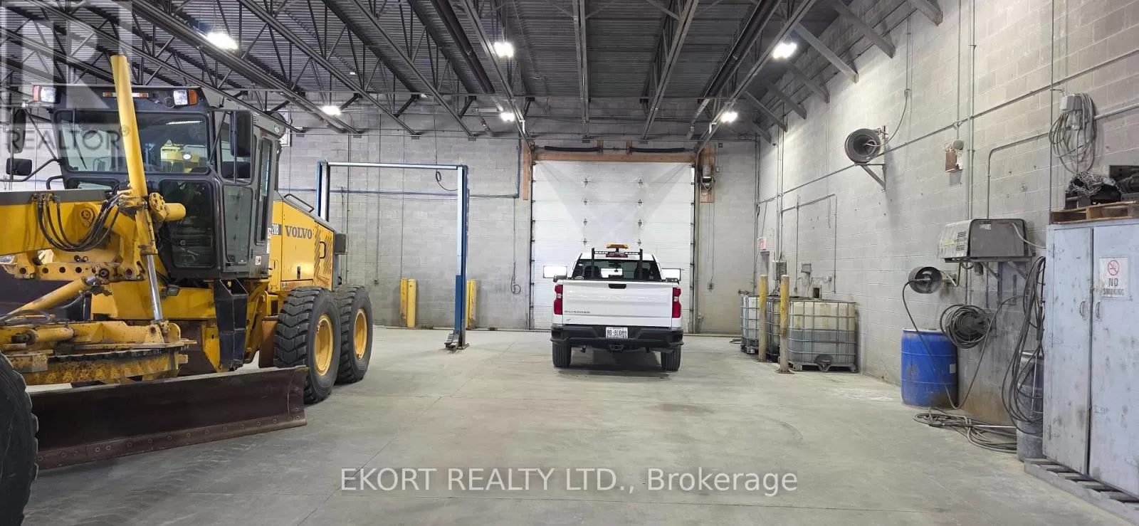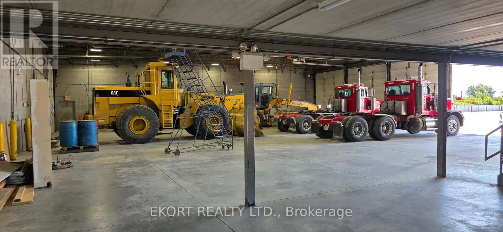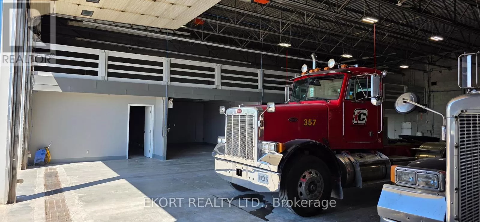 Bellevue Drive and Wallbridge Loyalist Road Located in Belleville just off Hwy 401 (Exit 538), this 7,650 sqft heavy vehicle maintenance building is in a prime, high-exposure location that offers exceptional accessibility for transportation and logistics operations. Included in the asking price is approximately 1-acre of land, providing space for parking or outdoor storage, more land is available if required (subject to additional pricing). This building would be an ideal space for a heavy truck maintenance and storage yard, a trailer marshalling yard, or a maintenance depot. The building features 6 overhead bay doors that are 16 ft x 14 ft, and 2 loading docks, making it ideal for large vehicle access. With a ceiling height of 17.5 ft to the truss and 21.2 ft to the roof deck, there is plenty of vertical clearance for heavy-duty operations. Additional highlights include floor drains on the north and south sides of the building with an oil separator, a compressor (Tenant's cost to maintain), 200 amp service, and a main hydro service backup generator. The property is also fully secured with 24/7 access. Asking rent includes all major operating costs - gas, hydro, water/septic, snow removal, realty taxes, building insurance, and security system. There are additional office spaces in the main building on site that are not included in the asking rent, but are available based on a Tenant's need. (id:27476)