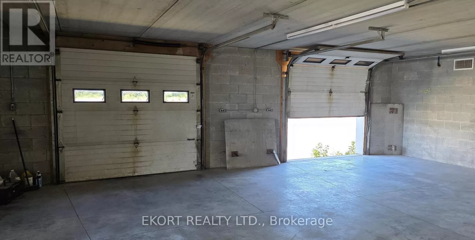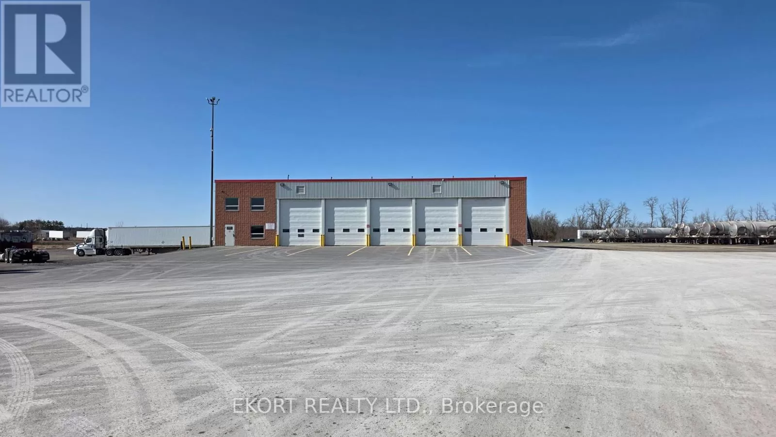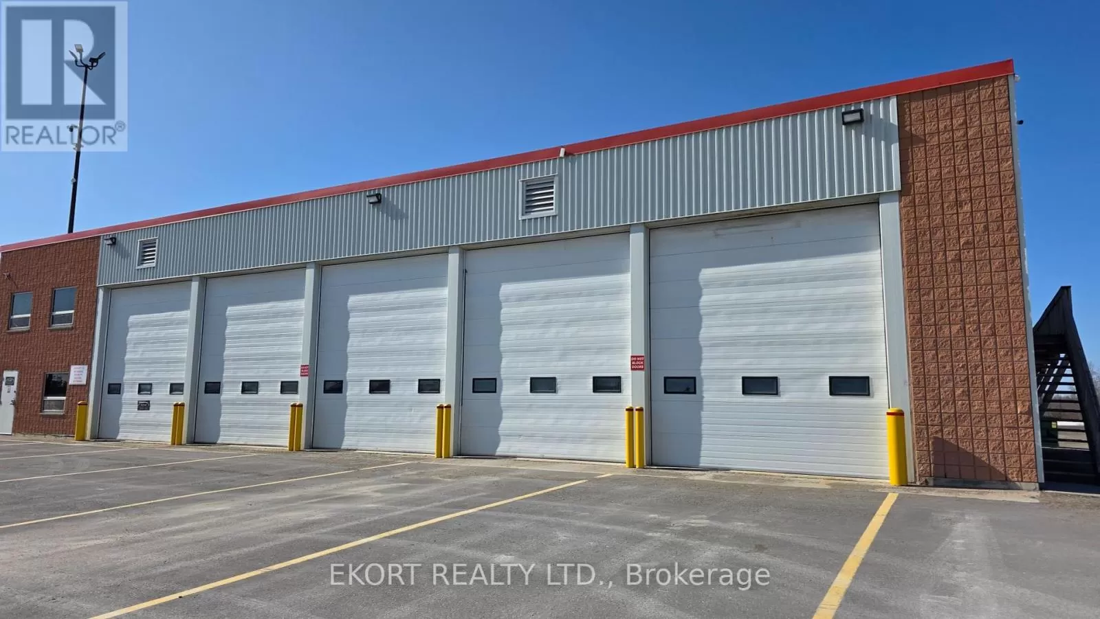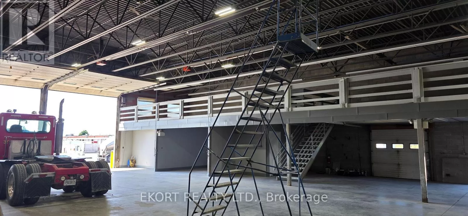 Bellevue Drive and Wallbridge Loyalist Road Located in Belleville just off Hwy 401 (Exit 538), this 7,650 sqft heavy vehicle maintenance building is in a prime, high-exposure location that offers exceptional accessibility for transportation and logistics operations. Included in the asking price is approximately 1-acre of land, providing space for parking or outdoor storage, more land is available if required (subject to additional pricing). This building would be an ideal space for a heavy truck maintenance and storage yard, a trailer marshalling yard, or a maintenance depot. The building features 6 overhead bay doors that are 16 ft x 14 ft, and 2 loading docks, making it ideal for large vehicle access. With a ceiling height of 17.5 ft to the truss and 21.2 ft to the roof deck, there is plenty of vertical clearance for heavy-duty operations. Additional highlights include floor drains on the north and south sides of the building with an oil separator, a compressor (Tenant's cost to maintain), 200 amp service, and a main hydro service backup generator. The property is also fully secured with 24/7 access. Asking rent includes all major operating costs - gas, hydro, water/septic, snow removal, realty taxes, building insurance, and security system. There are additional office spaces in the main building on site that are not included in the asking rent, but are available based on a Tenant's need. (id:27476)