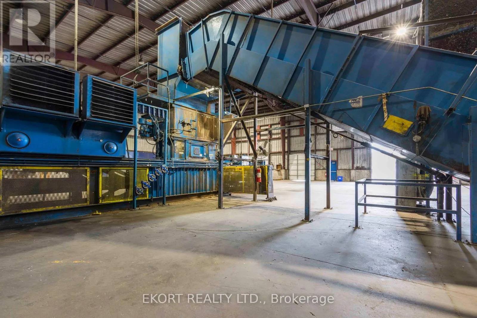 Cross Streets: Sidney and West. ** Directions: West St. The subject site is developed with a 23,757 square foot industrial building constructed in stages between 1990 and 2007. Gross floor area of the building is as follows: Industrial Space 21,118 Sq. Ft. Office 2,639 Sq. Ft. Total 23,757 Sq. Ft. The building is a prefabricated steel frame structure on a poured concrete foundation. The exterior is clad in steel and the roof is steel. The office pod is situated along the east side of the building, fronting onto West Street. It consists of a reception area, two private offices, a board room, two staff washrooms and a kitchenette. In addition, there is a separate shop office that includes office space, a lunchroom, and men's and women's locker rooms and washrooms. The industrial portion has a clear height of 26 feet. It is demised into two areas, including the dumping area and the sorting area. The dumping area has a lower floor than the sorting area. It is equipped with conveyor belts that lead to the sorting floor. There are two curtain doors to the west side of the building, both of which are approximately 22 feet in height. The sorting area has three dock-high loading doors with levellers, as well as a grade level door. The doors all lead to the west side of the building. The industrial area is unheated with no ceiling or wall finishes. The electrical service is 400 Amp, 600 volt, 3-phase with a transformer. The office pod is heated by a gas fired furnace with central air conditioning. The building is somewhat specialized for its current use (recycling sorting facility) but would suit a variety of similar manufacturing or laboratory uses. (id:27476)