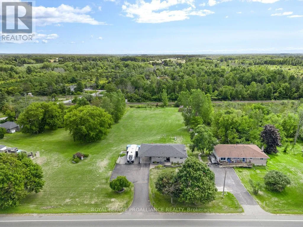 Cross Streets: Highway #2. ** Directions: West on Hwy #2 towards Brighton. Welcome to this beautifully maintained 4-bedroom bungalow sitting on an expansive country lot. With nearly 2,000 sq. ft. of finished living space, a bright open layout, and endless outdoor room to enjoy, this property blends comfort, style, and convenience. Bright and airy open-concept living and dining area with large windows. Modern galley kitchen with walk-in pantry and breakfast nook. 3 comfortable bedrooms, including a spacious primary with warm, neutral tones. Stylish 4-piece bathroom with granite vanity, tiled shower/tub combo, and modern finishes. Hardwood-style flooring throughout main living spaces. Fully finished basement offering versatile living space. Large recreation room with room for a theatre setup, games, or entertaining. 4th bedroom/guest suite plus additional flex space for a home gym, office, or playroom. Mudroom entry and bright windows with pot lighting. Massive backyard with mature trees and wide-open green space perfect for kids, pets, and summer gatherings. Concrete patio for BBQs and outdoor entertaining. Covered carport with plenty of parking for vehicles, RVs, or trailers. Aerial views showcase just how expansive this property really is. Enjoy the best of both worlds the peace and privacy of country living while still being just minutes from schools, shopping, and town amenities. This bungalow is perfect for families, downsizers, or anyone looking for more space and a slower pace without losing the convenience of nearby amenities. (id:27476)