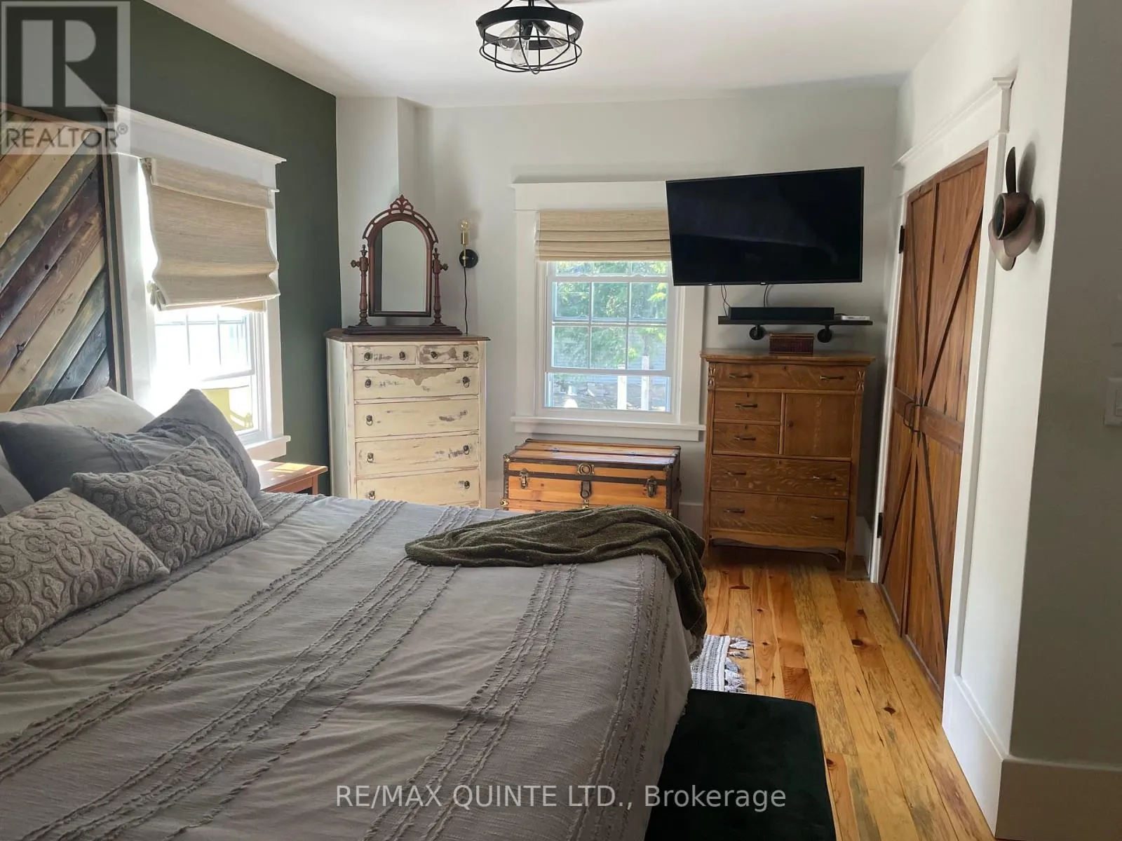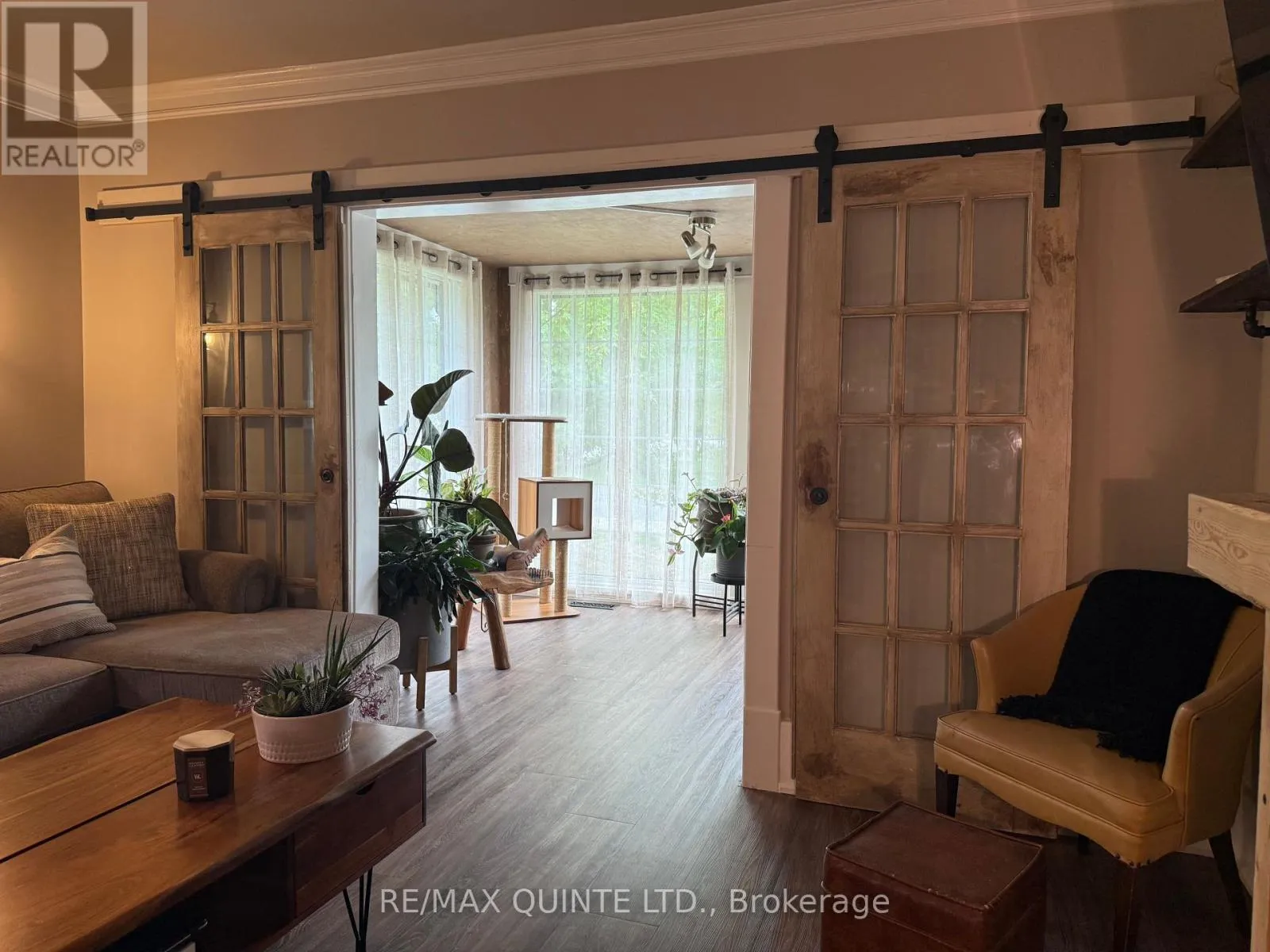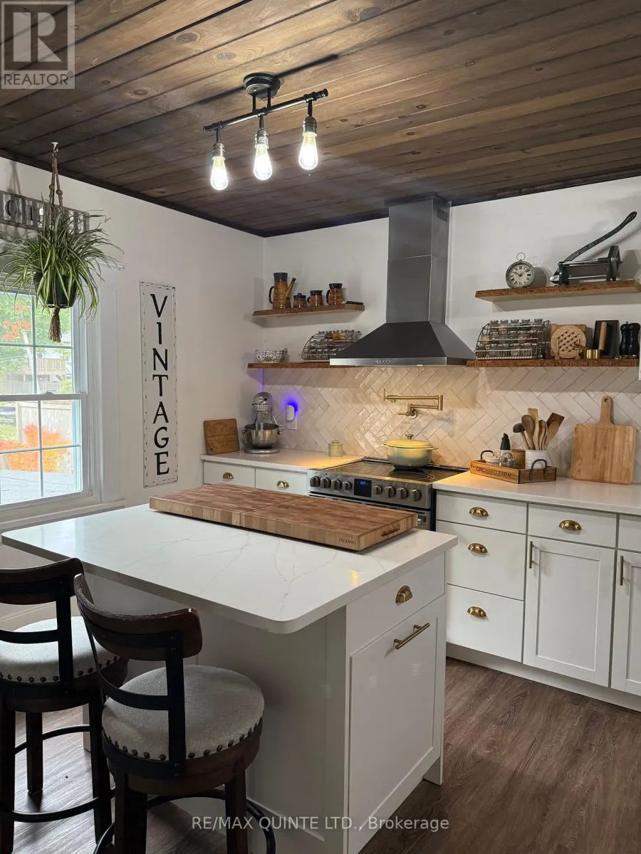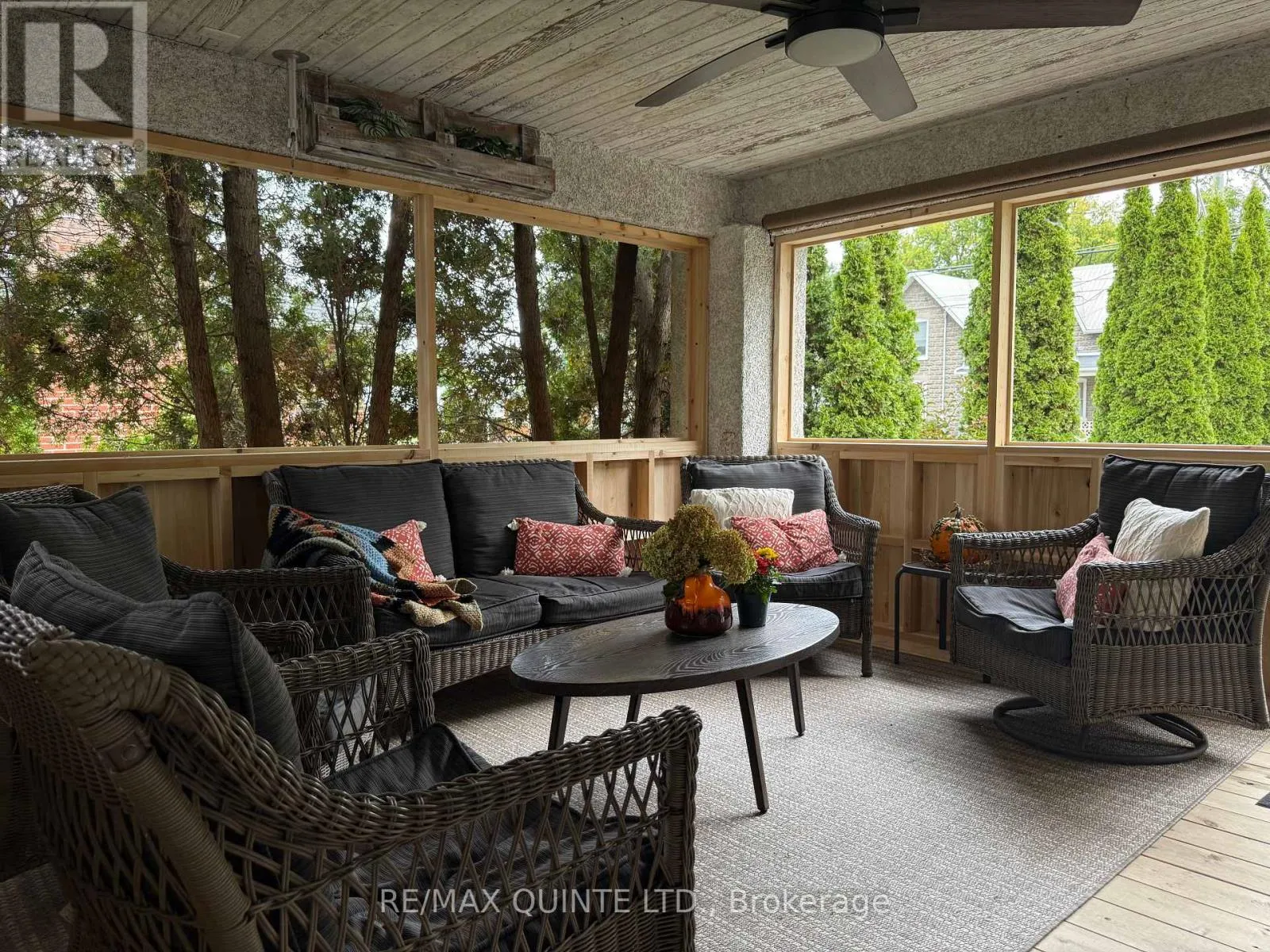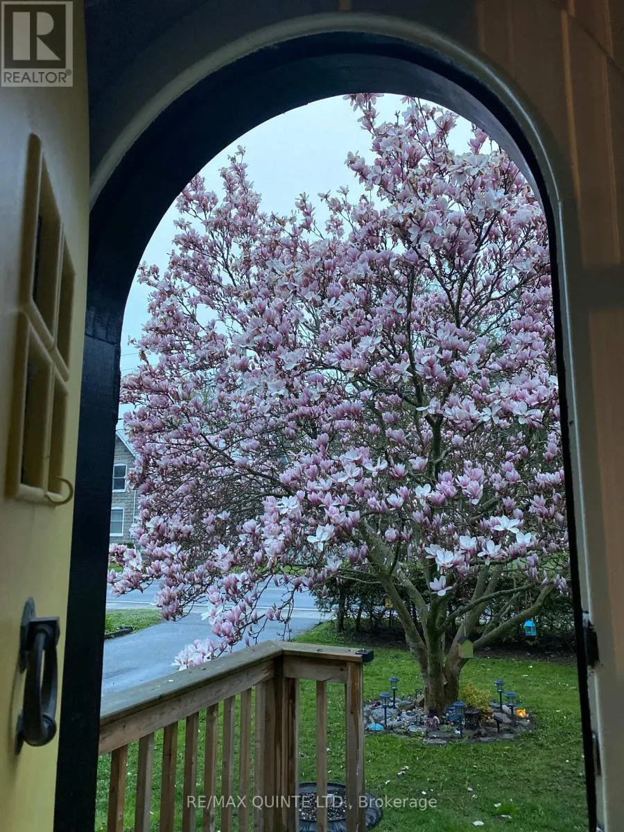 Cross Streets: Adelaide Street. ** Directions: Trent Street to Adelaide, on the corner. Welcome to this beautiful, charming corner home that has been highly-customized by the talented owners. You will be the beneficiary of the low-maintenance gardens, bright & welcoming sunroom/foyer with full-length windows & 9" baseboards. Kitchen boasts quartz counter & island, step-in pantry, outside-vented exhaust fan, touch-activated gold-toned pot-filler & kitchen faucet, kitchen cabinet pull-outs, farmhouse sink & custom backsplash. Dining Room has an acoustic ceiling, great for playing musical instruments. There are more features you will love, such as a custom-made pet door that connects the main floor to the basement, main-floor primary, ceramic tiled showers & plenty of storage. Pine floors in the Primary & upper level, upstairs bedroom has walkout to deck, another bedroom has a walk-in closet with barn door & bedrooms have cedar ceilings & cedar-lined closets. Features central vac, powered deck with Hunter Fan, 2 paved driveways, HWT is owned, gas furnace/CA, 2025 & is owned. Roof, 2023, 21' x 21' backyard shed, separate 24' x 24' garage is being built. There is a cedar fence along one side of the property, which is around the corner from a Primary School, nearby beach area, community centre, skiing, skate park & the Trans Canada Trail. Located in beautiful Frankford, it is also walking-distance to town. (id:27476)
