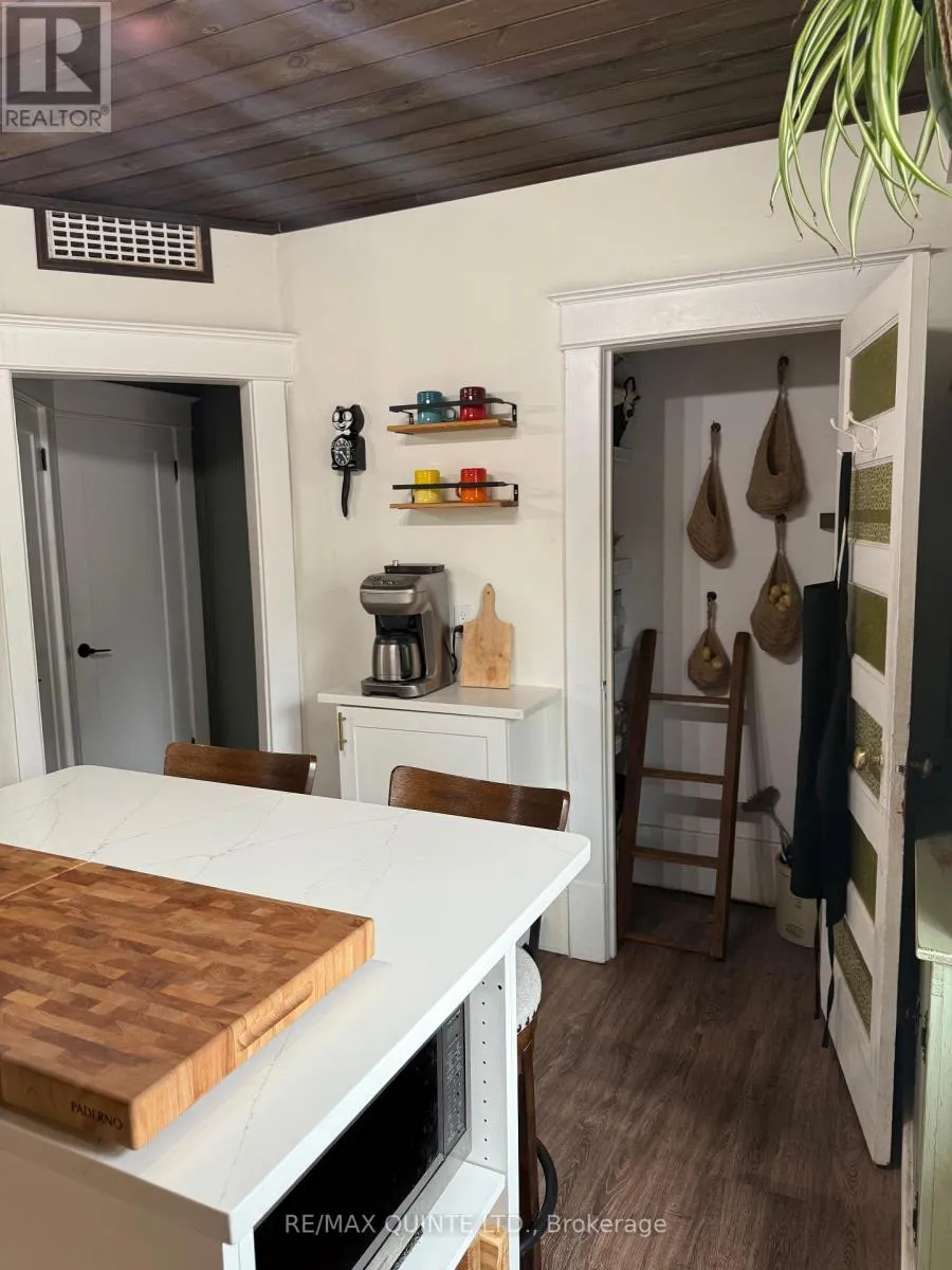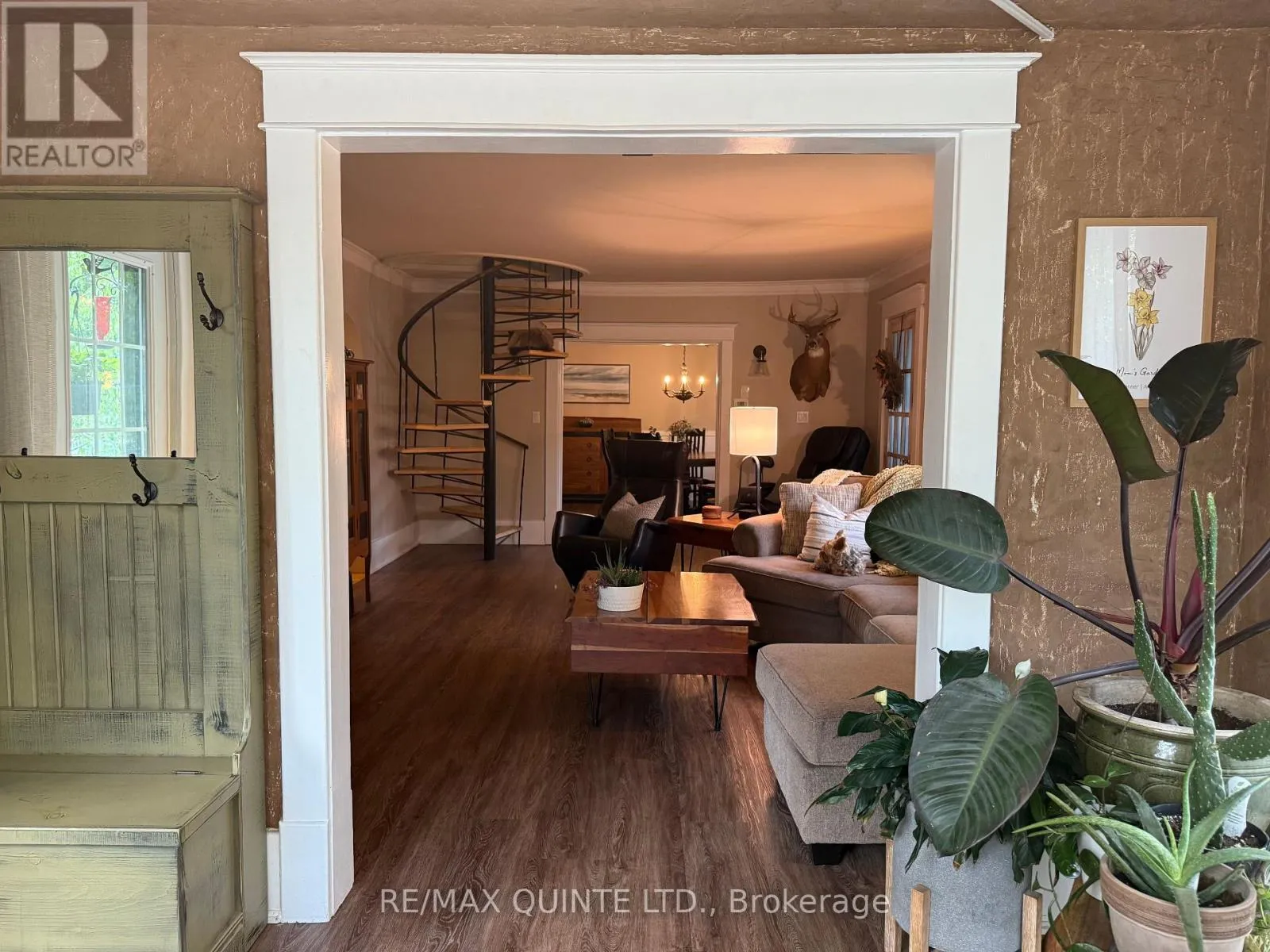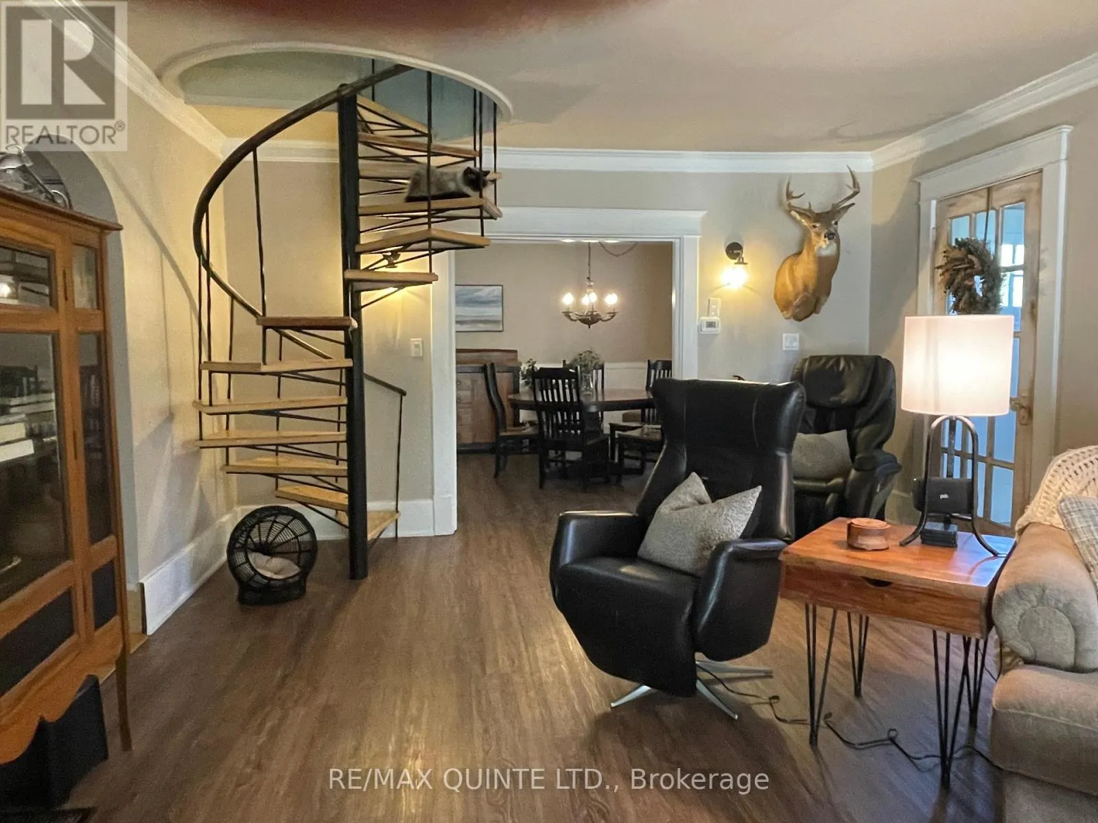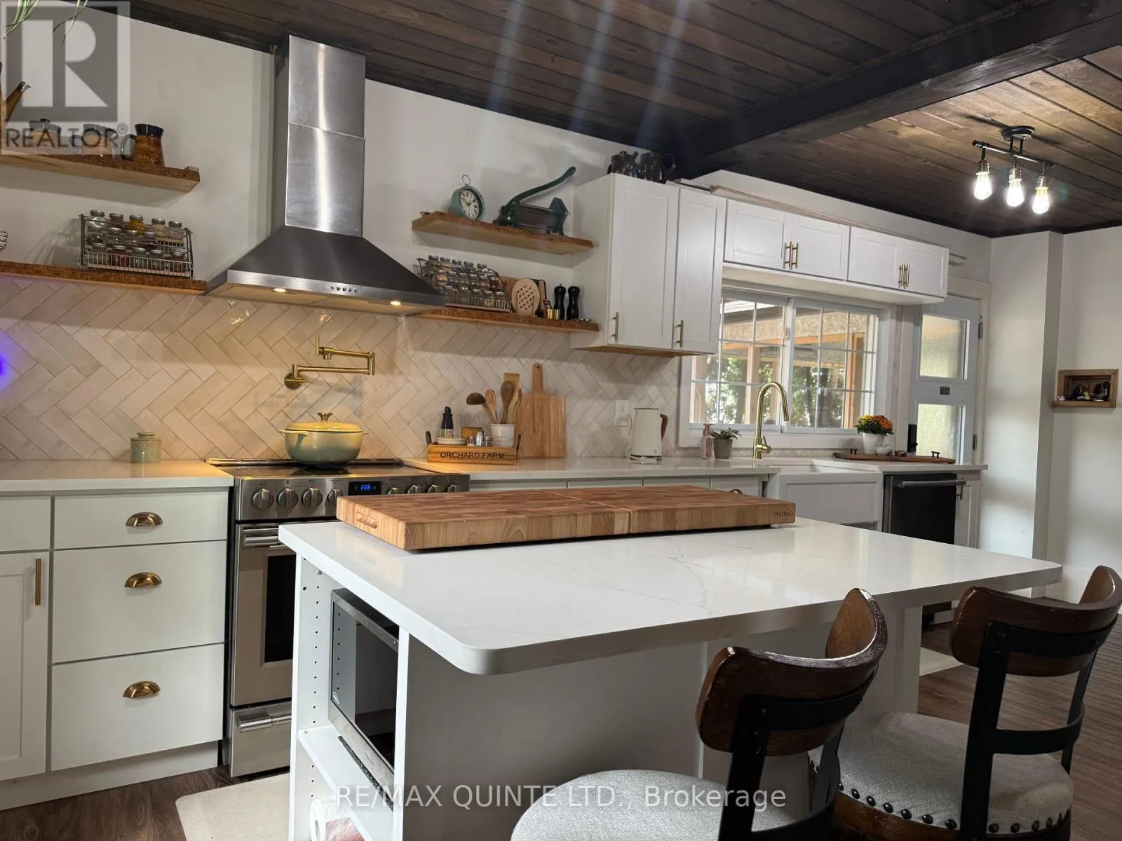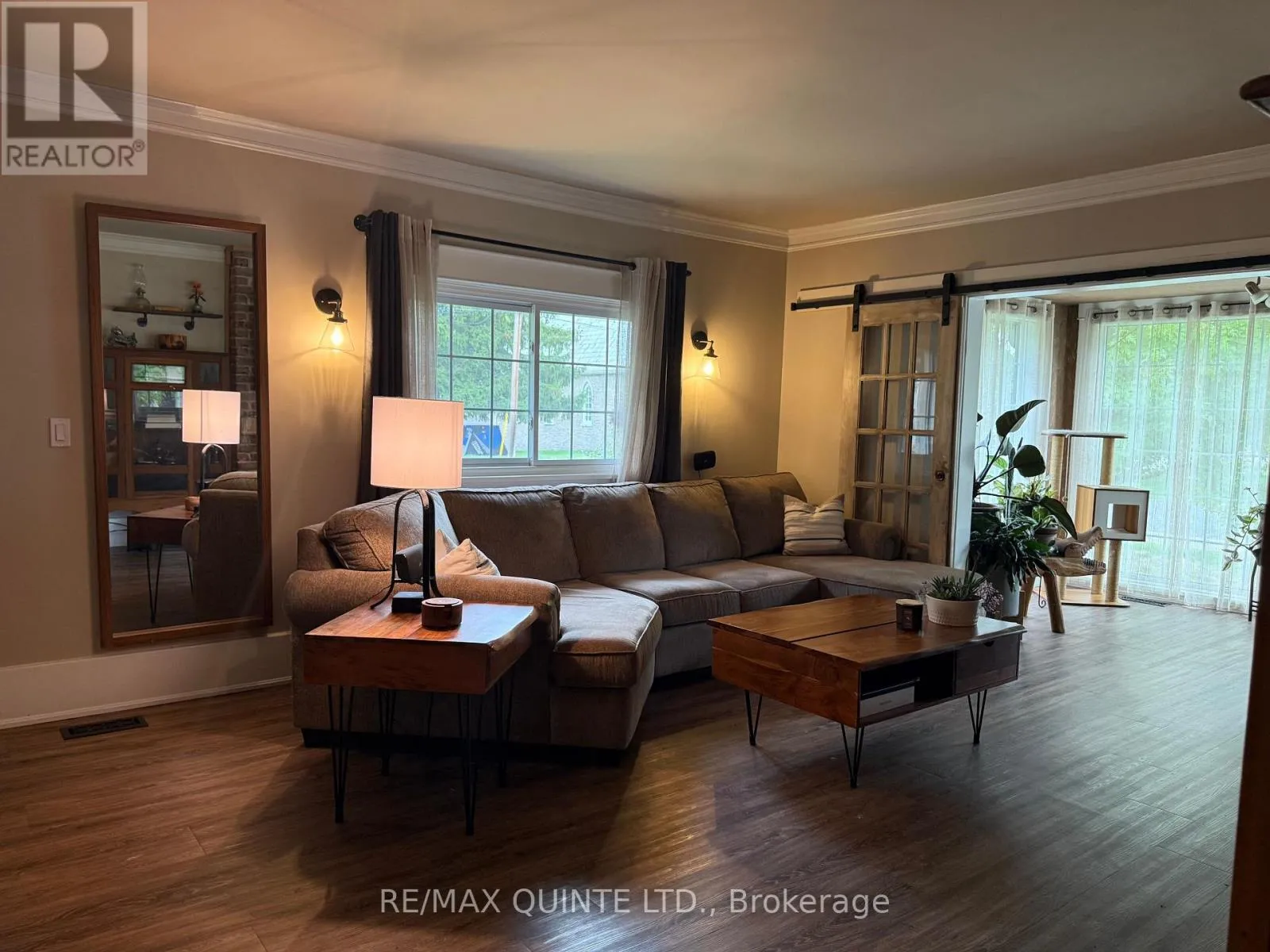 Cross Streets: Adelaide Street. ** Directions: Trent Street to Adelaide, on the corner. Welcome to this beautiful, charming corner home that has been highly-customized by the talented owners. You will be the beneficiary of the low-maintenance gardens, bright & welcoming sunroom/foyer with full-length windows & 9" baseboards. Kitchen boasts quartz counter & island, step-in pantry, outside-vented exhaust fan, touch-activated gold-toned pot-filler & kitchen faucet, kitchen cabinet pull-outs, farmhouse sink & custom backsplash. Dining Room has an acoustic ceiling, great for playing musical instruments. There are more features you will love, such as a custom-made pet door that connects the main floor to the basement, main-floor primary, ceramic tiled showers & plenty of storage. Pine floors in the Primary & upper level, upstairs bedroom has walkout to deck, another bedroom has a walk-in closet with barn door & bedrooms have cedar ceilings & cedar-lined closets. Features central vac, powered deck with Hunter Fan, 2 paved driveways, HWT is owned, gas furnace/CA, 2025 & is owned. Roof, 2023, 21' x 21' backyard shed, separate 24' x 24' garage is being built. There is a cedar fence along one side of the property, which is around the corner from a Primary School, nearby beach area, community centre, skiing, skate park & the Trans Canada Trail. Located in beautiful Frankford, it is also walking-distance to town. (id:27476)