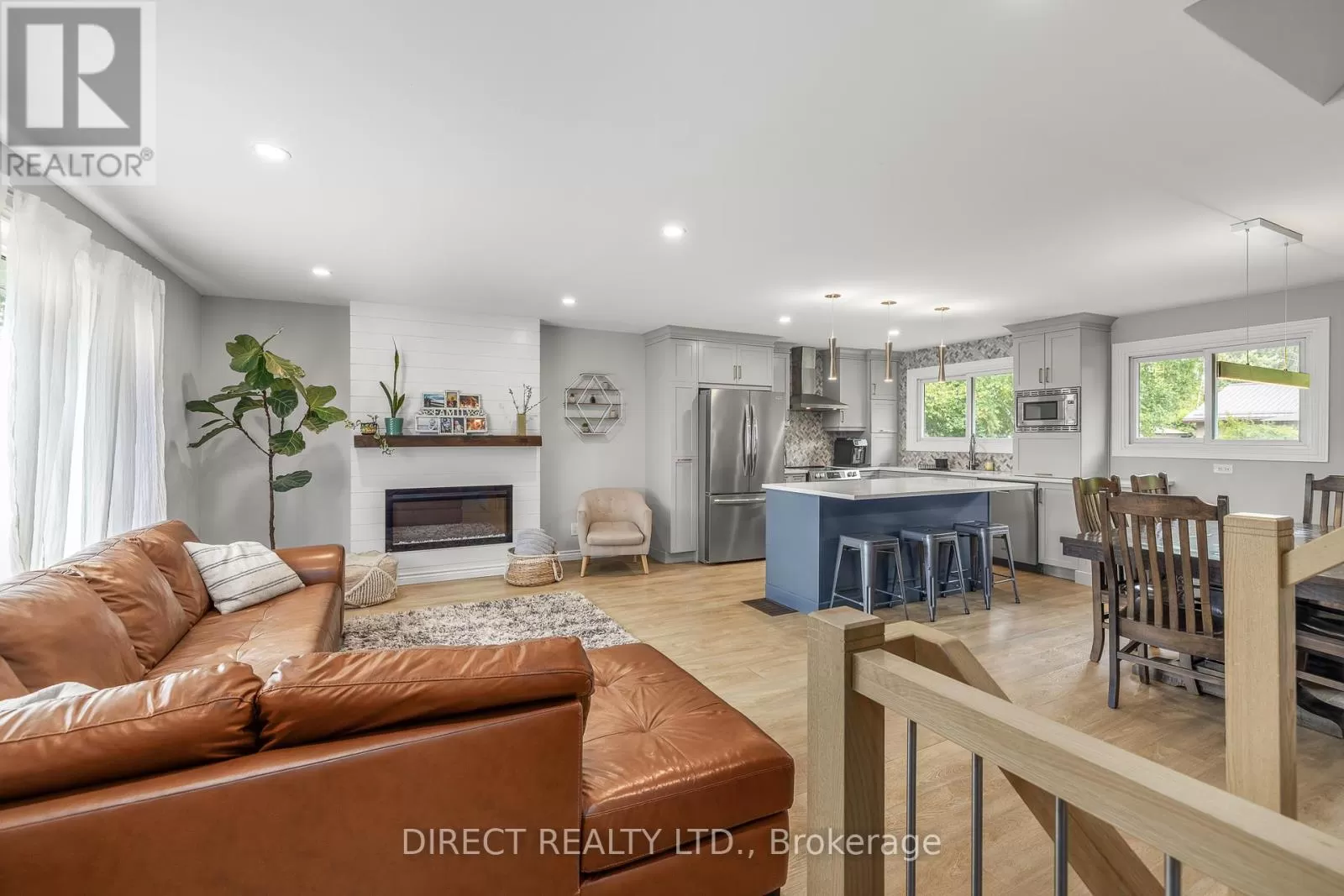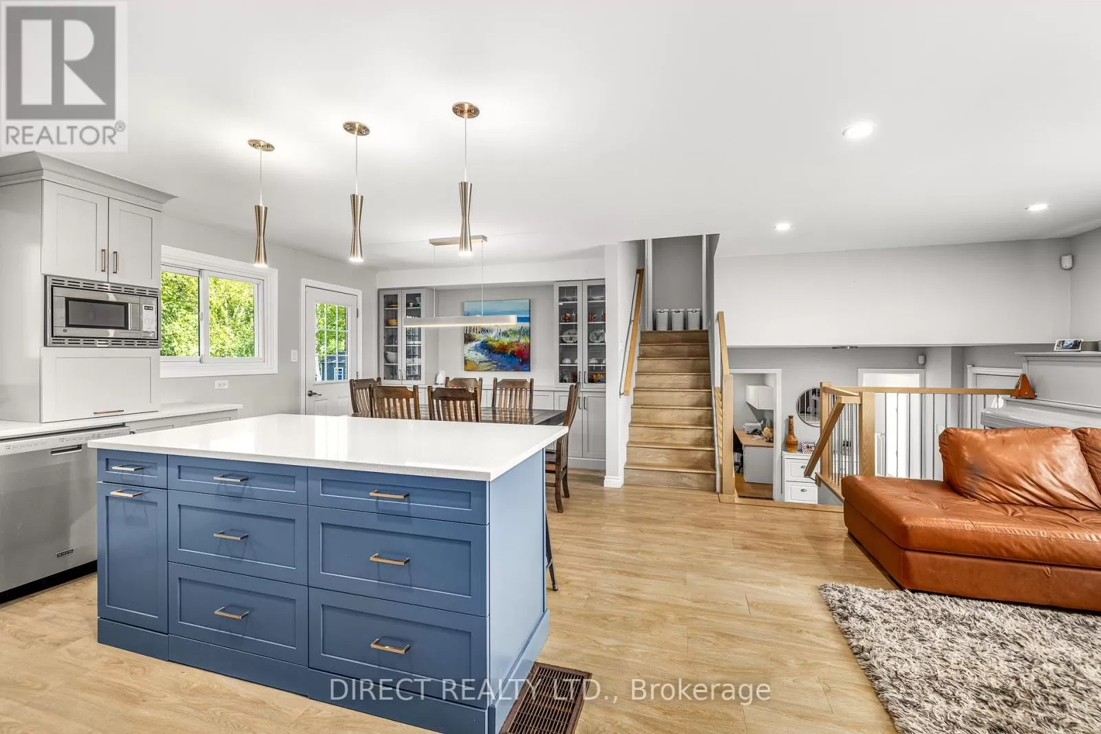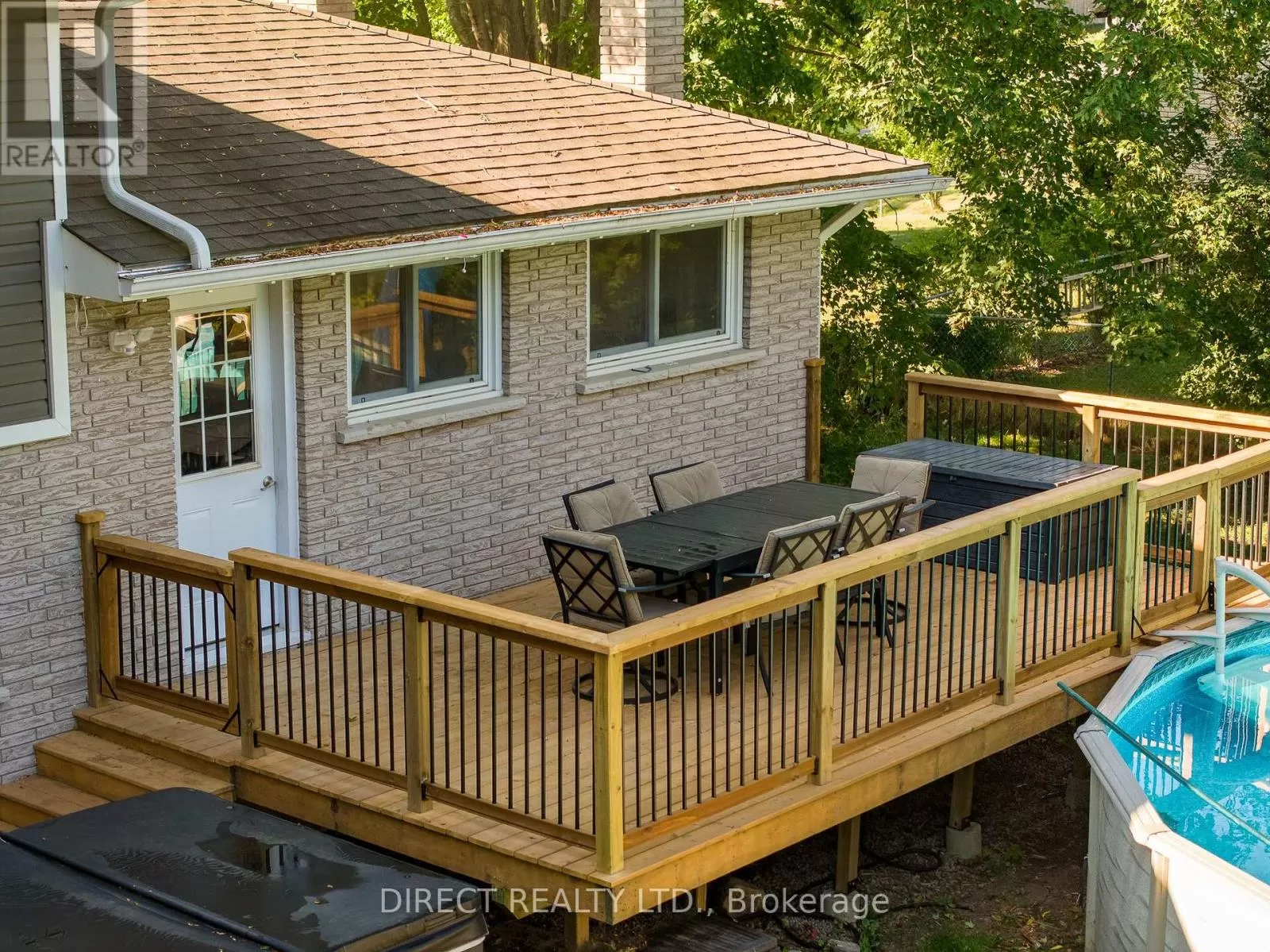 Cross Streets: Burns Ave and Lea Ave. ** Directions: From 401, take Exit 538, go south on Wallbridge-Loyalist Rd, turn right on Hwy 2, right on Burns Ave, then right on Lea Ave. Introducing 15 Lea Avenue, a 4-level side split tucked away on a peaceful no-through road in Quinte West. The spacious foyer leads to a dedicated home office with additional storage, a convenient coat corridor, and a main-floor bathroom with laundry. The bright open-concept living, dining, and kitchen area is filled with natural light and anchored by a contemporary fireplace. Upstairs features three comfortable bedrooms and a 4-piece bath, while the lower level expands the living space with a large rec room, stylish bar, modern fireplace, and an area for a gym or hobby room. Step outside to a private backyard oasis with a deck, above-ground pool, hot tub, mature trees, garden/play space, firepit, and shed. Perfectly located near schools, parks along the Bay of Quinte, golf, and with quick access to Highway 401. (id:27476)