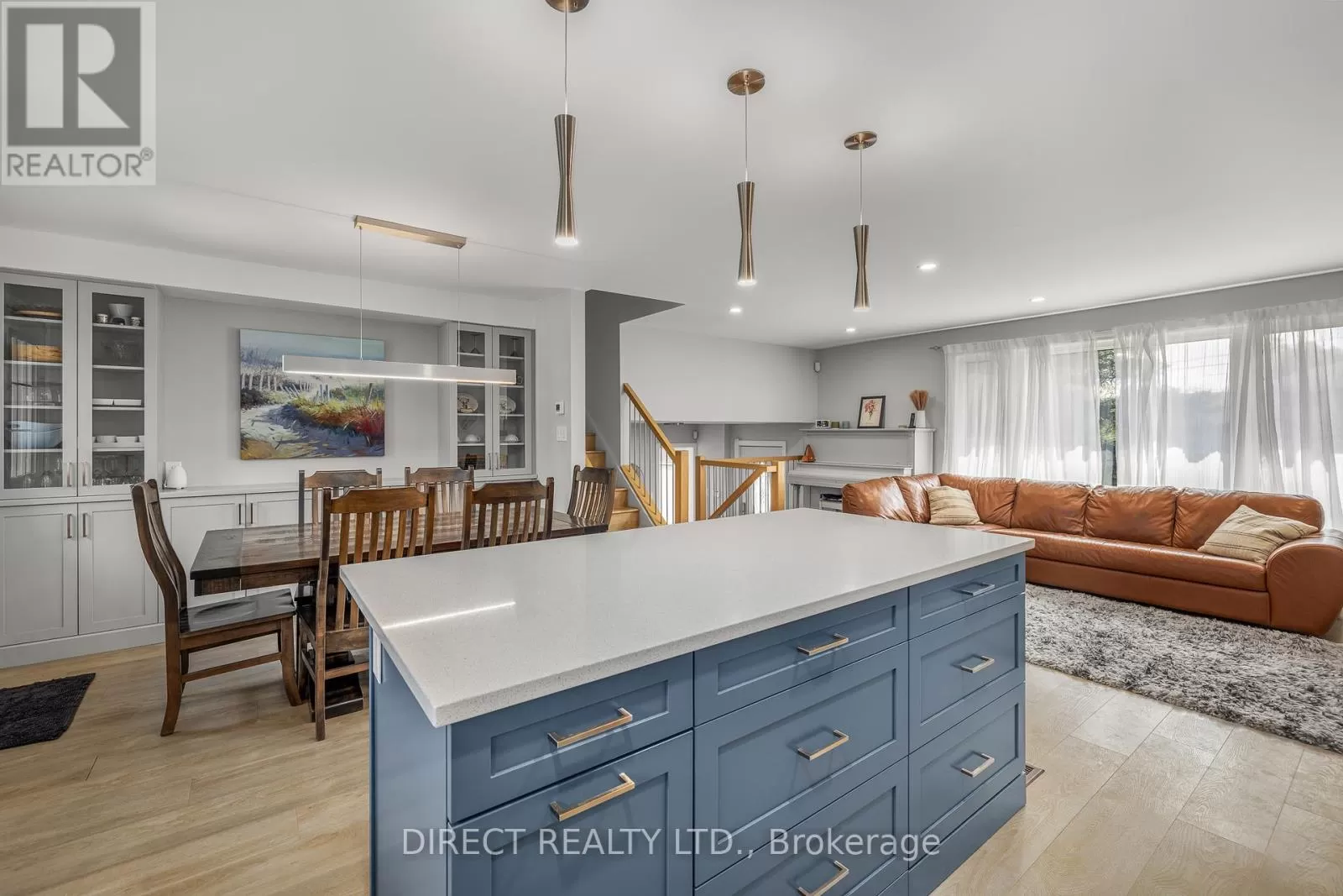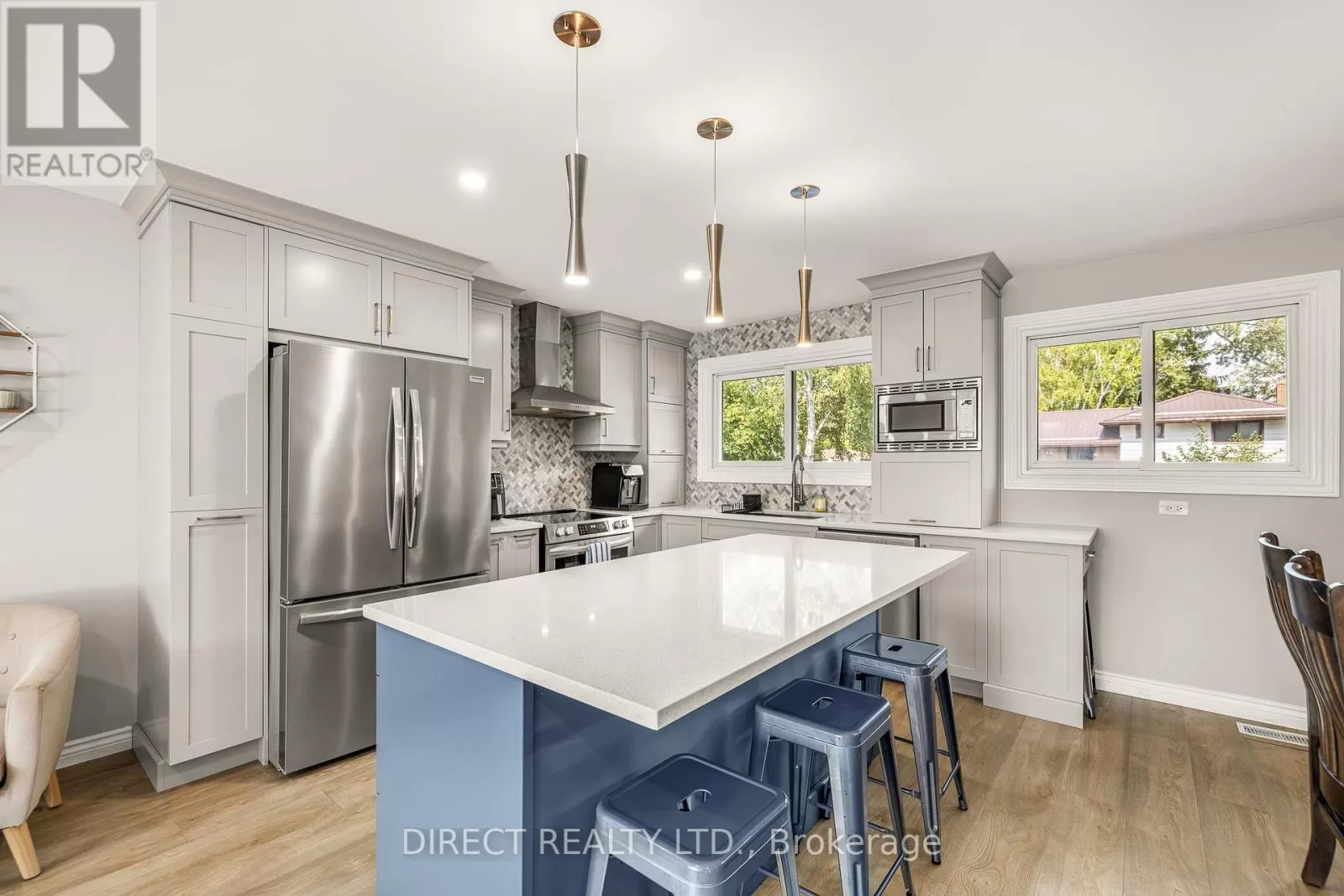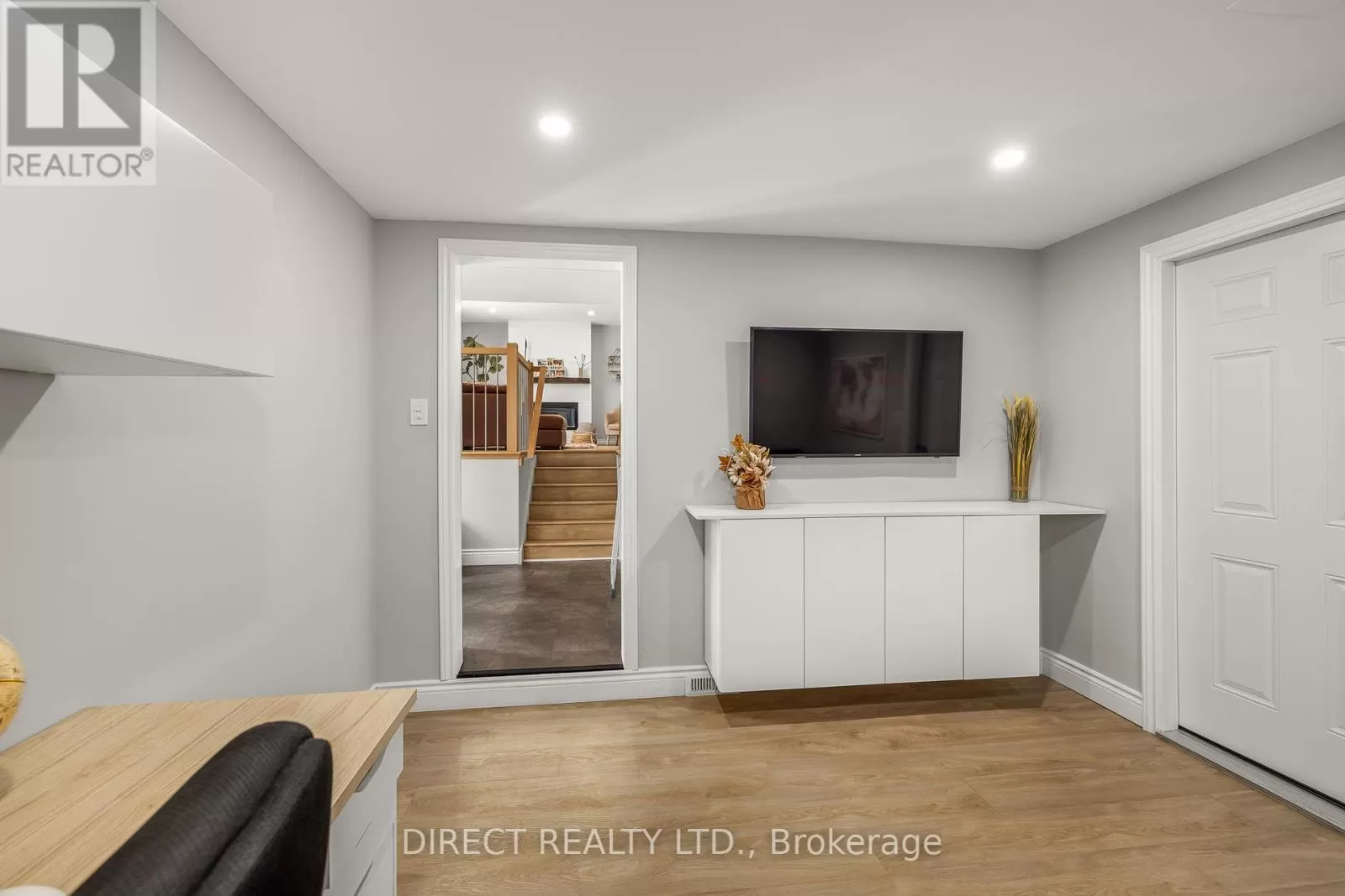 Cross Streets: Burns Ave and Lea Ave. ** Directions: From 401, take Exit 538, go south on Wallbridge-Loyalist Rd, turn right on Hwy 2, right on Burns Ave, then right on Lea Ave. Introducing 15 Lea Avenue, a 4-level side split tucked away on a peaceful no-through road in Quinte West. The spacious foyer leads to a dedicated home office with additional storage, a convenient coat corridor, and a main-floor bathroom with laundry. The bright open-concept living, dining, and kitchen area is filled with natural light and anchored by a contemporary fireplace. Upstairs features three comfortable bedrooms and a 4-piece bath, while the lower level expands the living space with a large rec room, stylish bar, modern fireplace, and an area for a gym or hobby room. Step outside to a private backyard oasis with a deck, above-ground pool, hot tub, mature trees, garden/play space, firepit, and shed. Perfectly located near schools, parks along the Bay of Quinte, golf, and with quick access to Highway 401. (id:27476)