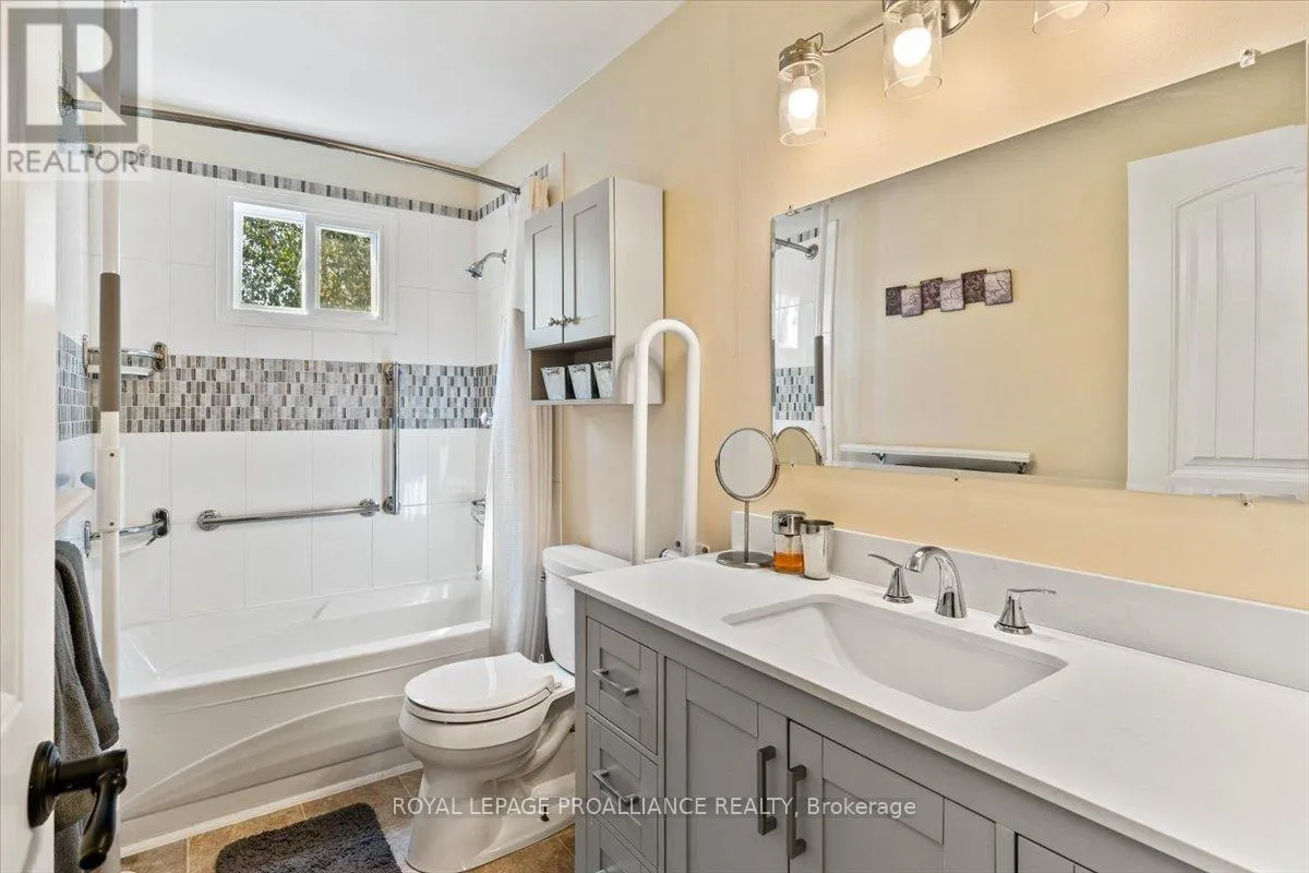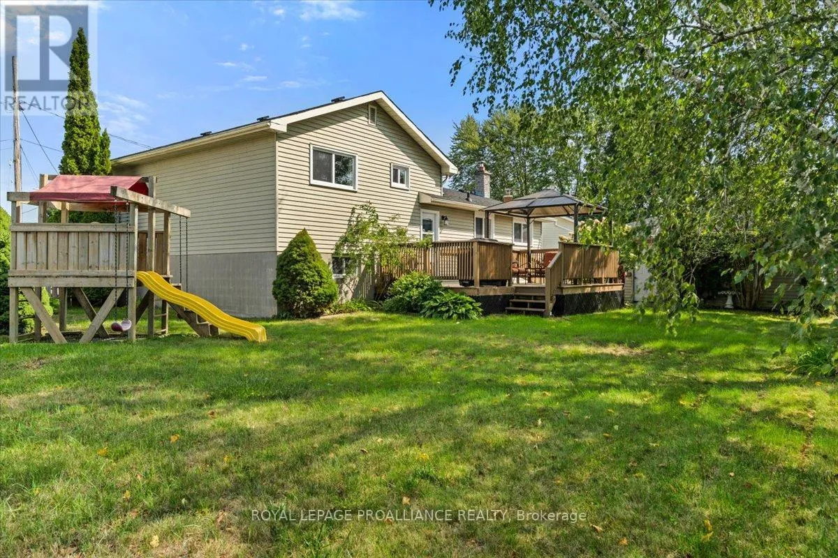 Cross Streets: Centre Street to Centre Court. ** Directions: South Trent St - to Picton St - to Centre St - to Centre Court in Frankford. Tucked away on a quiet cul-de-sac in the heart of Frankford, this inviting 4-level split home blends comfort, convenience, and small-town charm. Just steps from the local arena and ball diamond, the location is ideal for families, active lifestyles, or anyone looking to be part of a welcoming community.Inside, the main level offers a bright living and dining area alongside a warm wood kitchen with abundant cabinetry and storage.Upstairs, you'll find three bedrooms and a 4-piece renovated bath. The finished lower level adds a spacious rec room perfect for movie nights, hobbies, or a play space. With thoughtful accessibility features, including a ramp to the front door and grab bars,the home is designed to meet a variety of needs.Set on a pie-shaped lot, the property provides both privacy and room to enjoy the outdoors. A large deck is ready for barbecues and gatherings, while the detached double garage (22' x 23'), shed, and generous driveway provide plenty of space for vehicles, tools, and recreational gear.Whether you're downsizing, buying your first home, or putting down roots in a friendly community, this property is a wonderful opportunity.See feature sheet for updates including natural gas furnace in 2023, roof on house and detached garage 2018, fridge 2022,bathroom renovation 2023. Don't forget to view the 3D Tour! (id:27476)