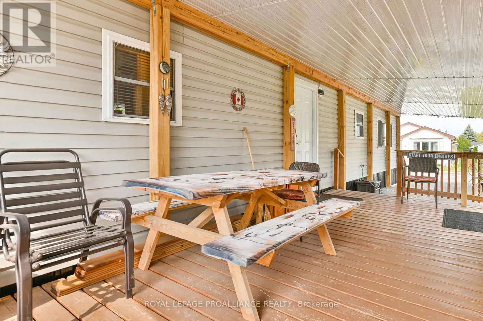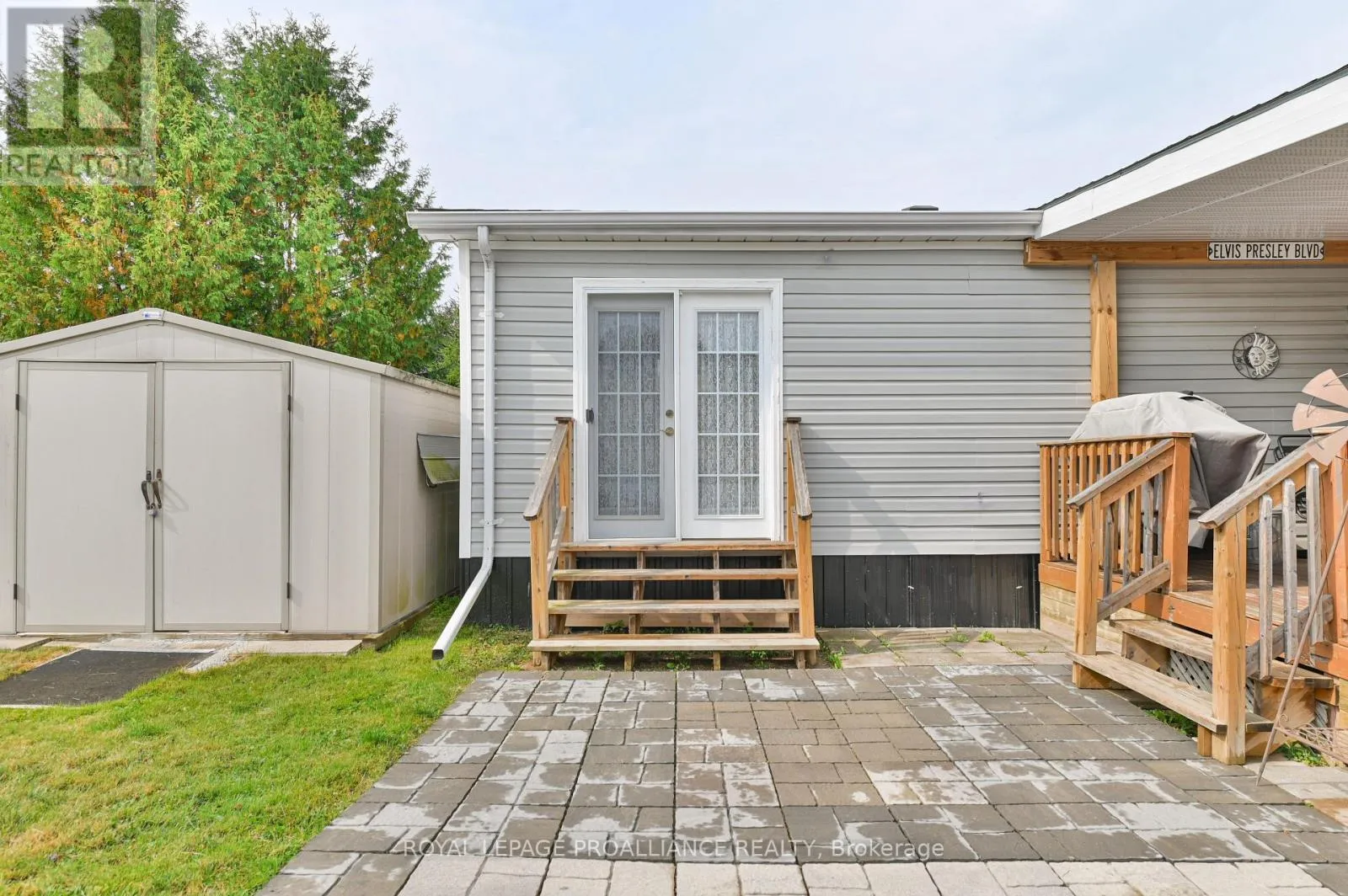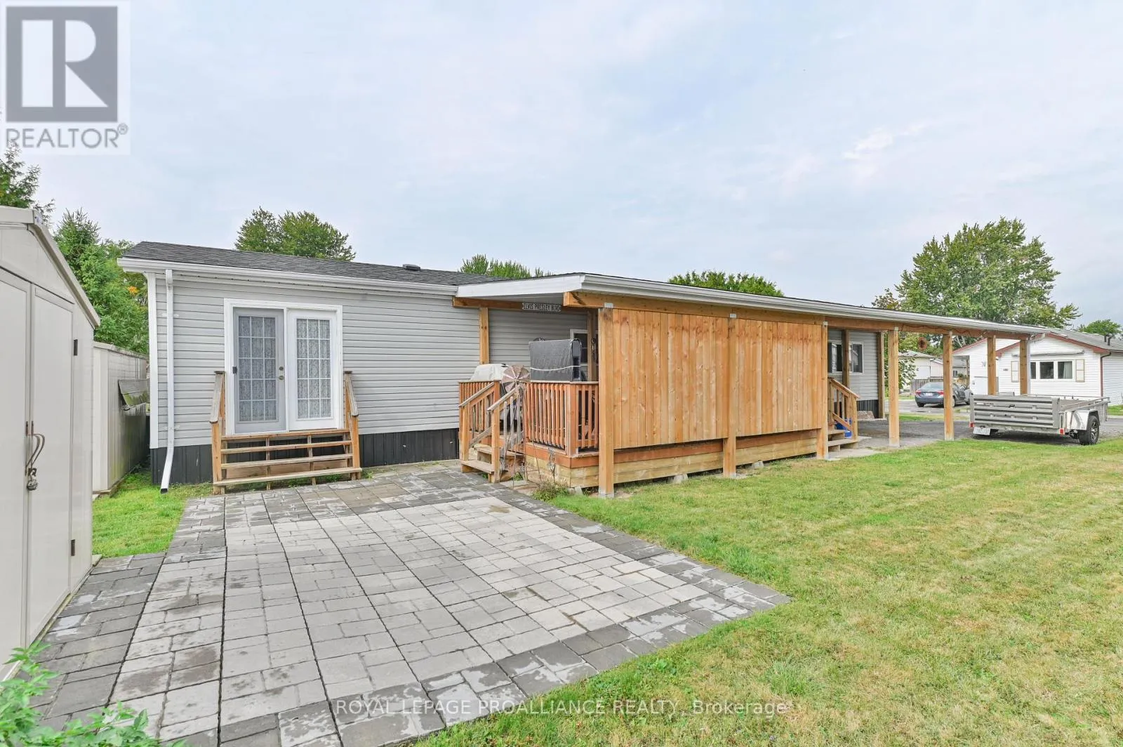 Cross Streets: Hwy #2 and Maxfield Blvd. ** Directions: Hwy 2, Turn North on Maxfield Blvd, left on Finch Lane. Welcome to sought-after Kenron Estates, where this updated mobile home offers comfort, style, and low-maintenance living. Carpet-free throughout, the home features a bright and inviting living room highlighted by a cozy Natural Gas Fireplace. The spacious primary bedroom opens through double French doors to a private patio, perfect for morning coffee or evening relaxation. A renovated bathroom adds modern convenience, while outdoor living is enhanced with a covered side deck, a newly constructed carport, and room for easy everyday enjoyment. Property includes two 10x12 vinyl clad sheds for extra storage A wonderful opportunity to join this welcoming community in a move-in-ready home. (id:27476)