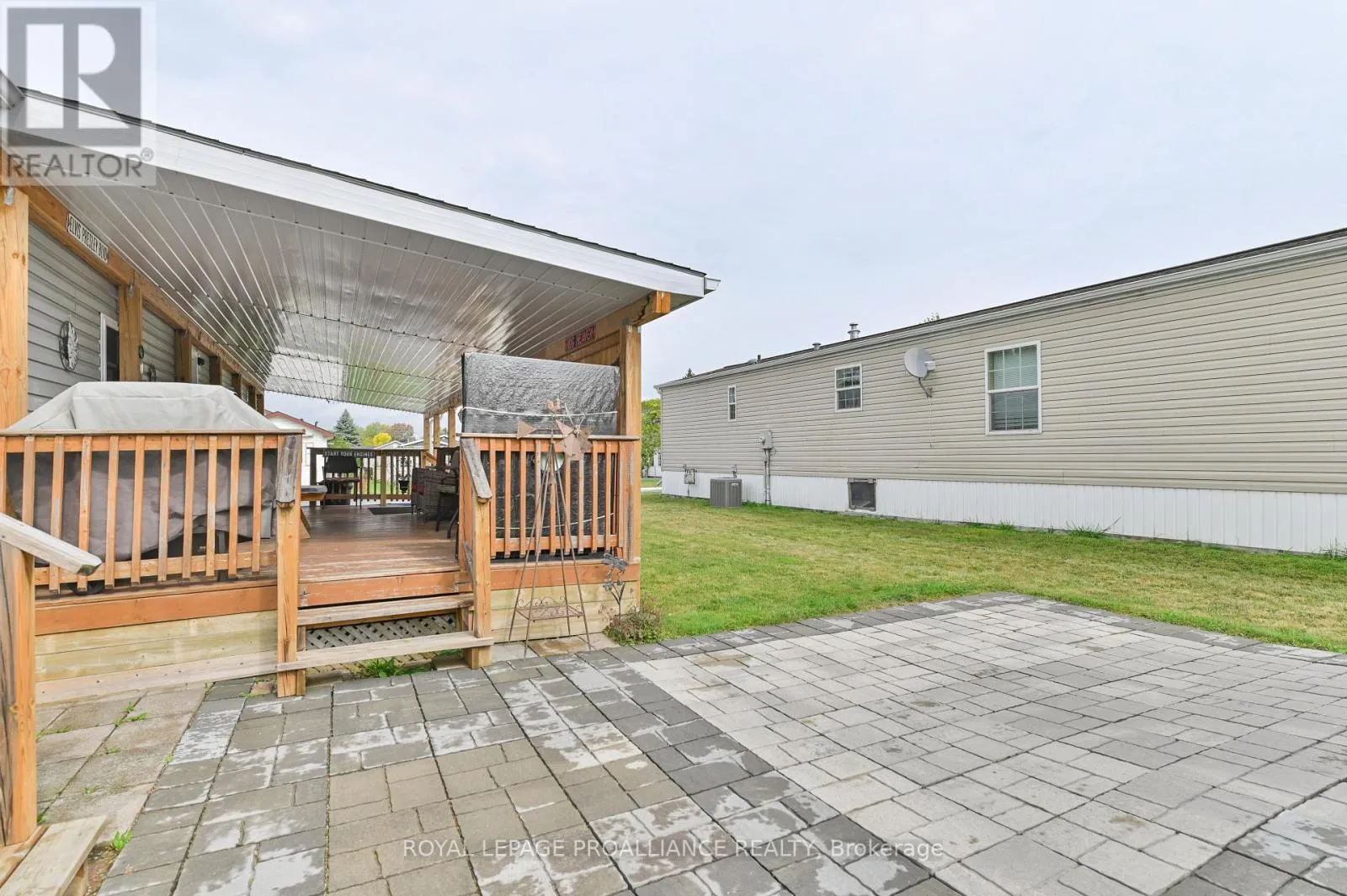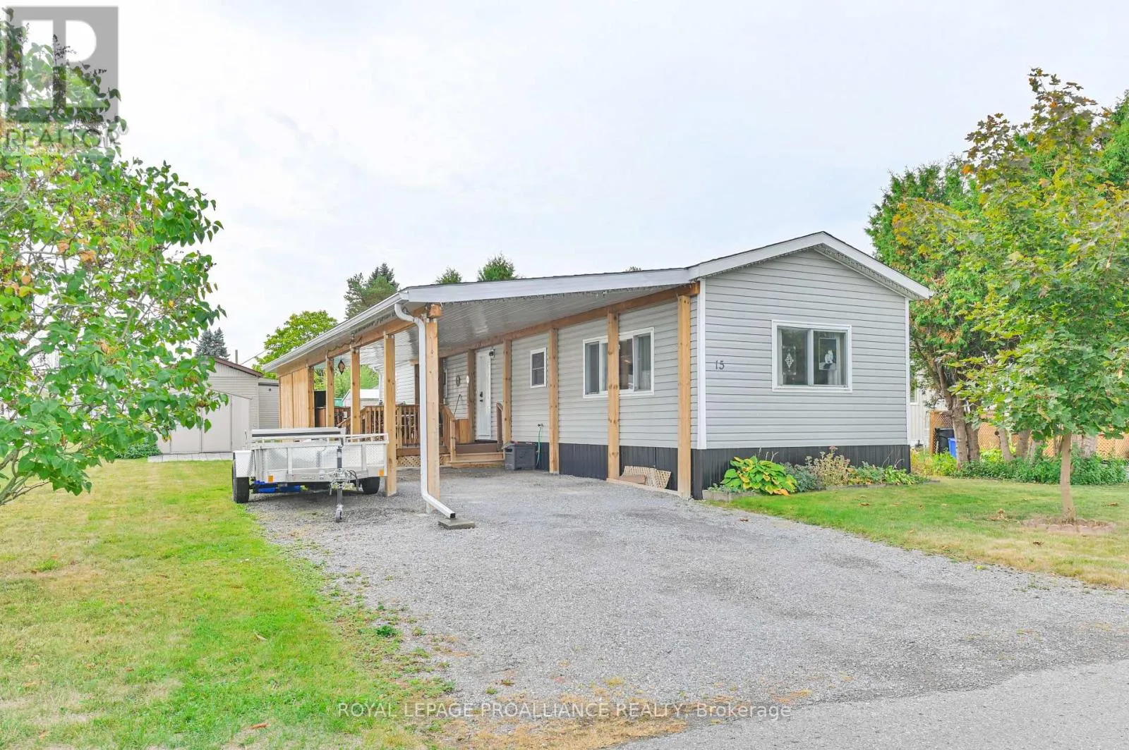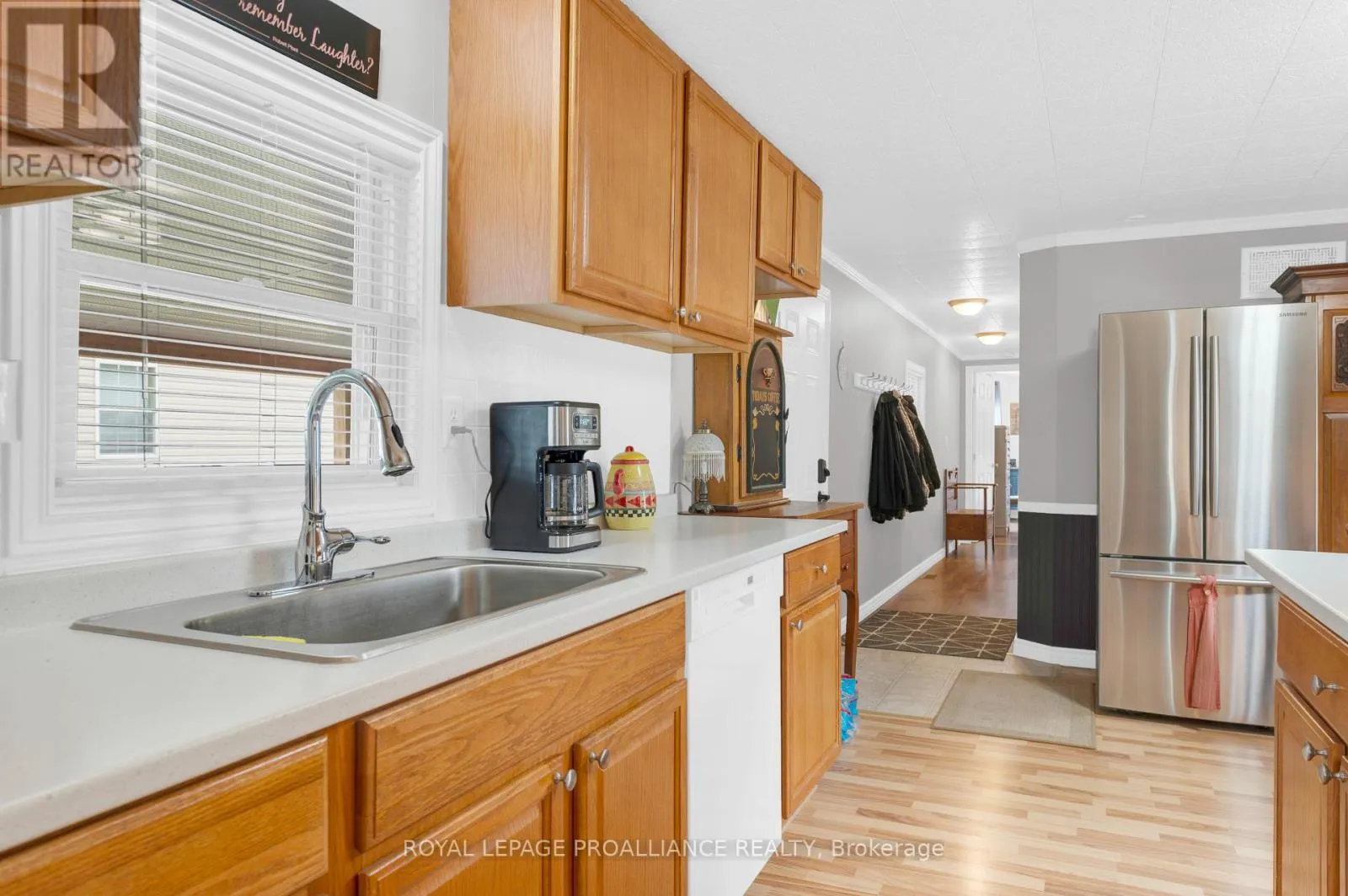 Cross Streets: Hwy #2 and Maxfield Blvd. ** Directions: Hwy 2, Turn North on Maxfield Blvd, left on Finch Lane. Welcome to sought-after Kenron Estates, where this updated mobile home offers comfort, style, and low-maintenance living. Carpet-free throughout, the home features a bright and inviting living room highlighted by a cozy Natural Gas Fireplace. The spacious primary bedroom opens through double French doors to a private patio, perfect for morning coffee or evening relaxation. A renovated bathroom adds modern convenience, while outdoor living is enhanced with a covered side deck, a newly constructed carport, and room for easy everyday enjoyment. Property includes two 10x12 vinyl clad sheds for extra storage A wonderful opportunity to join this welcoming community in a move-in-ready home. (id:27476)