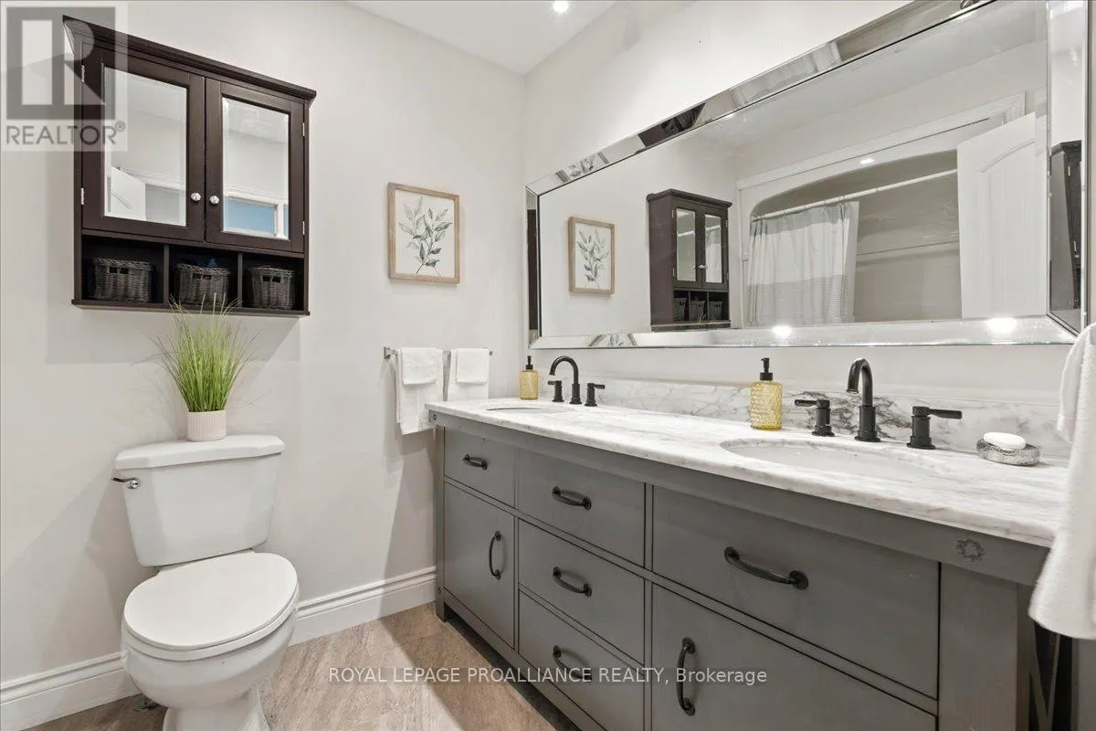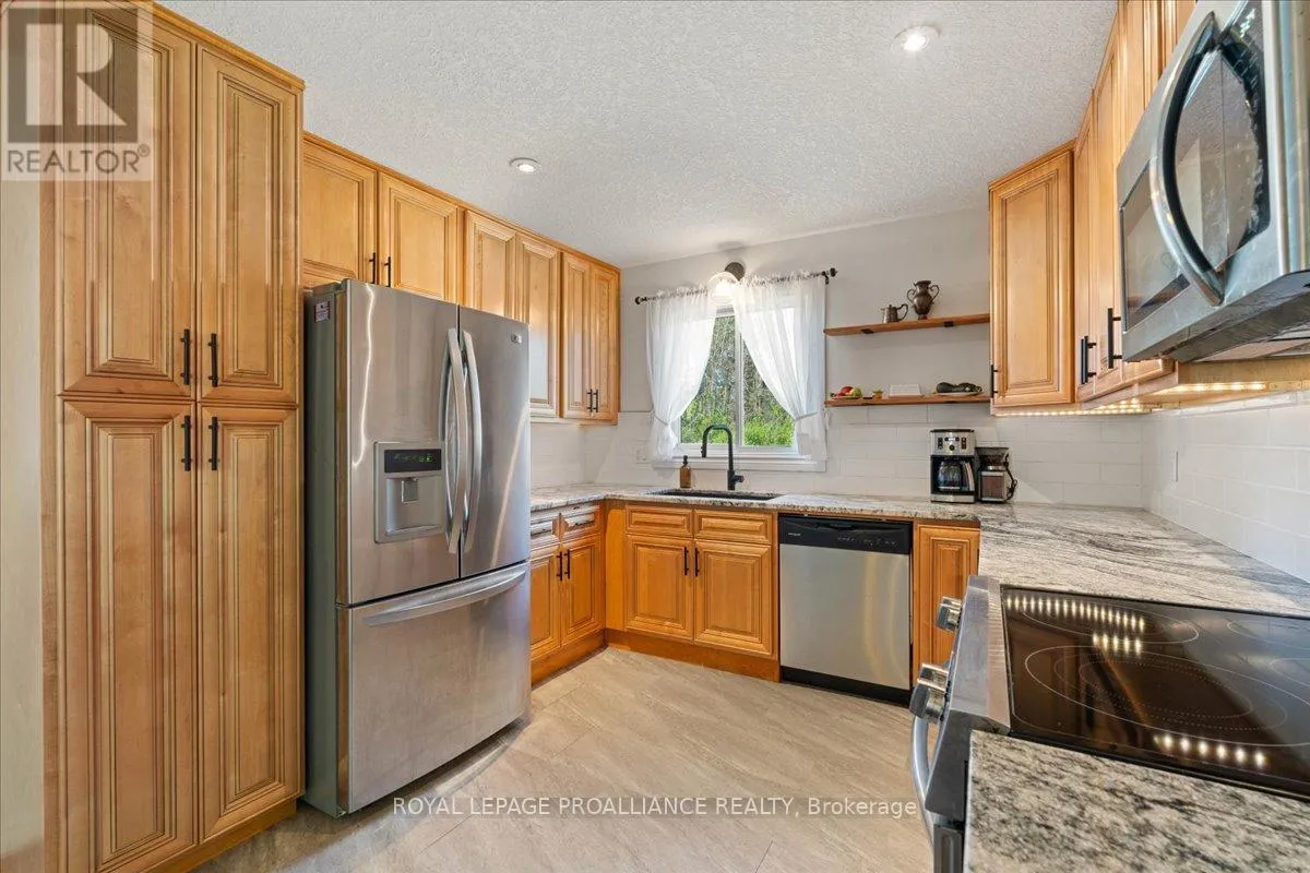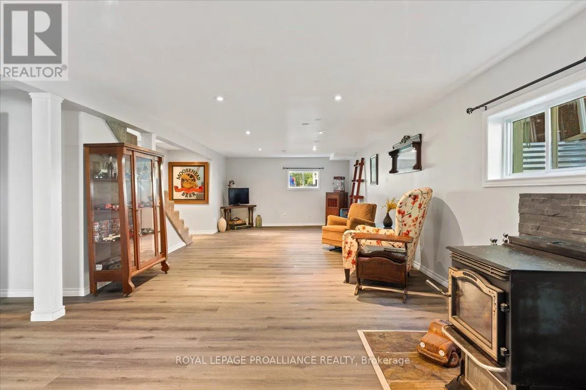Highway 2 and Aikins This charming bungalow on the edge of town offers the best of both worlds, a peaceful country feel with the convenience of being just minutes from all amenities. A convenient garage entry keeps coats and boots tucked away, while sliding doors from the dining area lead directly to the enclosed porch and backyard, perfect for enjoying the outdoors in every season. From here, take in the open fields and watch the deer pass by! Inside, the main floor features a spacious open-concept layout with three well-sized bedrooms. The lower level expands the living space with an oversized rec room warmed by a pellet stove, an additional finished bedroom, laundry area, and plenty of storage. A roughed-in bathroom is also ready for your finishing touches. With a double attached garage for vehicles and toys, updated flooring on the lower level, new furnace and a/c unit (2023), and a new septic system (2020), this home is move-in ready and designed for comfortable family living. (id:27476)