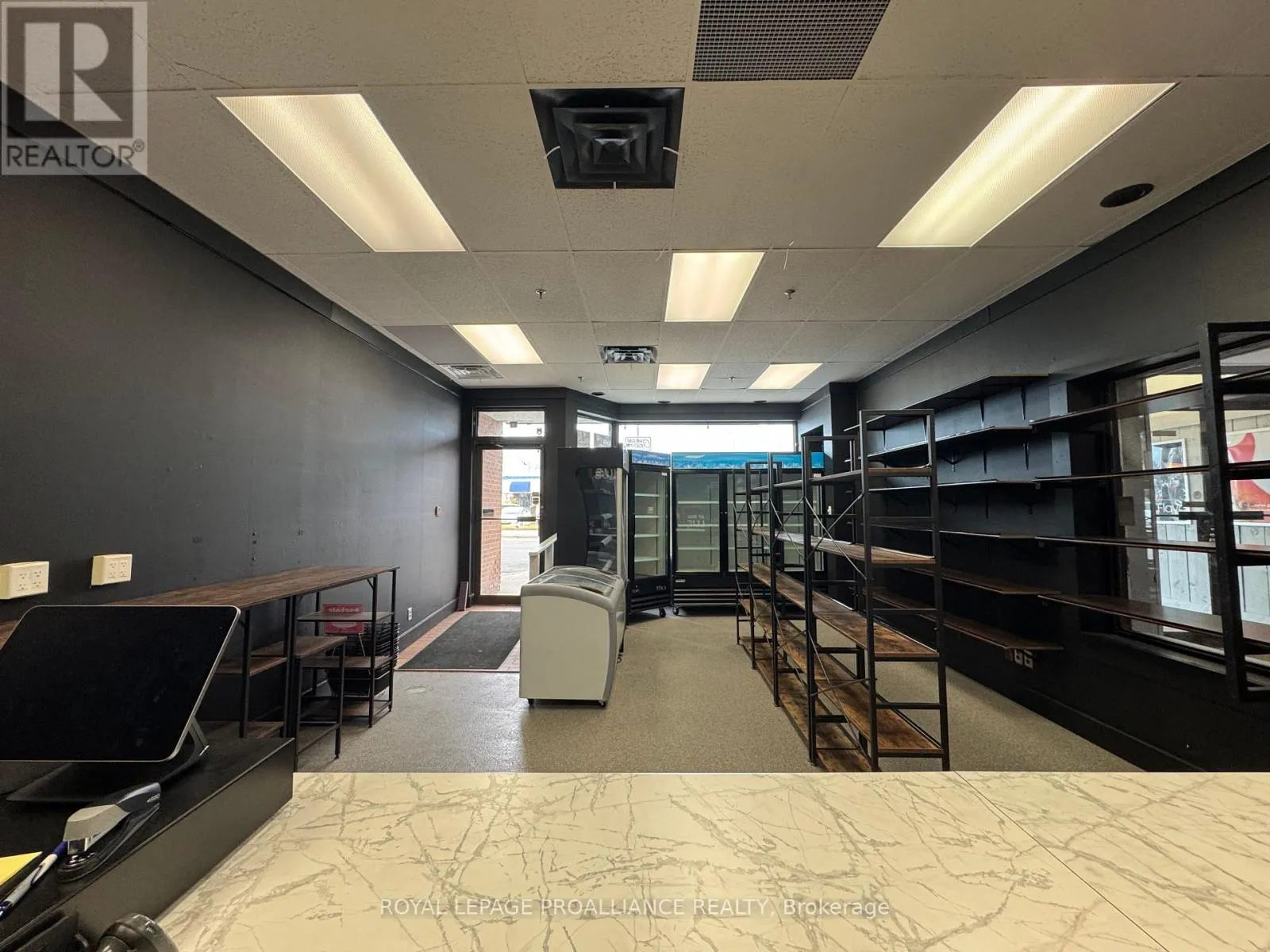 Front This 800 square foot retail storefront in the heart of downtown Trenton, Ontairo, offers an exceptional opportunity for a quick service restaurant, cafe or retail business. Featuring excellent street visibility and a high traffic count, the space benefits from steady pedestrian and vehicle exposure in one of Trenton's most active commercial areas. The open layout provides flexibility for a variety of uses, while large front windows fill the space with natural light and showcase your business to passerby. Surrounded by established shops, offices, and dining options, this location offers both convenience and strong customer draw. Additional details include an estimated TMI of $6.00 per square foot, with hydro paid by the tenant. This is an ideal opportunity to bring your business vision to life in a prime downtown location with outstanding visibility and accessibility. (id:27476)