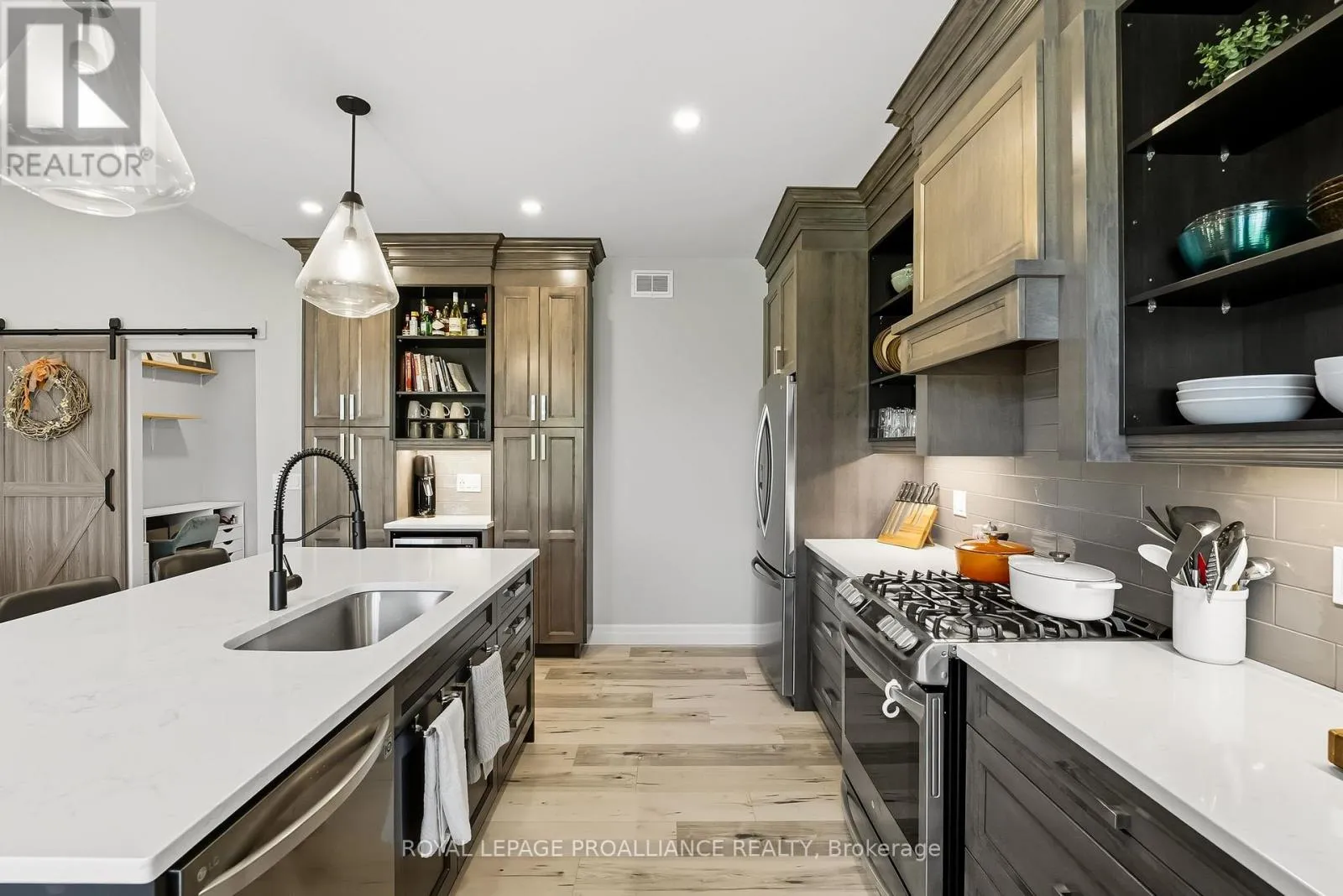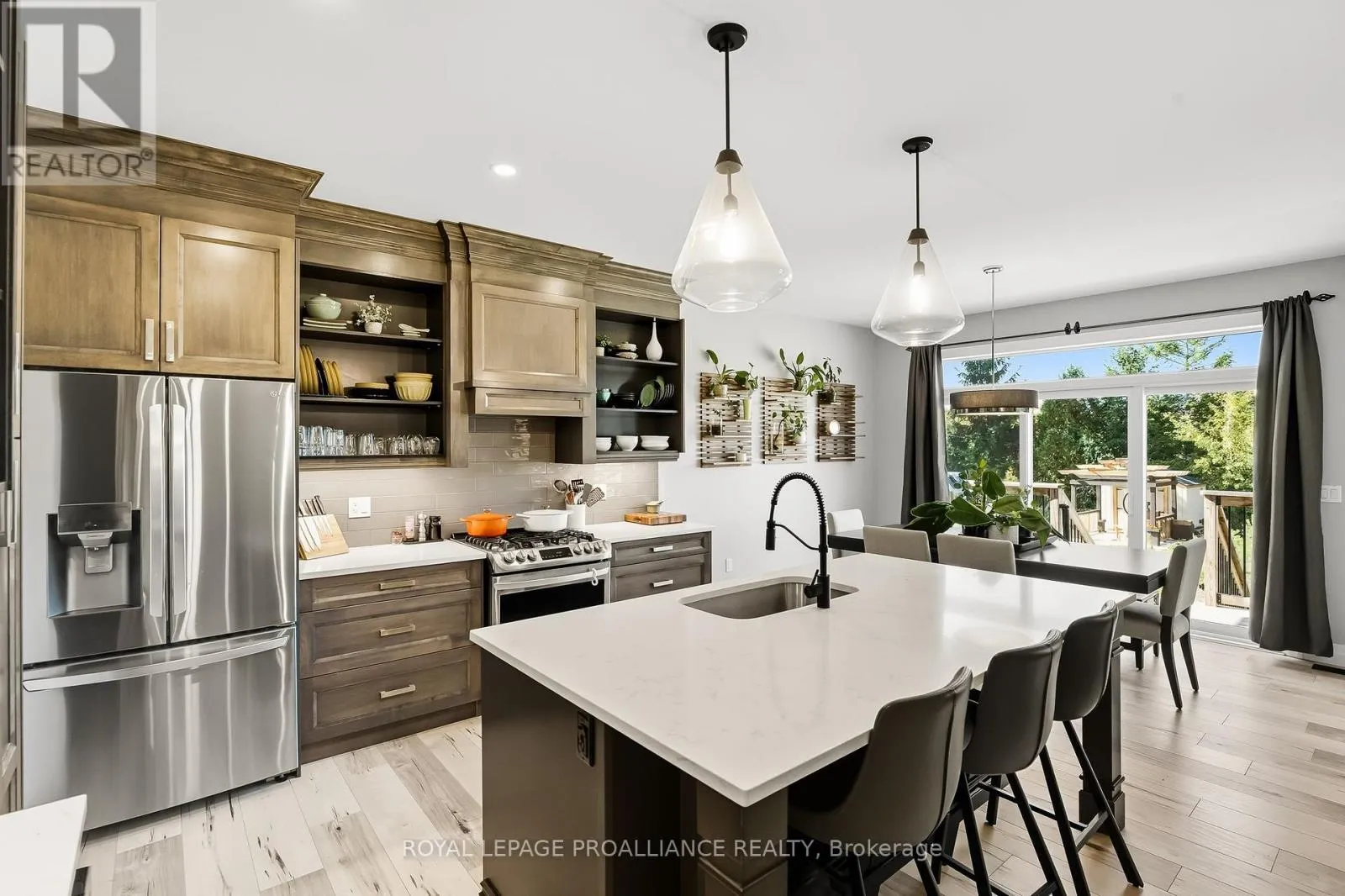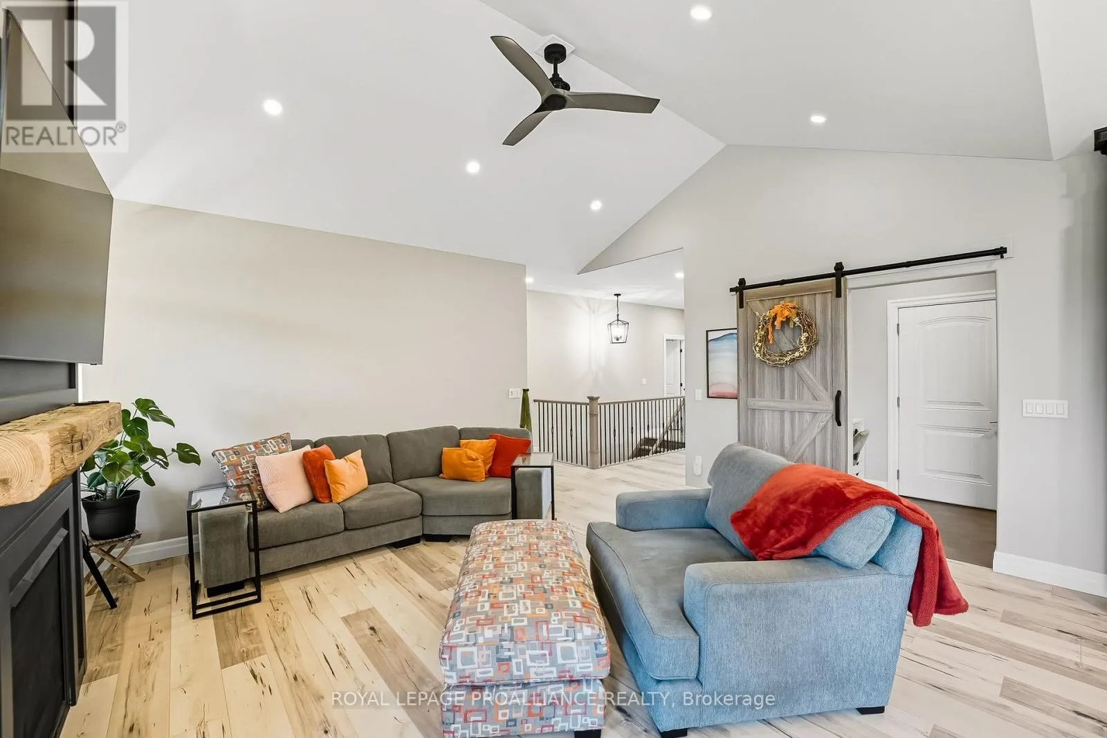 Cross Streets: Telephone Road and Orchard Lane. ** Directions: From County Rd 40, East onto Telephone Road. Left onto Orchard Lane. Right onto Autumn Grove. Left onto Ambrosia Terrace. The one you have been waiting for! Spacious upgraded home with 9 ft ceilings situated on a premium lot with west facing deck with no neighbours behind. Stunning kitchen with lots of cabinets to the ceiling with crown moulding and under valence lighting, back splash, quartz countertops and large island. Vaulted ceiling in the living room with gas fireplace with access to the private covered deck. Gorgeous primary bedroom with lots of room in the walk in closet plus an ensuite with a huge shower and double sinks. Barn door to main floor laundry and access to extra deep two car garage with insulated door and glass. Quality flooring throughout with low maintenance laminate and ceramic tile. Lots of room to customize your floor plan desires on the lower level. Much more to see - see it today or check out the video. (id:27476)