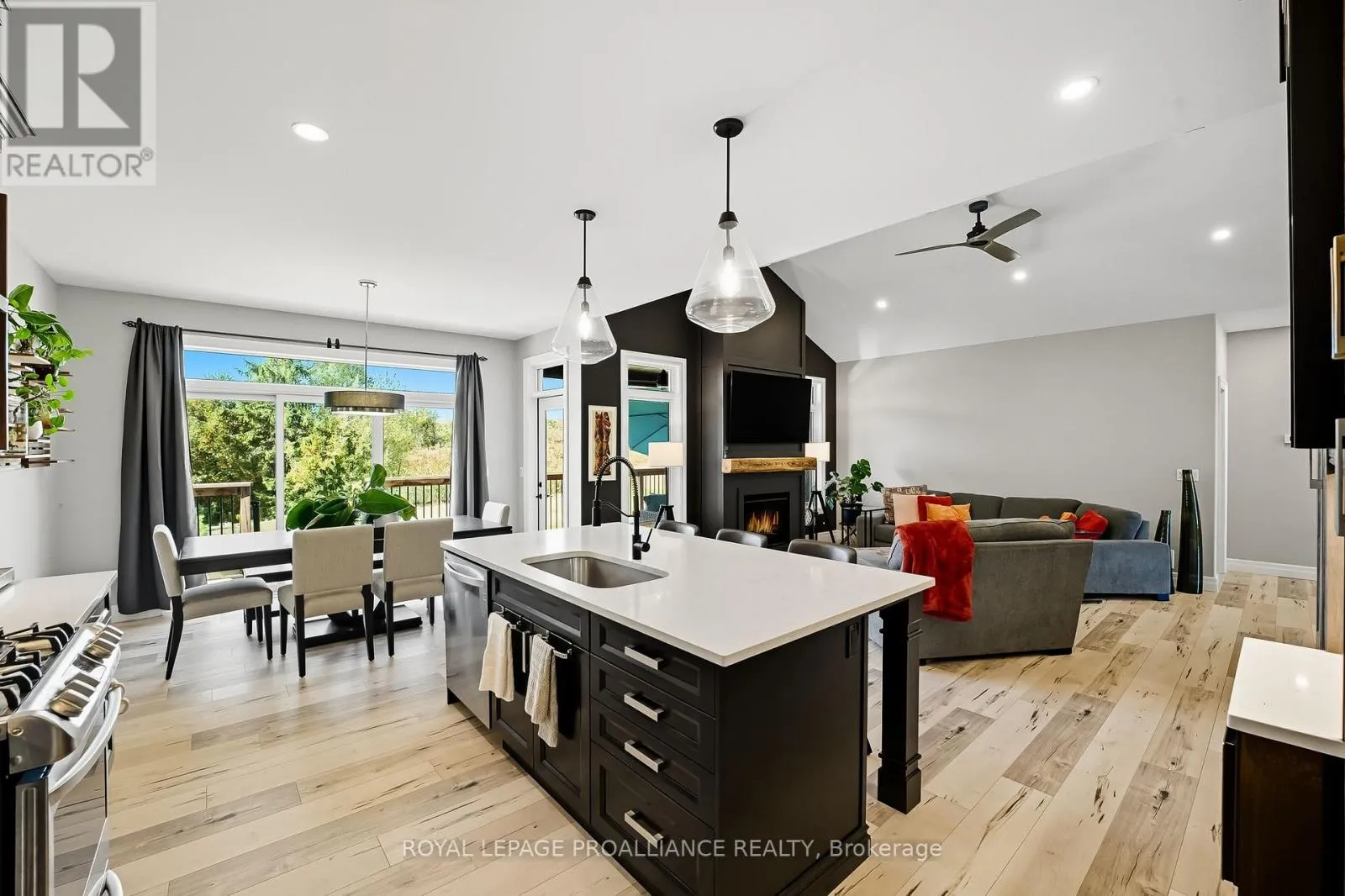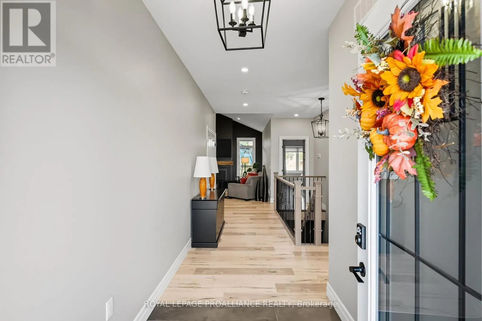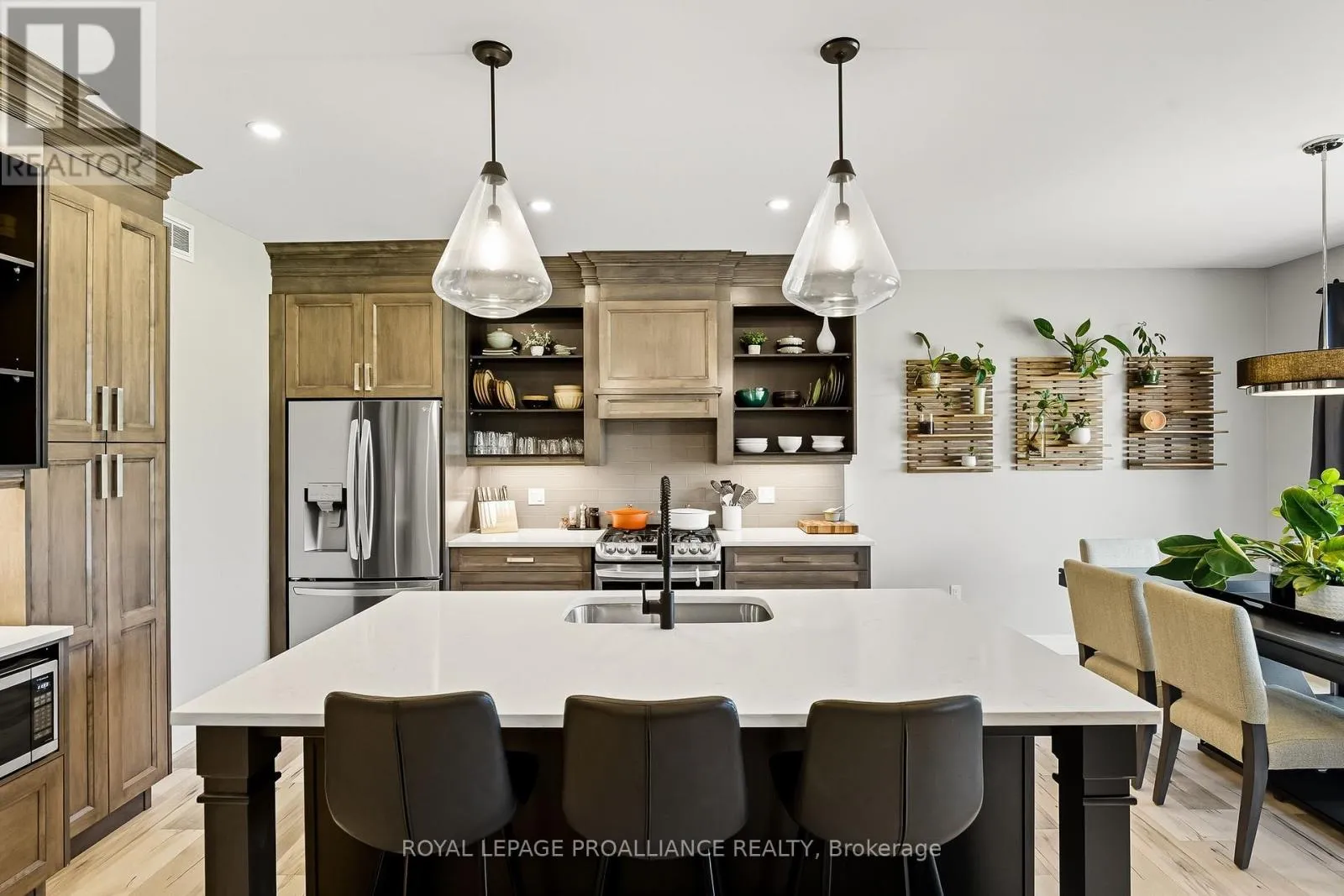 Cross Streets: Telephone Road and Orchard Lane. ** Directions: From County Rd 40, East onto Telephone Road. Left onto Orchard Lane. Right onto Autumn Grove. Left onto Ambrosia Terrace. The one you have been waiting for! Spacious upgraded home with 9 ft ceilings situated on a premium lot with west facing deck with no neighbours behind. Stunning kitchen with lots of cabinets to the ceiling with crown moulding and under valence lighting, back splash, quartz countertops and large island. Vaulted ceiling in the living room with gas fireplace with access to the private covered deck. Gorgeous primary bedroom with lots of room in the walk in closet plus an ensuite with a huge shower and double sinks. Barn door to main floor laundry and access to extra deep two car garage with insulated door and glass. Quality flooring throughout with low maintenance laminate and ceramic tile. Lots of room to customize your floor plan desires on the lower level. Much more to see - see it today or check out the video. (id:27476)