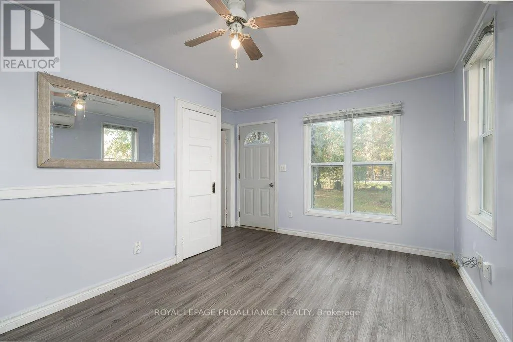 Loyalist Parkway & Old Portage Road This charming 2-bedroom bungalow offers the perfect blend of country charm and close to city convenience! Featuring a bright kitchen with white cabinetry and newer countertops, this home boasts easy-care laminate flooring throughout and no carpet. Nestled on a scenic, tree lined half-acre lot, providing privacy and a peaceful setting just minutes from town. Enjoy the convenience of main-level living with a 4-piece bathroom, in-suite stackable laundry, and two sheds for ample storage on the property. Ideally located near the Bay of Quinte, Trenton, CFB Trenton, shopping, and all amenities - this move-in ready home is a must-see. Perfect for First Time Home Buyers or Empty Nesters looking to downsize! (id:27476)