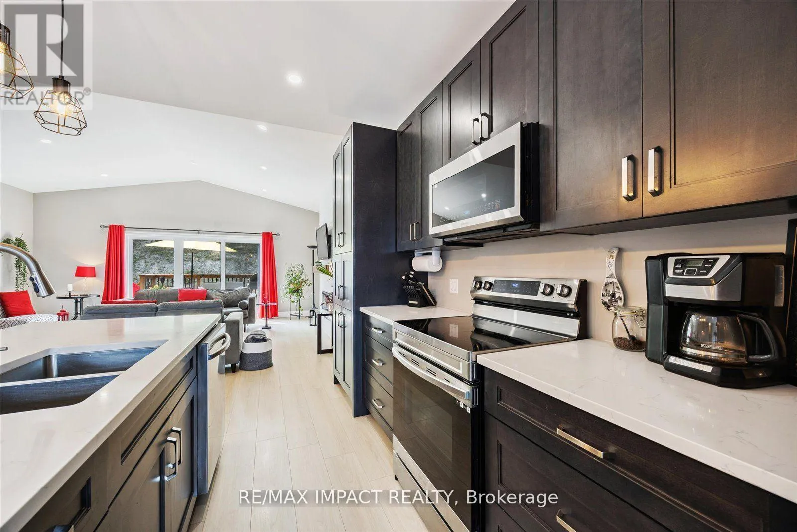 North Trent St./Huffman Rd. Welcome to this beautifully finished 2 year old home in the quiet community of Frankford, within walking distance to the Trent River and hiking trails, minutes to the 401, Belleville, CFB Trenton, golf courses and beach access! Still covered under Tarion Warranty, this property offers the best of both worlds. Like new condition with loads of upgrades already completed. Inside, you'll find three bedrooms, three washrooms, 9 ceilings, pot lights, and a vaulted ceiling in the living room that enhances the open concept layout. A stylish shiplap feature wall surrounds the fireplace, creating a warm and inviting focal point. The kitchen includes an 8 ft. island, quartz countertops and a wall of elegant glass-front cabinetry. The main floor laundry is complete with cabinets for added storage and functionality. Enjoy the outdoors in your private, fully fenced backyard, complete with a 10x12 deck, steel all-season gazebo, a second patio, perennial gardens, and no neighbours behind. The front interlocking stone walkway adds curb appeal, and the 200 amp electrical service offers peace of mind for future needs. A move-in ready home that's better than new. Don't miss this one! (id:27476)