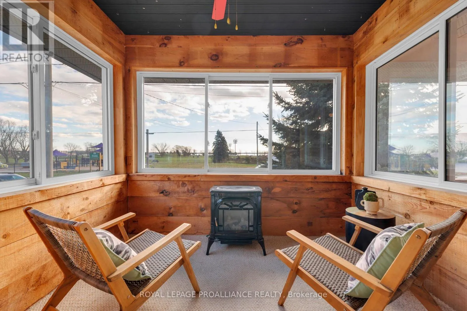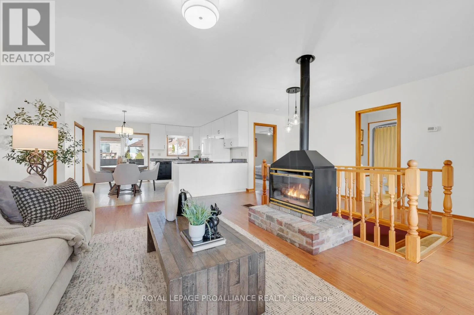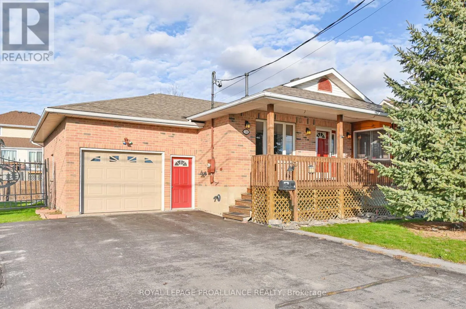 Cross Streets: Dundas Street. ** Directions: Hwy 2 E, continue onto Dundas St W, turn right onto Bay St. Welcome to 74 Bay Street, ideally situated in the heart of Quinte West. This charming home offers exceptional living space from top to bottom. The main floor features a generously sized primary bedroom with 4 piece en-suite. Second bedroom is enhanced with its own private sunroom and a nice view of the neighbouring park. Another full bathroom accents the main floor. You'll adore the inviting and freshly painted open-concept kitchen, dining, and living area with a very attractive gas fireplace. Another added convenience is the main-floor laundry just off the kitchen. Enjoy views of your backyard while sitting on the covered back porch. The lower level is perfect for entertaining, a kids' play space, or a cozy rec room with another corner fireplace to unwind around. It also includes a two-piece bath and plenty of storage for all your needs.The attached oversized one-car garage offers additional functionality with a rear door, making it easy to access your yard. Children and pets are also safe in the fully fenced backyard. Young or young at heart, this home's location is perfect to enjoy parks, recreation fields, the splash pad, grocery stores and even the Senior Citizen's Club is close by! This property has it all! (id:27476)