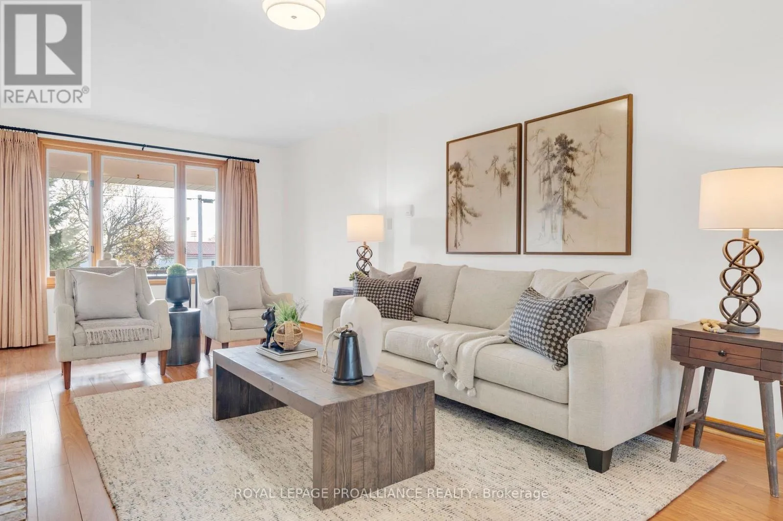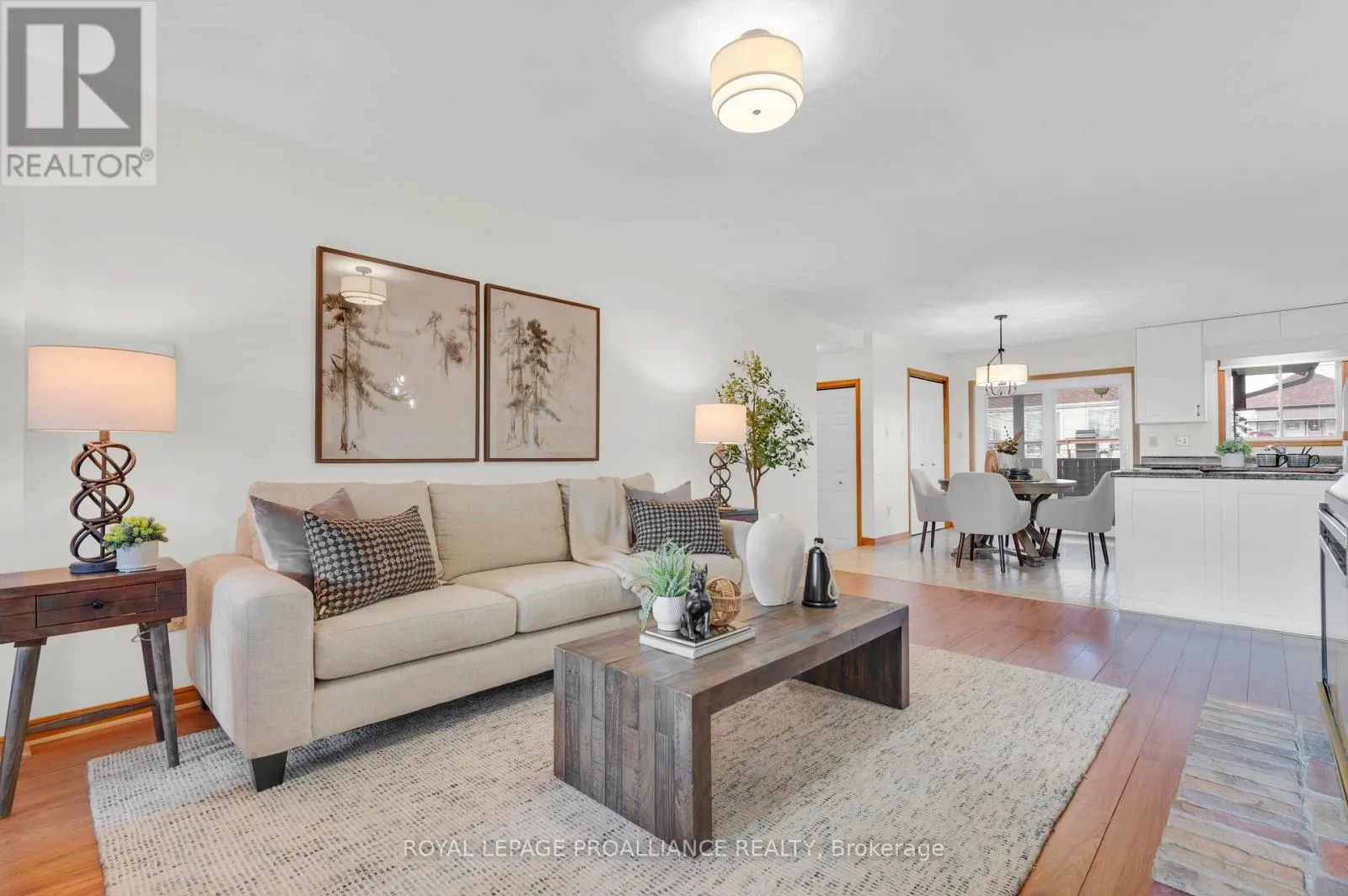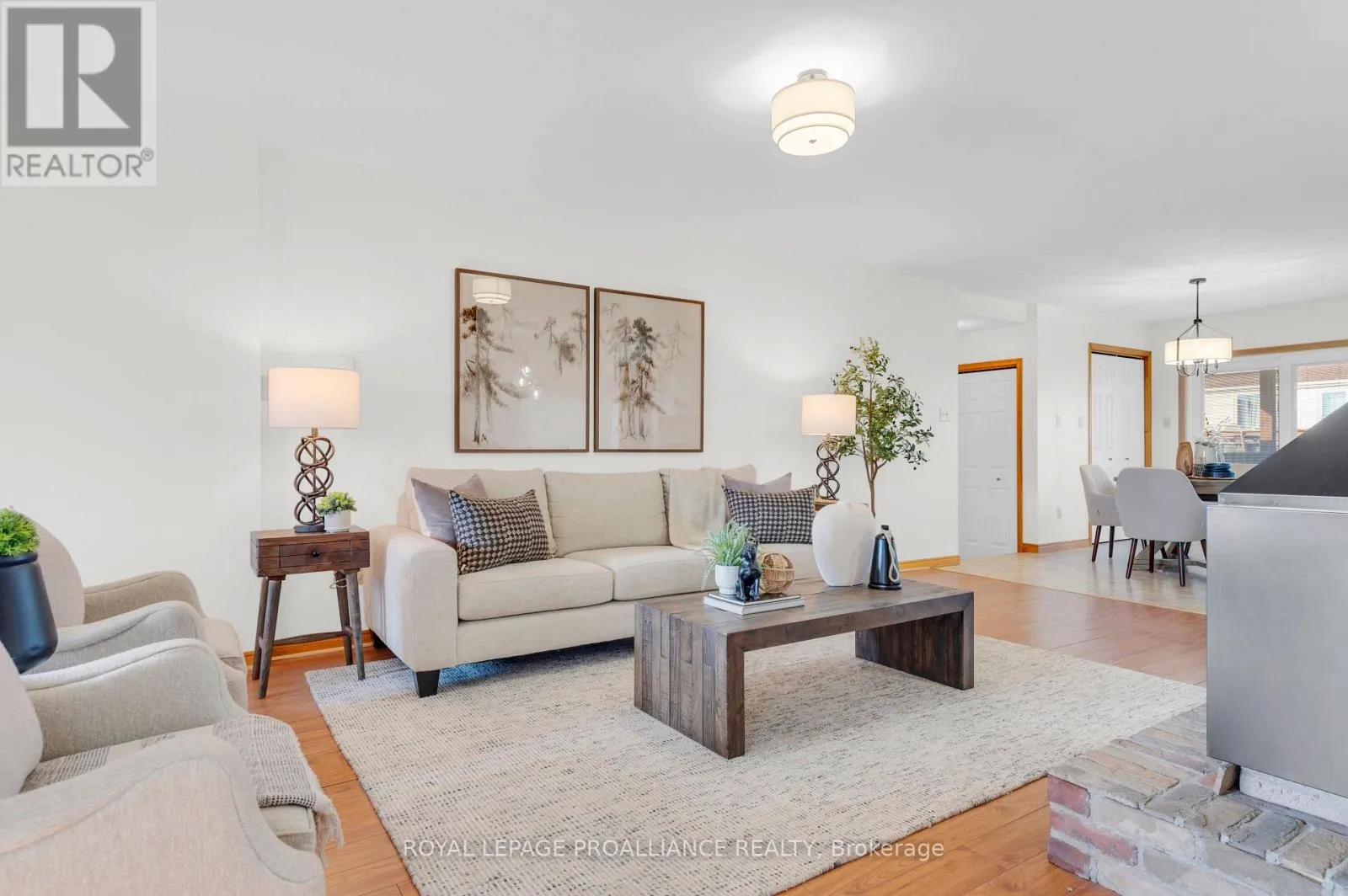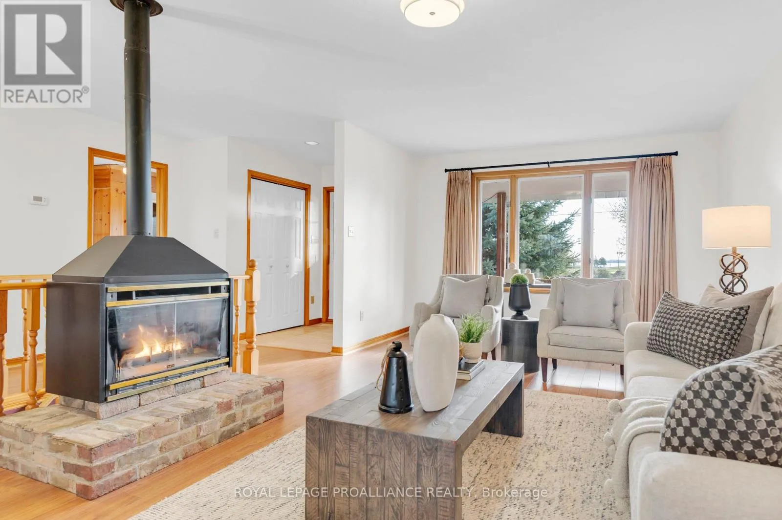 Cross Streets: Dundas Street. ** Directions: Hwy 2 E, continue onto Dundas St W, turn right onto Bay St. Welcome to 74 Bay Street, ideally situated in the heart of Quinte West. This charming home offers exceptional living space from top to bottom. The main floor features a generously sized primary bedroom with 4 piece en-suite. Second bedroom is enhanced with its own private sunroom and a nice view of the neighbouring park. Another full bathroom accents the main floor. You'll adore the inviting and freshly painted open-concept kitchen, dining, and living area with a very attractive gas fireplace. Another added convenience is the main-floor laundry just off the kitchen. Enjoy views of your backyard while sitting on the covered back porch. The lower level is perfect for entertaining, a kids' play space, or a cozy rec room with another corner fireplace to unwind around. It also includes a two-piece bath and plenty of storage for all your needs.The attached oversized one-car garage offers additional functionality with a rear door, making it easy to access your yard. Children and pets are also safe in the fully fenced backyard. Young or young at heart, this home's location is perfect to enjoy parks, recreation fields, the splash pad, grocery stores and even the Senior Citizen's Club is close by! This property has it all! (id:27476)