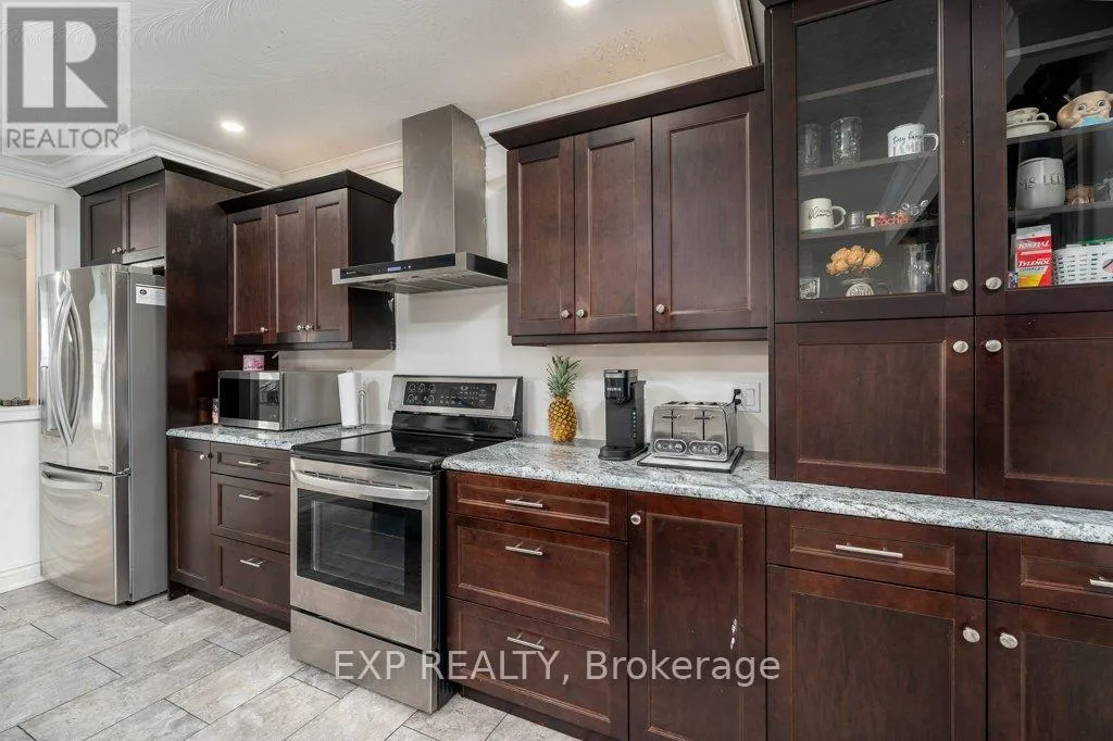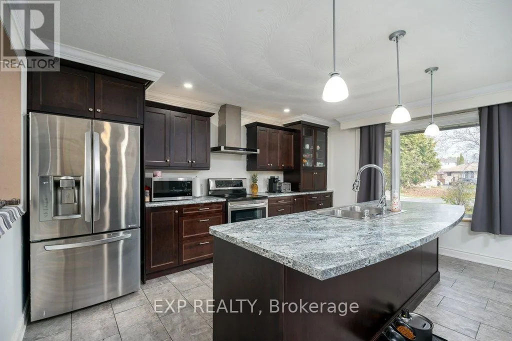 Cross Streets: Sidney & Panelas Cres. ** Directions: Sidney Street to Panelas Cres. Looking for a beyond spacious bungalow in a family-friendly Trenton neighbourhood, loaded with potential and priced to sell? Offering over 1,500 sq ft on the main level plus a full basement with multiple bonus spaces, this home is ideal for first-time buyers, investors, or families looking to grow into more space. The star of the home is the beautifully updated kitchen, featuring rich cabinetry, stainless steel appliances, a massive island with seating, upgraded countertops, and plenty of prep & storage space. It's the perfect hub for entertaining, cooking, and family gatherings. The main floor includes 3 bedrooms, a bright living room, a dining area, a laundry room, a sunroom overlooking the yard, and a 4pc bath. The layout offers great flow and opportunity to modernize and personalize. The basement level adds tremendous value with multiple finished rooms, including a large rec room, family room, bar area, bonus rooms, storage, cold room, and a 3pc bath ready to be hooked up. Whether you envision an in-law setup, a teen hangout, a home gym, or a rental suite, the flexibility here is unbeatable. Outside, enjoy a private yard, double garage, and a welcoming front porch. Located close to CFB Trenton, schools, shopping, parks, and amenities. With an incredible kitchen already done for you and endless potential throughout, this is your chance to build equity quickly. Homes at this price with this much space do not last. (id:27476)
