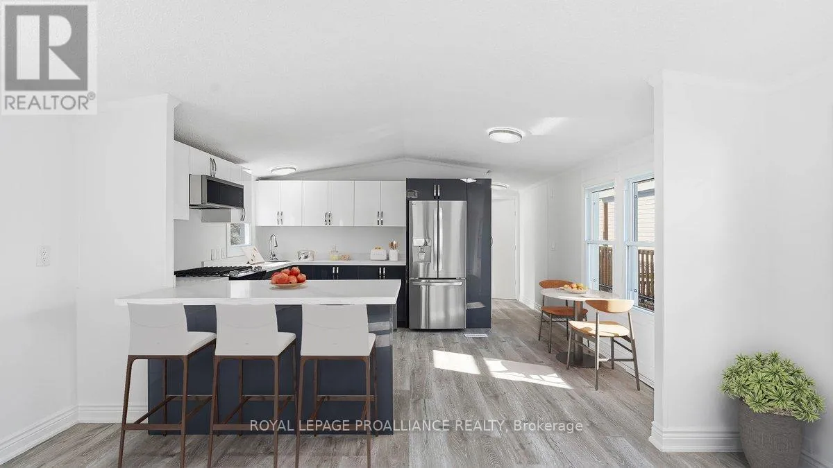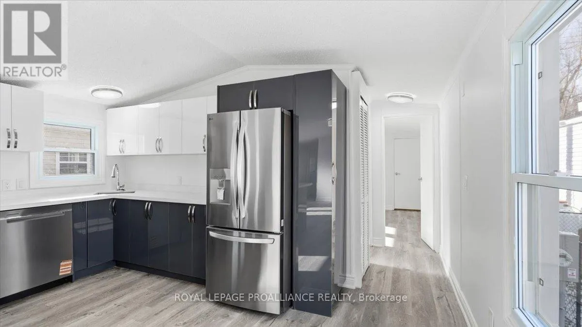 Dundas Street East- South Side Looking to downsize or just starting out? This updated home could be the one! Stylish kitchen cupboards with soft close feature, quartz counter top, stainless kitchen appliances (gas stove, fridge, dishwasher, microwave),laminate flooring throughout, modern light fixtures. Generous sized living room gets plenty of natural light. A handy second 4pc bath is convenient for guests. The laundry area has front load washer and dryer, plenty of cupboards and counter space. The primary bedroom has a 4pc ensuite and walk in closet. Second bedroom also has a walk in closet. Exterior of the home is low maintenance vinyl siding. A 50 ft deck runs along the south side of the home. Double paved drive and patio area complete the outside. Absolutely nothing to do but move in! (id:27476)