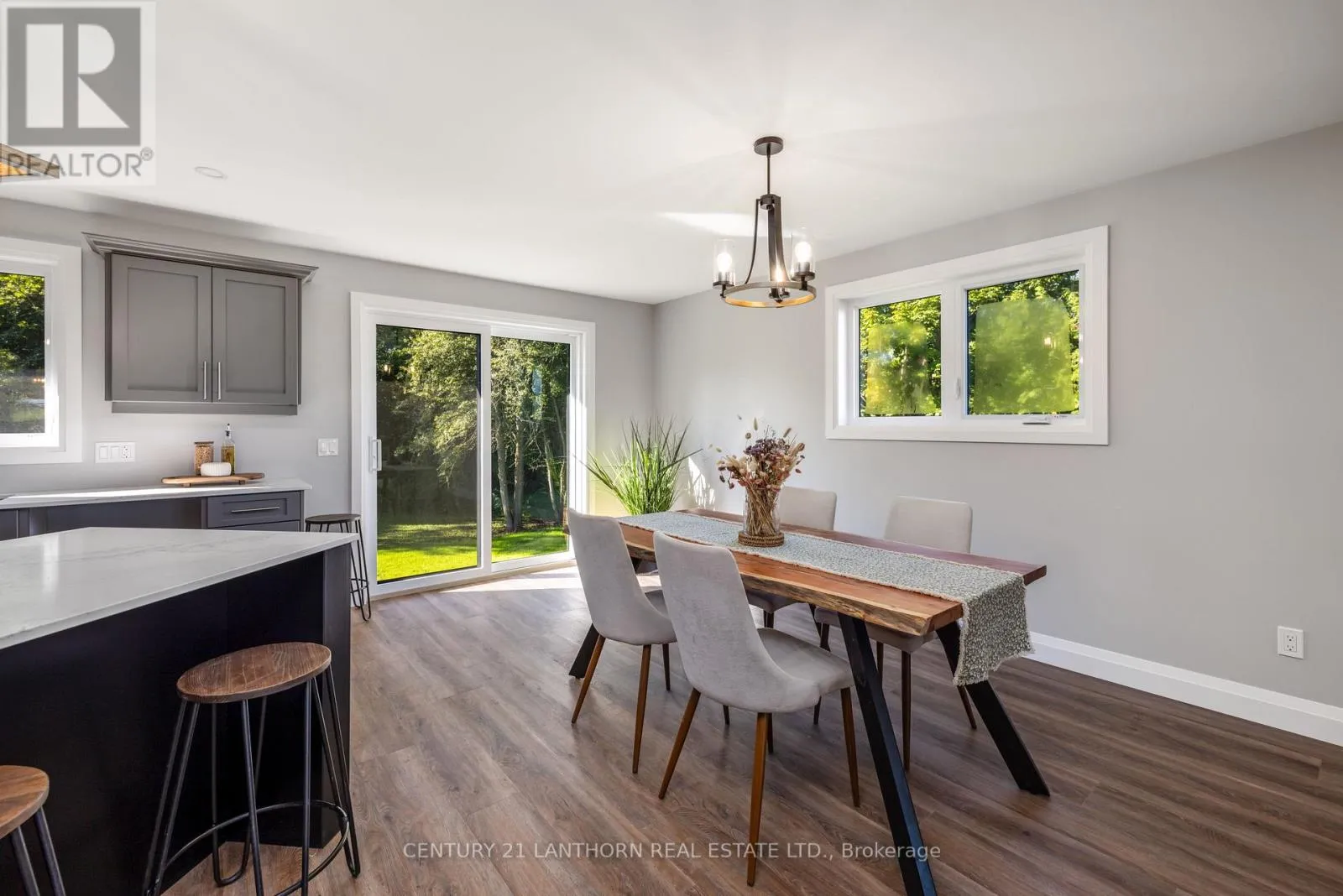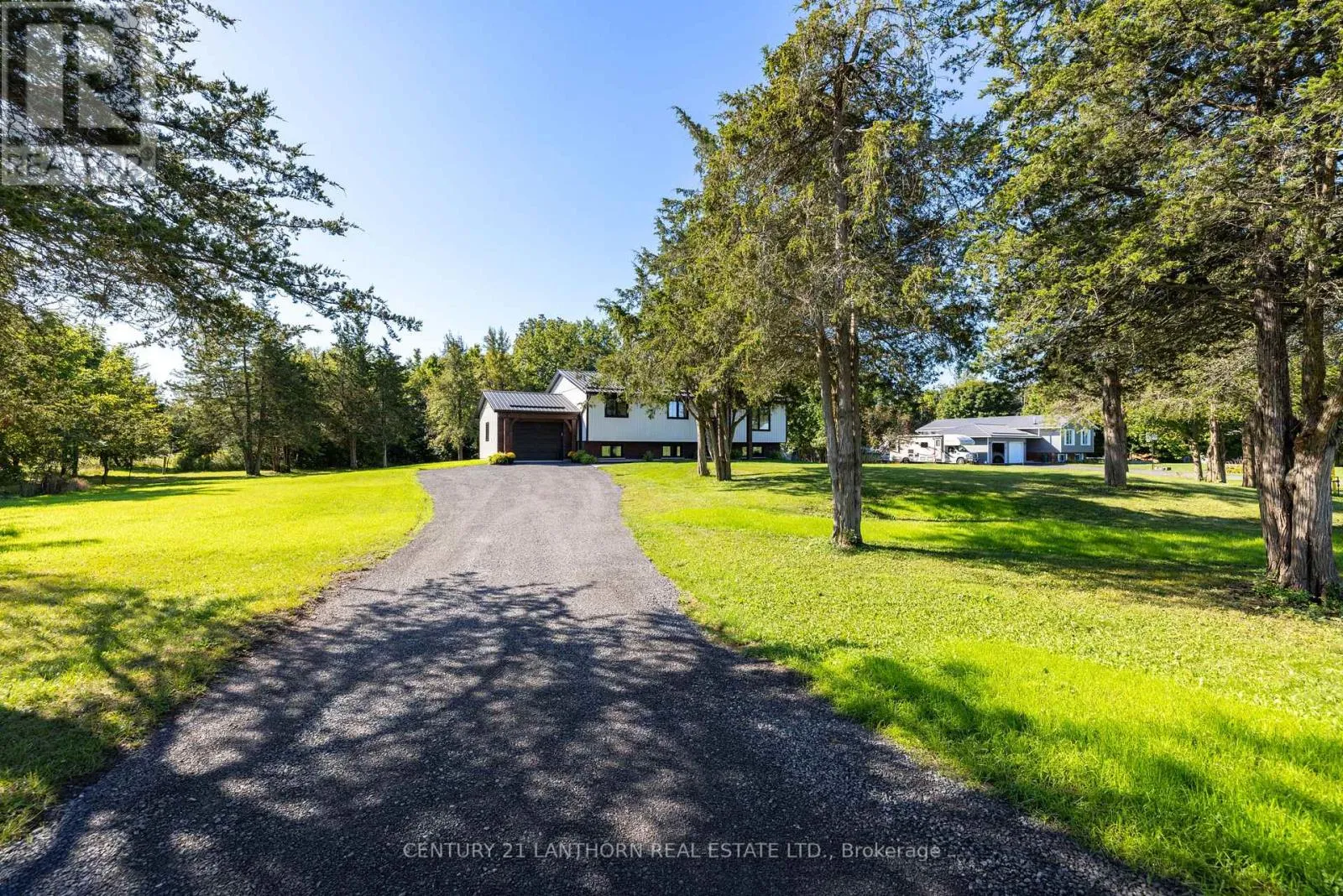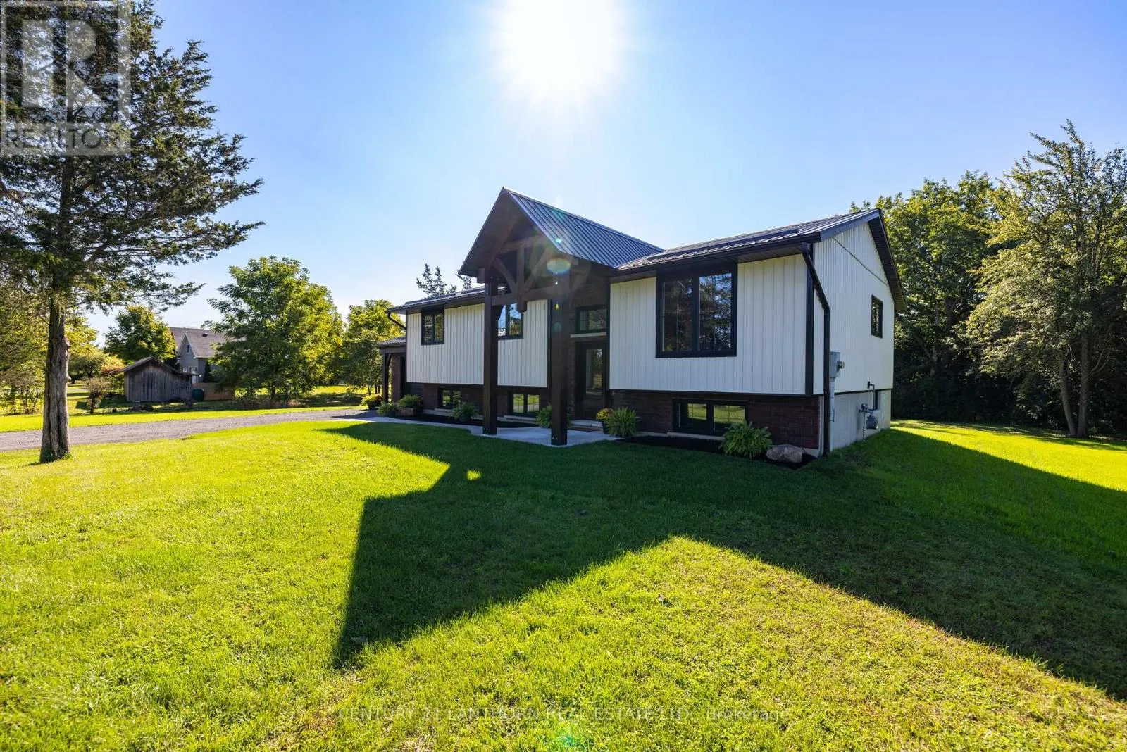 Highway 2 to McMaster Country sophistication meets practical living space in this newly modernized and remodeled family home on the edge of town. This stunning raised bungalow will draw you in from the moment you pull into the driveway with enhanced curb appeal including custom beams showcasing the front entrance. Inside you'll find a gorgeous kitchen complete with corner pantry and oversize island, open dining and living area with windows highlighting the peacefulness of the surrounding fields outdoors, and maintenance free flooring throughout the entire house. The main level includes 3 bedrooms, the primary with it's own 3 piece ensuite, a spacious 4 piece bathroom and a bonus closet which can also accommodate a stackable laundry unit. The lower level has an additional 2 bedrooms, a 4 piece bathroom, and a large laundry/mudroom with a separate entrance into the garage/outside. The main living space downstairs has a generous sized rec room with one end ready to accommodate an additional kitchen/wet bar, or toy room/playroom. Outside the backyard is the perfect size to maintain easily, yet ample space to put in a pool off the oversized deck, build a chicken coop, or fence in for pets. This home can easily suit a young growing family, or multi-generations with it's versatile spaces. The location is perfect, with it being a short drive to everywhere including schools, into town, and the 401. With it's contemporary yet classic decor, you'll find it easy to imagine yourself living here - this home has it all, prepare to fall in love! (id:27476)