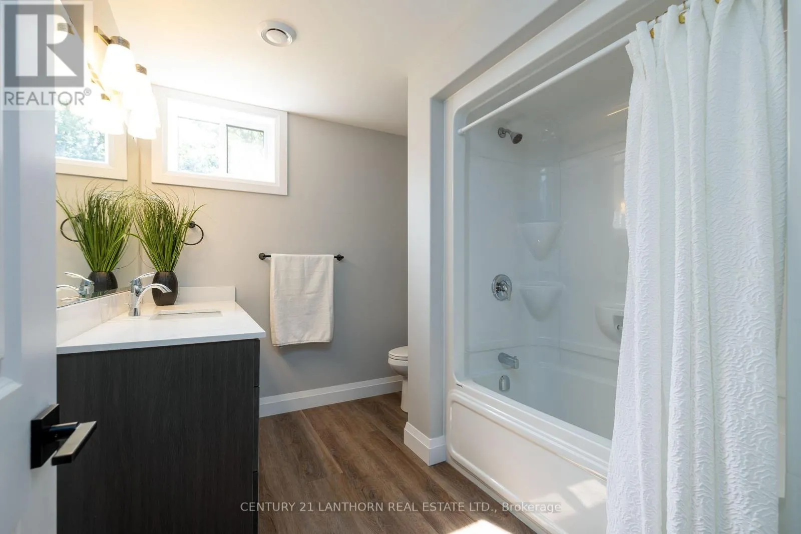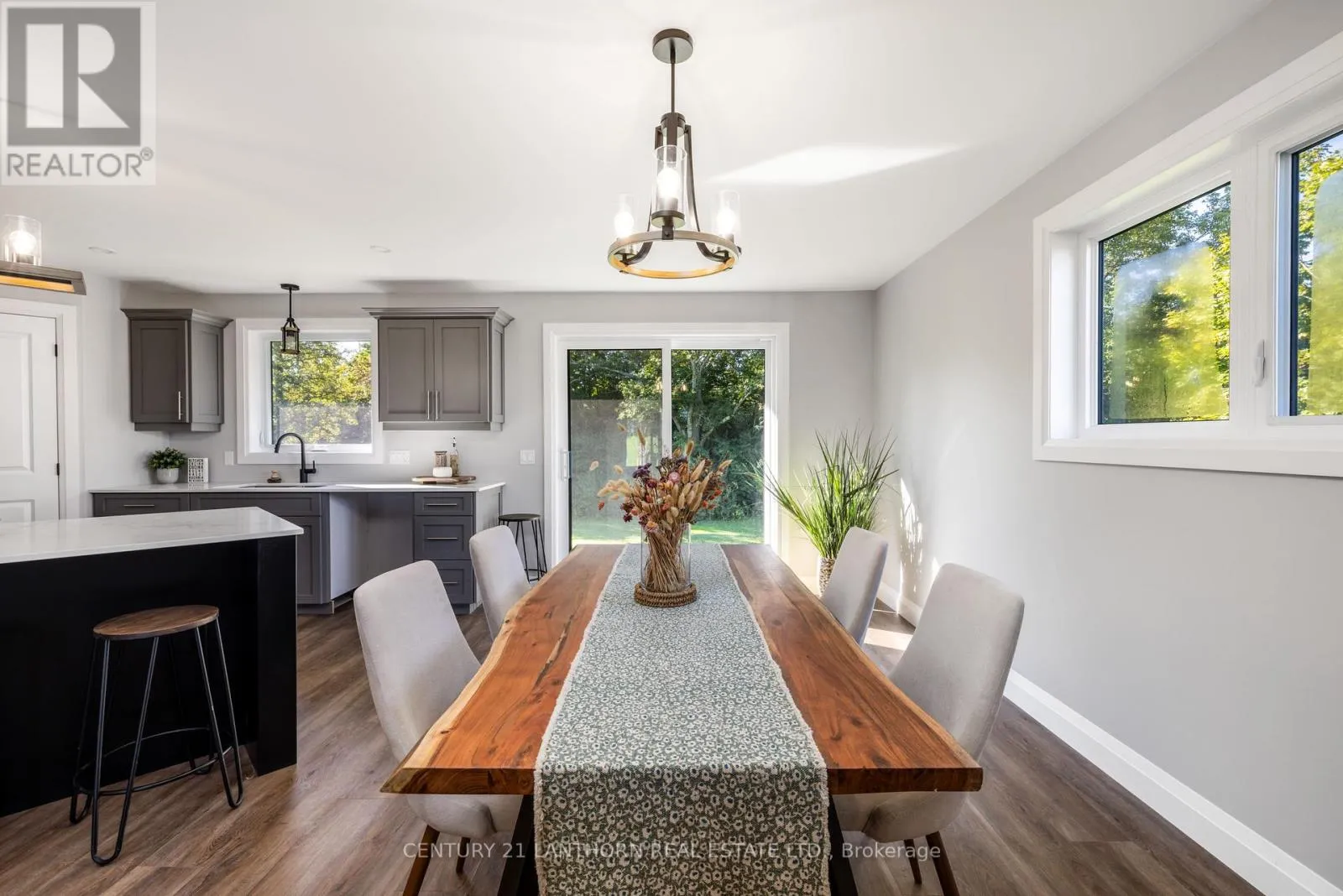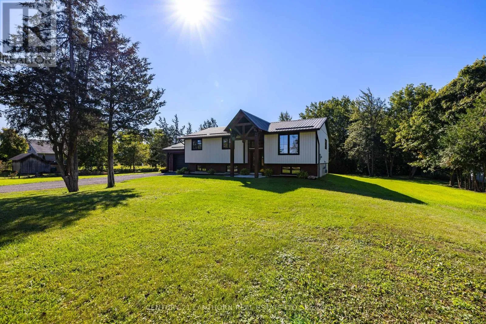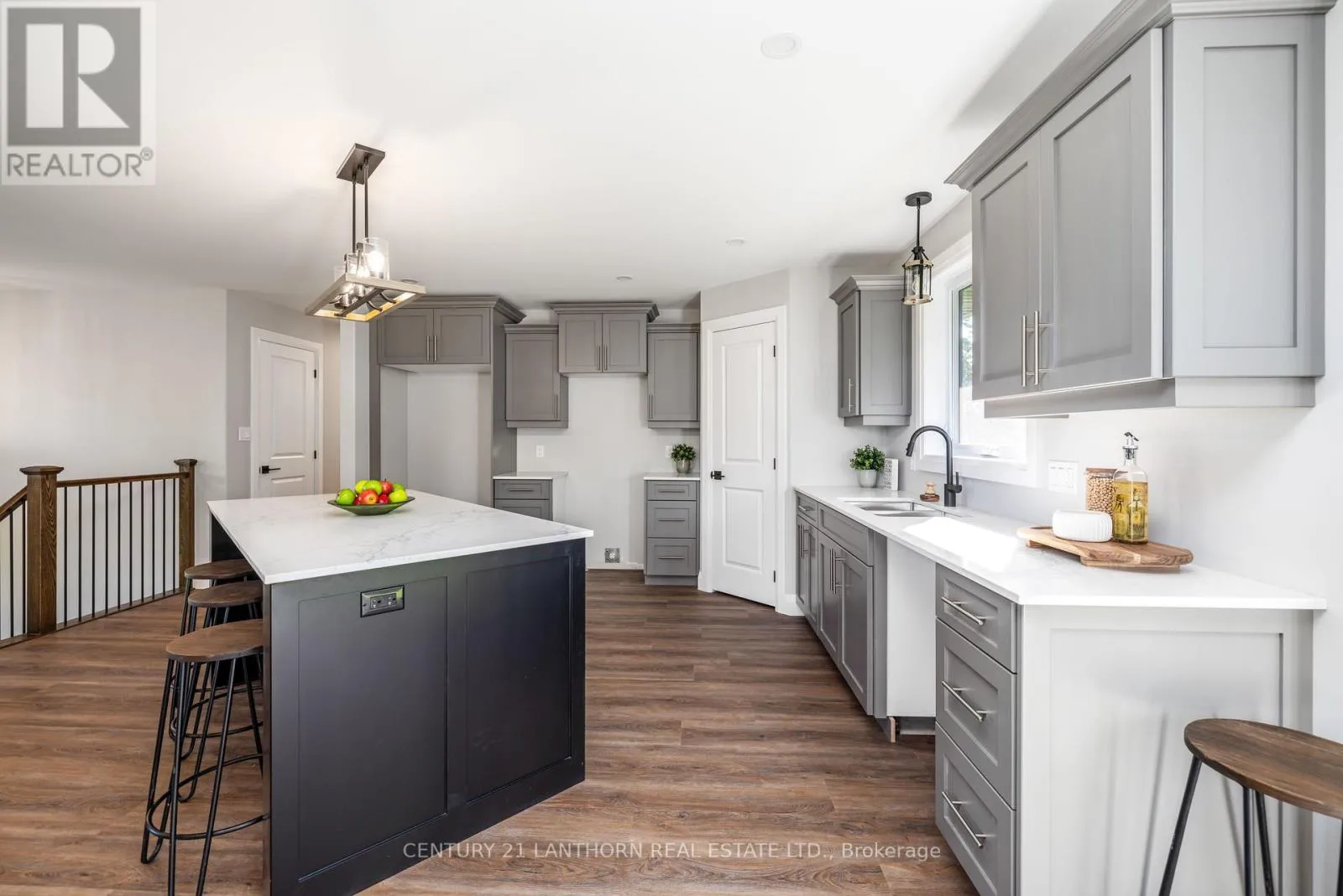 Highway 2 to McMaster Country sophistication meets practical living space in this newly modernized and remodeled family home on the edge of town. This stunning raised bungalow will draw you in from the moment you pull into the driveway with enhanced curb appeal including custom beams showcasing the front entrance. Inside you'll find a gorgeous kitchen complete with corner pantry and oversize island, open dining and living area with windows highlighting the peacefulness of the surrounding fields outdoors, and maintenance free flooring throughout the entire house. The main level includes 3 bedrooms, the primary with it's own 3 piece ensuite, a spacious 4 piece bathroom and a bonus closet which can also accommodate a stackable laundry unit. The lower level has an additional 2 bedrooms, a 4 piece bathroom, and a large laundry/mudroom with a separate entrance into the garage/outside. The main living space downstairs has a generous sized rec room with one end ready to accommodate an additional kitchen/wet bar, or toy room/playroom. Outside the backyard is the perfect size to maintain easily, yet ample space to put in a pool off the oversized deck, build a chicken coop, or fence in for pets. This home can easily suit a young growing family, or multi-generations with it's versatile spaces. The location is perfect, with it being a short drive to everywhere including schools, into town, and the 401. With it's contemporary yet classic decor, you'll find it easy to imagine yourself living here - this home has it all, prepare to fall in love! (id:27476)
