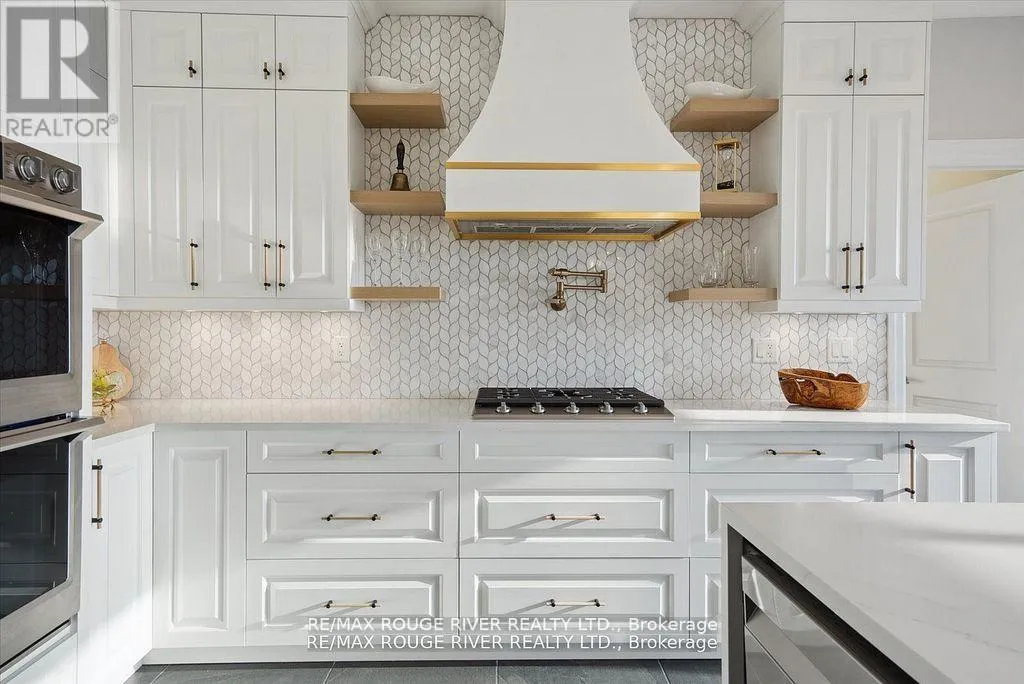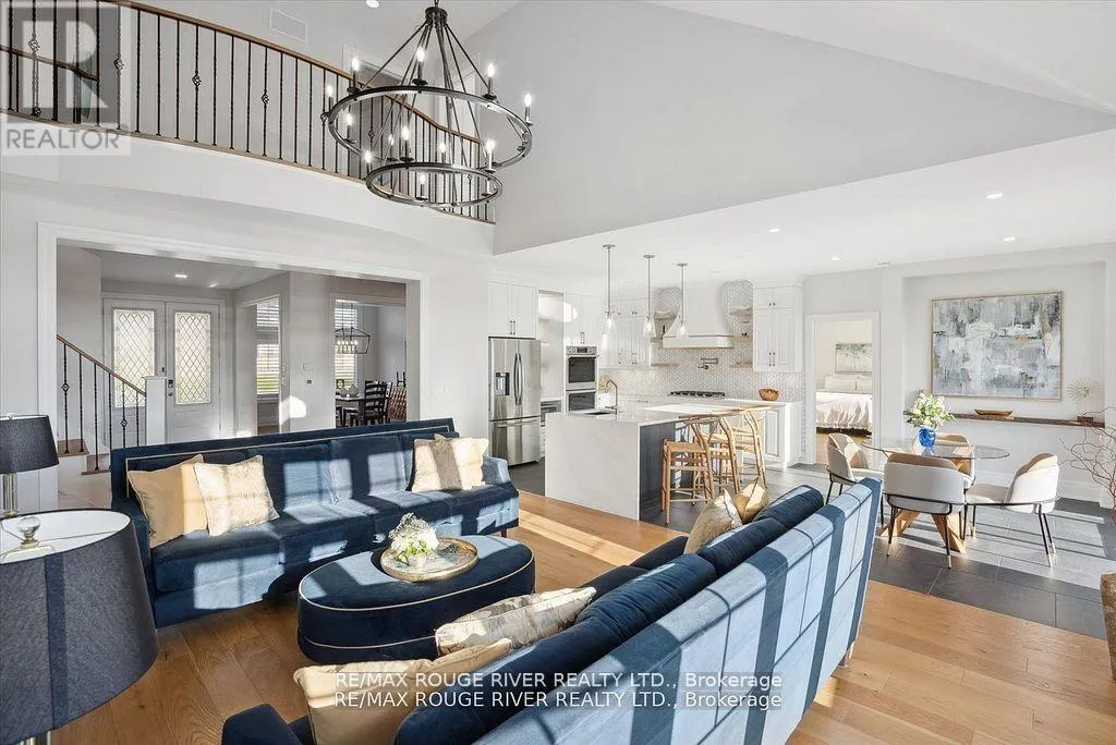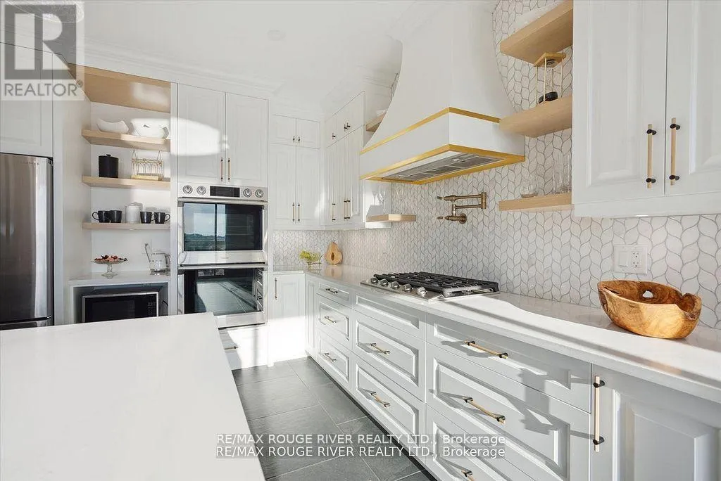 Loyalist Hwy/County Road 64 Presenting a remarkable Executive Bungaloft crafted by Briarwood Homes. Spanning 3,941 square feet, this 5bedroom + 4.5 bathroom residence showcases breathtaking views of Wellers Bay and Lake Ontario. Every aspect of this fully upgraded and personalized home has been meticulously designed. On the main level, discover a Custom Kitchen that flows seamlessly into a radiant great room featuring impressive 18-foot ceilings and elegant palladium windows. The layout is truly exceptional, providing limitless opportunities for entertaining and family gatherings. The kitchen is a chef's dream, complete with two built-in ovens, a gas cooktop, a pot filler, a centre island with a breakfast bar, soft-close drawers, a coffee bar, chic gold accents, and trendy open shelving. The primary bedroom is a serene retreat with lovely water views and a luxurious ensuite that boasts contemporary decor, heated flooring, and walk-in closet. Two additional bedrooms on the main floor each have their own private ensuites, ensuring comfort for family or guests. For those who work from home, the main floor office is equipped with custom built-in bookshelves that make work a pleasure. The second floor features a cozy family room loft that includes a wet bar, along with two more bedrooms, each with a semi-ensuite one of which offers stunning views of the bay. Additional conveniences include a main floor laundry room with a separate entrance and easy garage access. Enjoy grilling and gathering on your stone patio while soaking in the tranquil surroundings by the fire pit. Located in Carrying Place, this home is close to parks, scenic trails, golf courses, wineries, and beautiful beaches. This property is ideal for multi-generational living in a serene, highly-desirable community. **EXTRAS** Generac Generator, Built in BBQ, Custom Office Built In Shelving, Wet Bar in Family room, Patio overlooking Wellers Bay with Fire-pit, Walk-in Pantry, Professional Landscape/Interlock, Water Softener (id:27476)