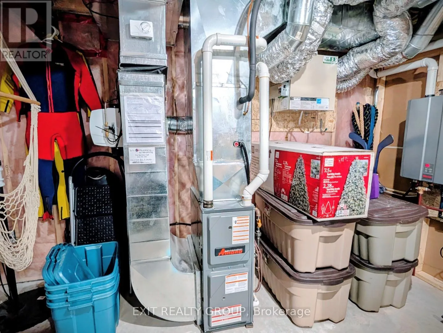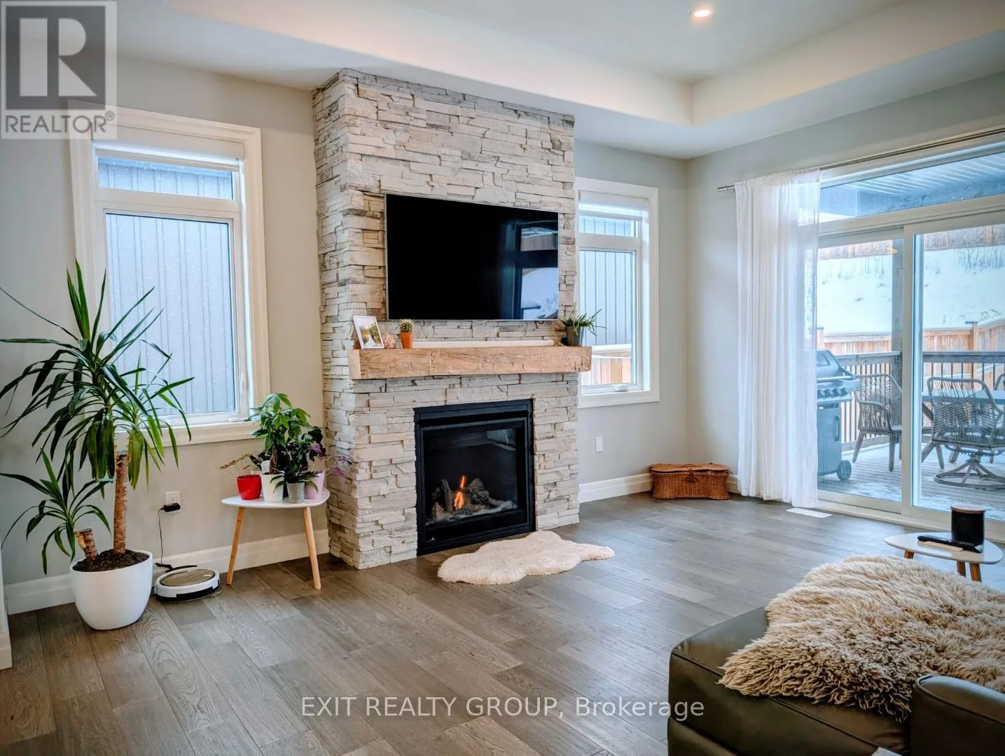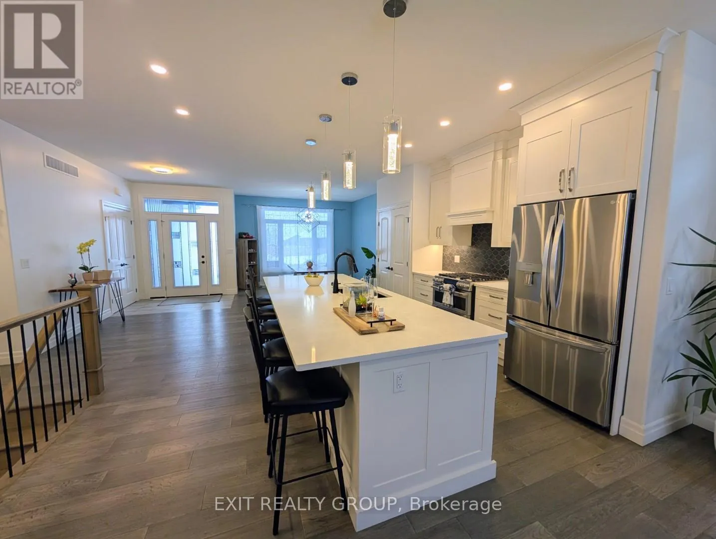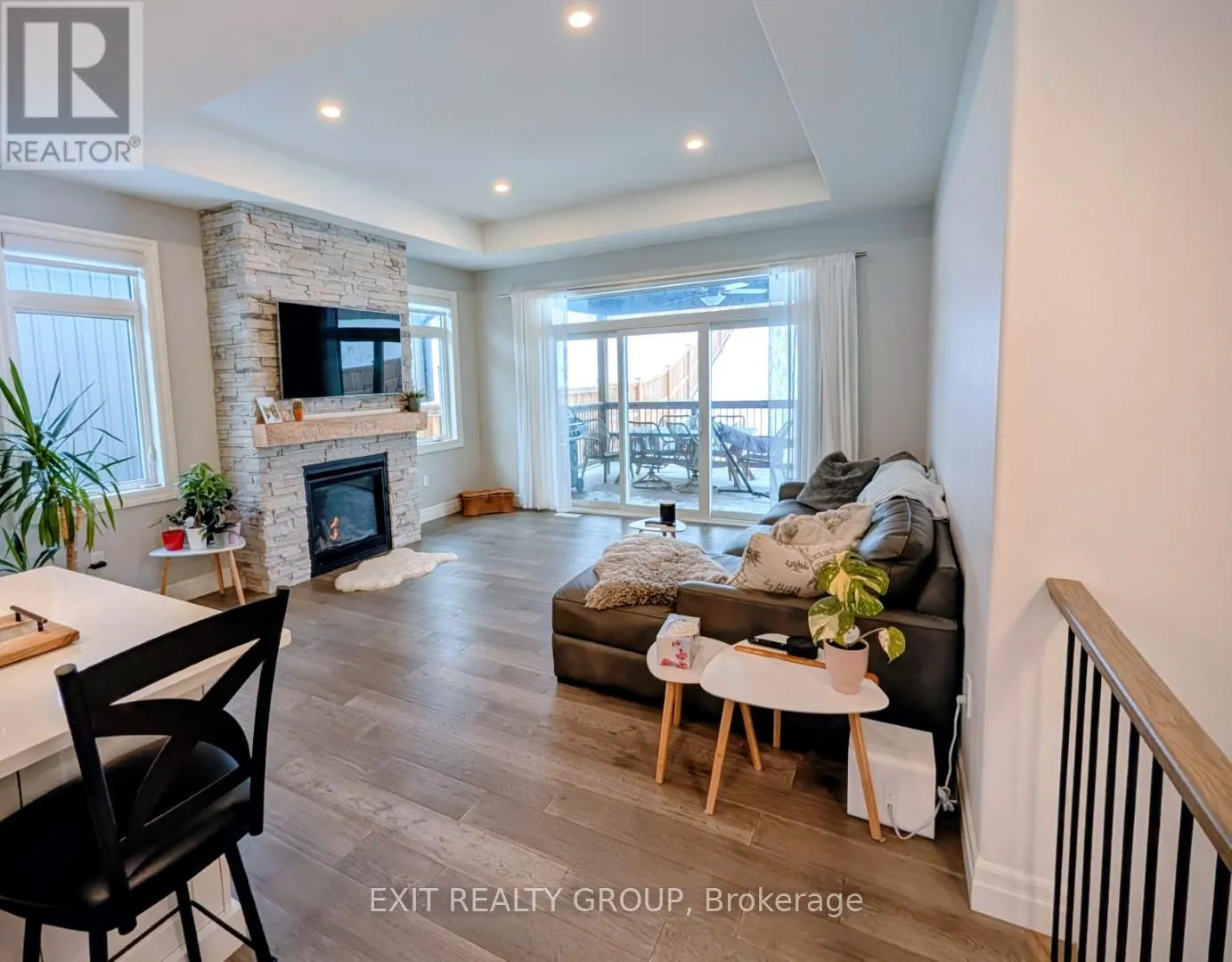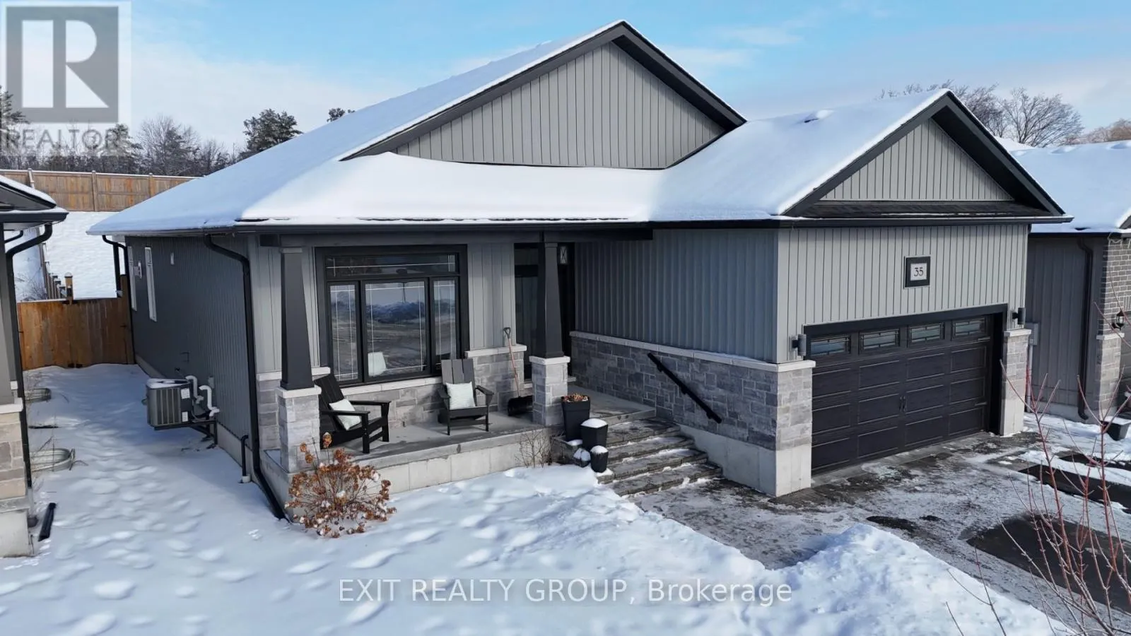 Cross Streets: Schmidt Way & Amborsia Tsse. ** Directions: From Telephone Rd, head North on Orchard Lane, go right on Autumn Grv, then left on Ambrosia Tsse to Schmidt Way. Welcome to 35 Schmidt Way, an upgraded and well-maintained bungalow built in 2022, offering modern design, premium finishes, and generous living space in a family-friendly neighbourhood with quick access to CFB Trenton and Highway 401. Thoughtfully designed & meticulously cared for, this home is ideal for families, military relocations or anyone looking for a modern bungalow with room to grow. The main floor features 9-foot ceilings throughout and offers three well-appointed bedrooms including a spacious primary suite complete with a walk-in closet and a private ensuite. A separate second full bathroom is conveniently located on the main level. The living room showcases a tray ceiling, gas fireplace, and large windows that flood the space with natural light, while engineered hardwood flooring and upgraded lighting enhance the open, airy feel. At the heart of the home is the stunning open-concept kitchen, designed for both everyday living and entertaining. Highlights include an impressive 10-foot quartz island with additional cupboard storage, ceiling-height cabinetry, upgraded backsplash, pantry, and a 2025 electric/gas stove. Transom windows further elevate the space and the thoughtful layout offers both style and functionality. The fully finished basement expands the living area with a large recreation room, two additional bedrooms, a 3 piece bathroom and a finished laundry room, providing flexible space for family living, guests, or home office needs. Additional features include a finished attached garage, HRV system, furnace with humidifier and central air, on-demand water heater, sump pump, gas line for BBQ, interior and exterior pot lights and pride of ownership throughout. Step outside to a fully fenced backyard designed for enjoyment, featuring a covered deck and a properly installed 2022 6+ seater hot tub set on compacted limestone with a defined walkway. A move-in-ready home with premium upgrades in a sought-after location-simply unpack and enjoy. (id:27476)