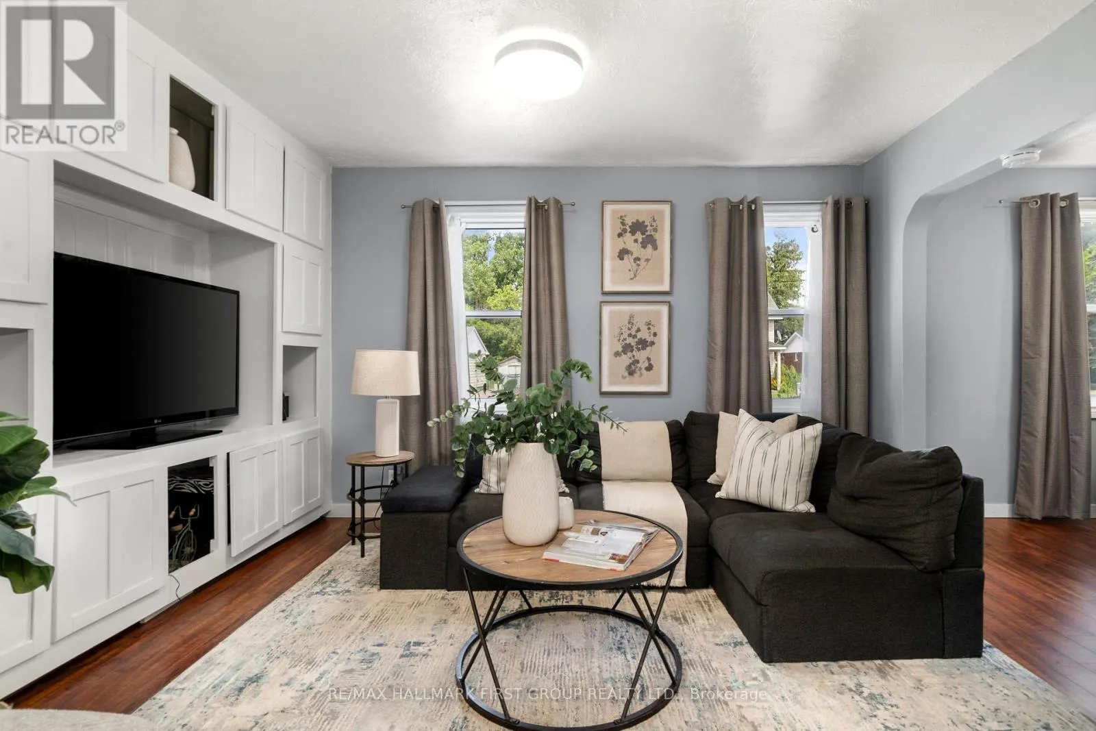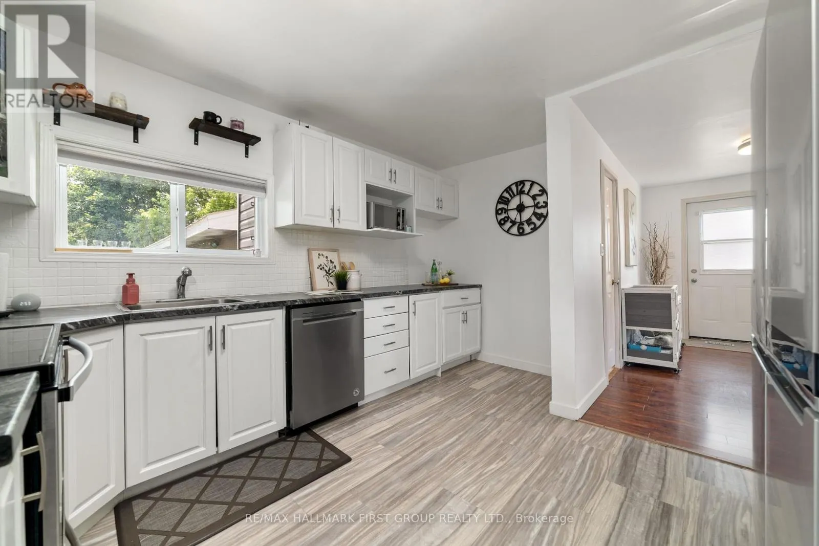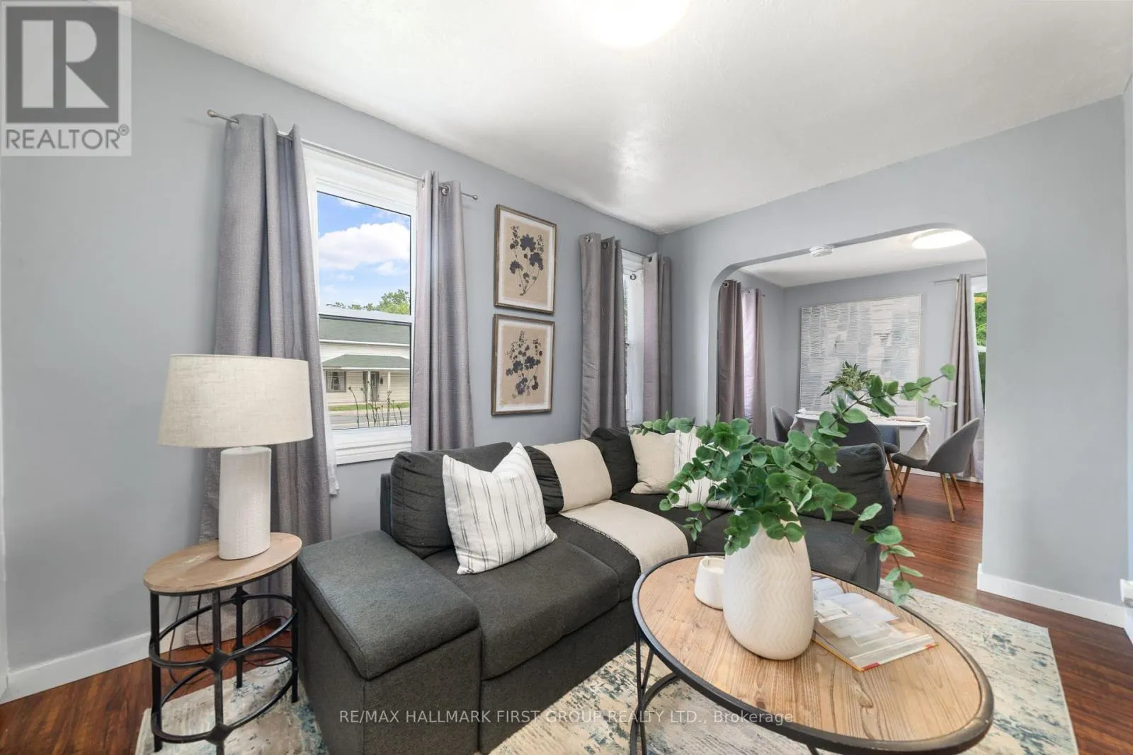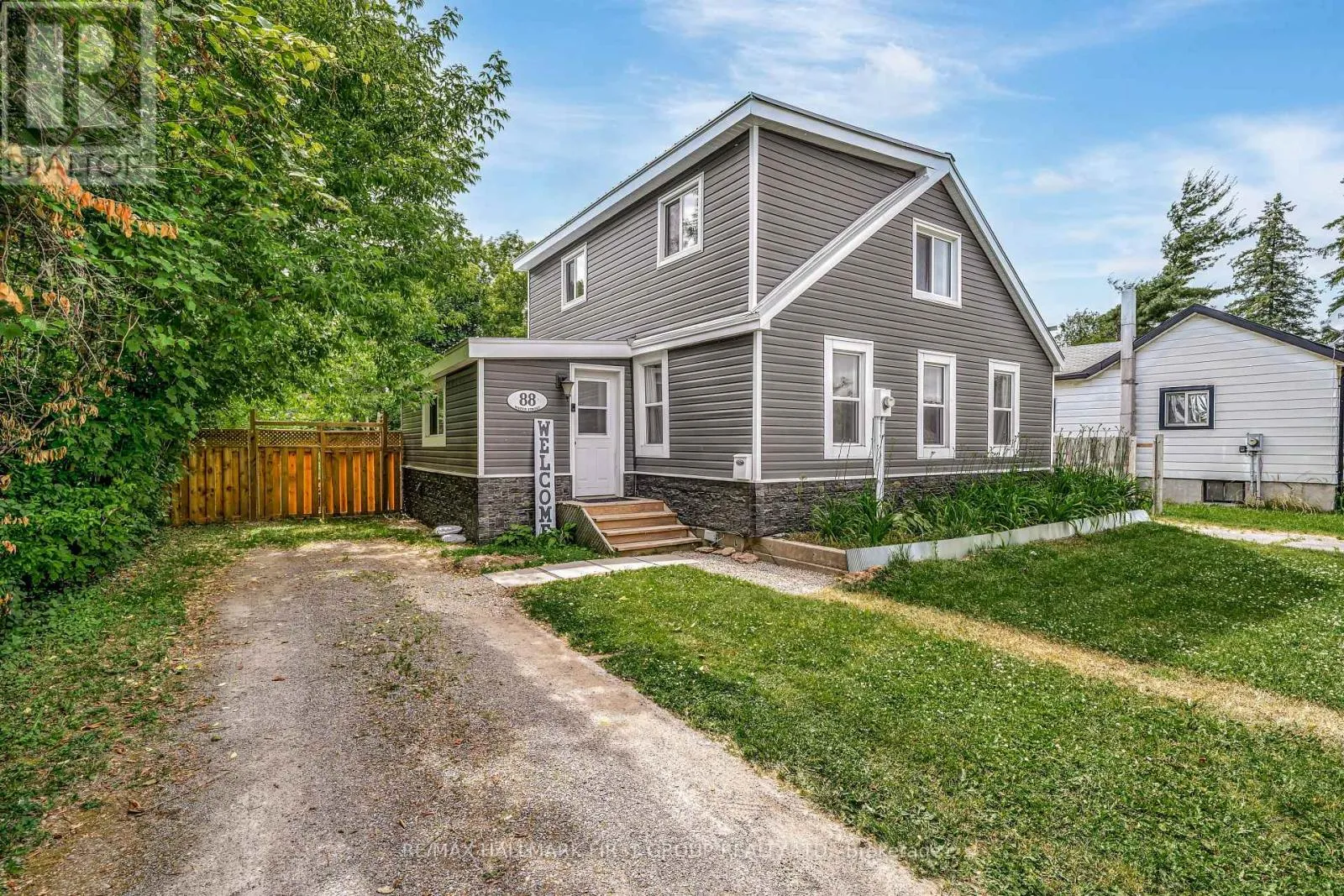 Bridge Street & Water Street Charming, updated 2-bedroom, 2-storey home on a generous sized lot with easy access to Hwy 401 & all amenities! Featuring new siding, updated windows, freshly painted and modern flooring throughout, this home blends comfort with convenience. Step into a bright mudroom with main-floor laundry, leading into a spacious kitchen with full appliance package. Separate dining room/living room featuring handy built in shelving for your TV, books and cherished family photos. Finishing off the main level is a modern 4-piece main bath. Second level offers primary bedroom with walkout to a private balcony perfect for morning coffee and a generous sized secondary bedroom. The unfinished basement provides ample storage space. Outside boasts 2 driveways with ample parking, oversized detached garage and metal roof, and a great yard ready for your personal touch. A perfect mix of charm & space! (id:27476)