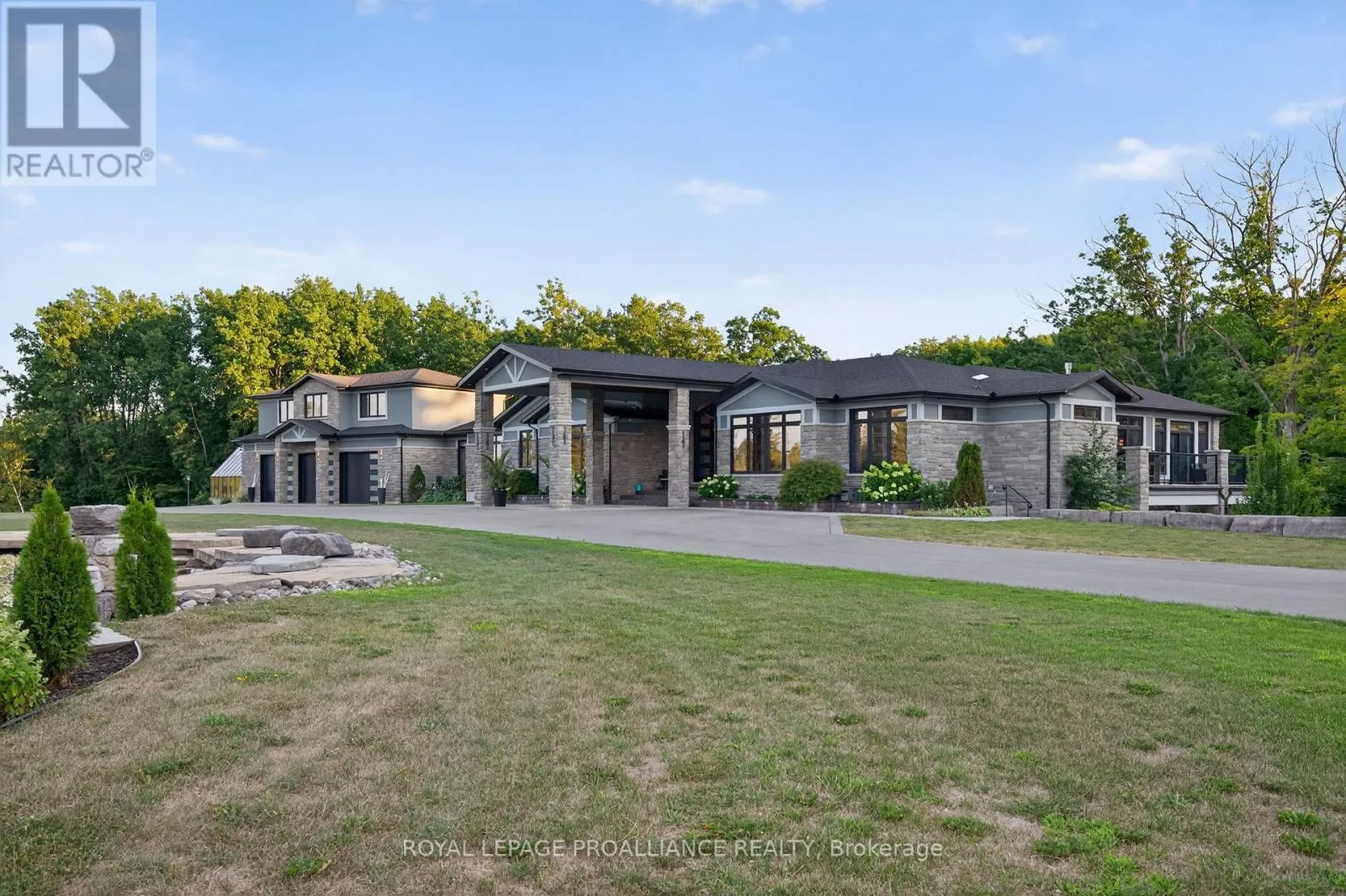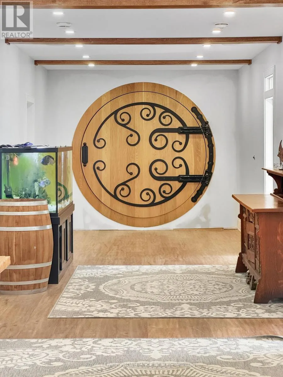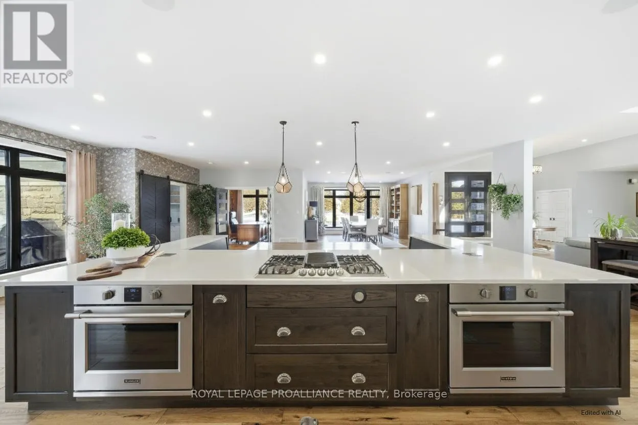 County Road 40 & Murray Street Set on approximately 40 acres of beautifully treed land, this exceptional County Road 40 estate offers an unparalleled blend of privacy, luxury, and lifestyle. Trails wind throughout the property, complemented by multiple ponds and thoughtfully designed outdoor spaces that invite year-round enjoyment. The main residence offers just under 5,000 sq. ft. on the main level, plus nearly 4,000 sq. ft. of finished living space below. An open-concept design with soaring ceilings and abundant natural light creates an ideal setting for both everyday living and entertaining. The main floor features three spacious bedrooms, each with its own private ensuite, including a primary suite with dual walk-in closets-his and hers. The fully finished lower level adds two additional bedrooms, expansive recreation space, an exercise room, sauna, and a hidden room behind a striking round wooden door-ideal for a future wine cellar or private retreat. Above the three-car garage, a 1,150 sq. ft. self-contained in-law suite offers excellent flexibility for family or guests. Outdoor amenities include a fully self-sufficient pool house, saltwater pool, basketball court, full irrigation system, operational greenhouse, barn, and a 1,500 sq. ft. workshop. Meticulously maintained and thoughtfully designed, this is a legacy property that would be extraordinarily difficult to replicate. (id:27476)