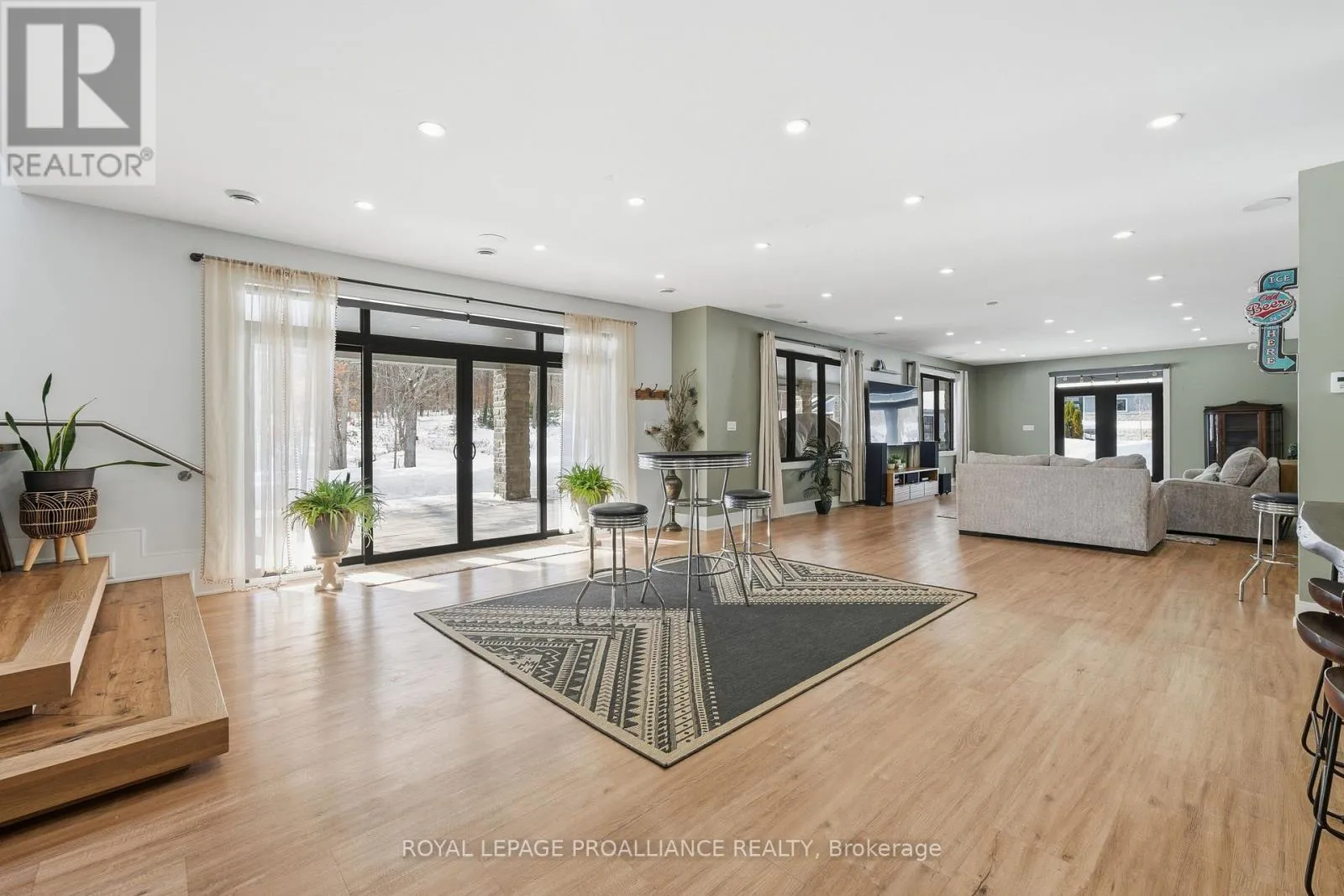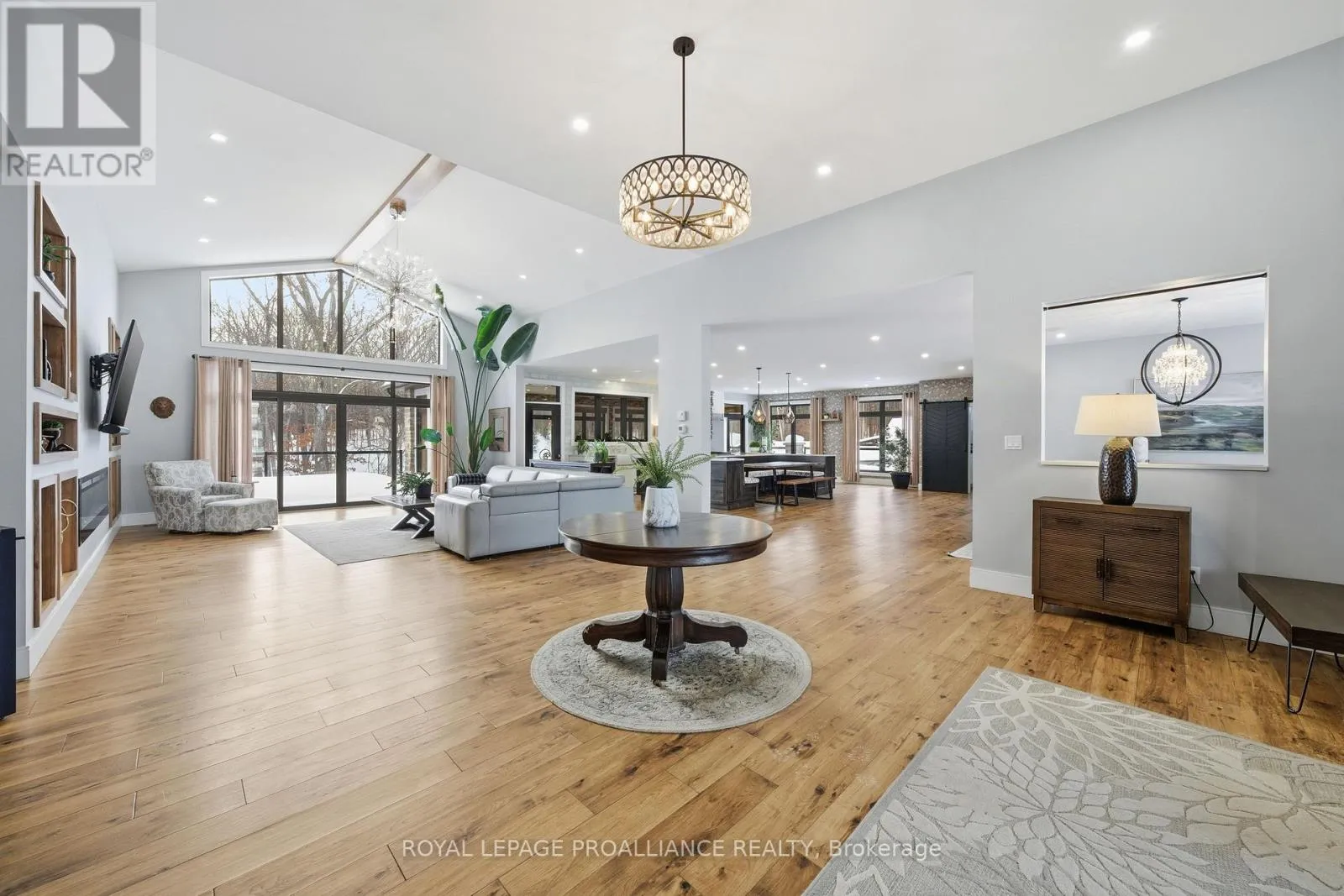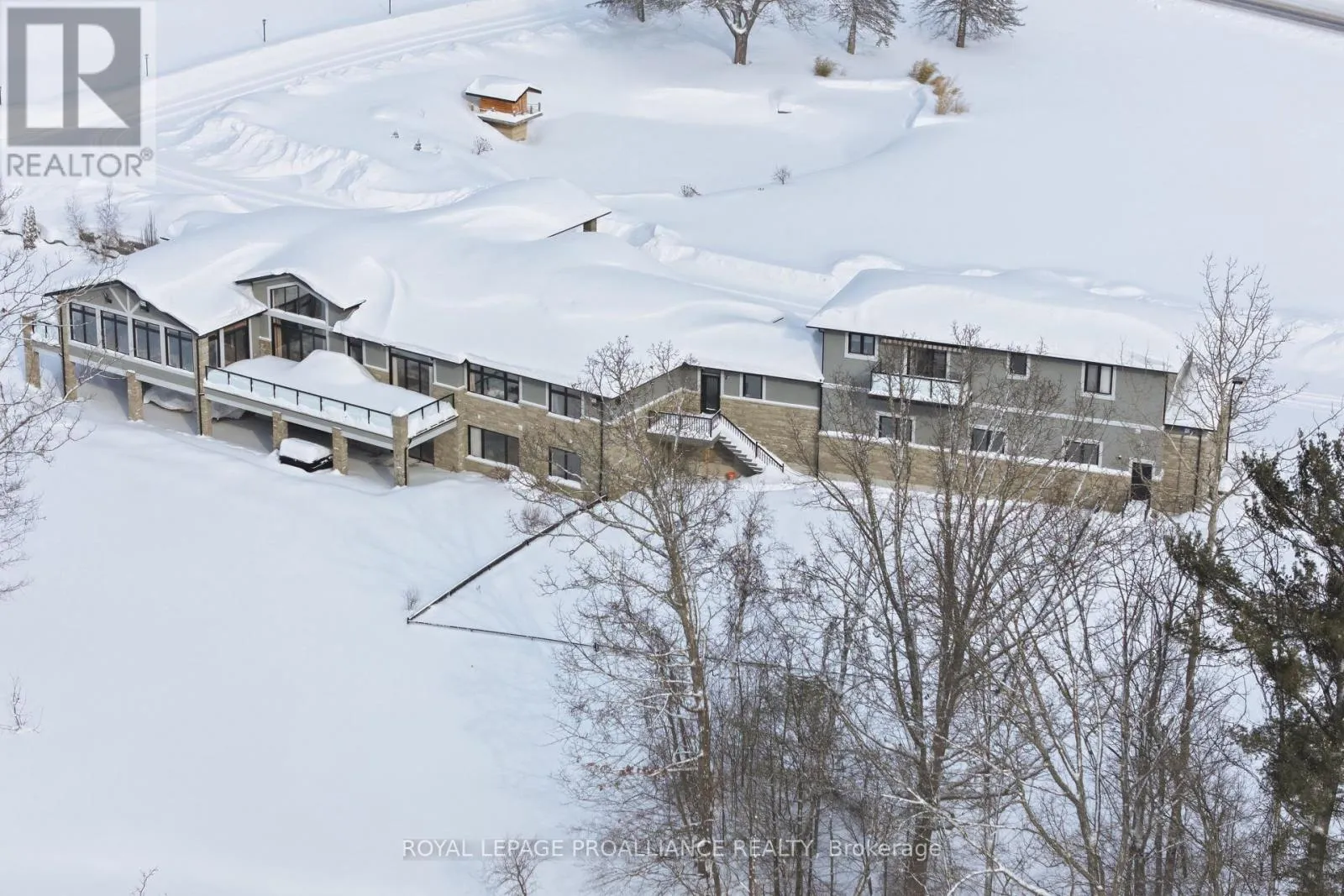 County Road 40 & Murray Street Set on approximately 40 acres of beautifully treed land, this exceptional County Road 40 estate offers an unparalleled blend of privacy, luxury, and lifestyle. Trails wind throughout the property, complemented by multiple ponds and thoughtfully designed outdoor spaces that invite year-round enjoyment. The main residence offers just under 5,000 sq. ft. on the main level, plus nearly 4,000 sq. ft. of finished living space below. An open-concept design with soaring ceilings and abundant natural light creates an ideal setting for both everyday living and entertaining. The main floor features three spacious bedrooms, each with its own private ensuite, including a primary suite with dual walk-in closets-his and hers. The fully finished lower level adds two additional bedrooms, expansive recreation space, an exercise room, sauna, and a hidden room behind a striking round wooden door-ideal for a future wine cellar or private retreat. Above the three-car garage, a 1,150 sq. ft. self-contained in-law suite offers excellent flexibility for family or guests. Outdoor amenities include a fully self-sufficient pool house, saltwater pool, basketball court, full irrigation system, operational greenhouse, barn, and a 1,500 sq. ft. workshop. Meticulously maintained and thoughtfully designed, this is a legacy property that would be extraordinarily difficult to replicate. (id:27476)