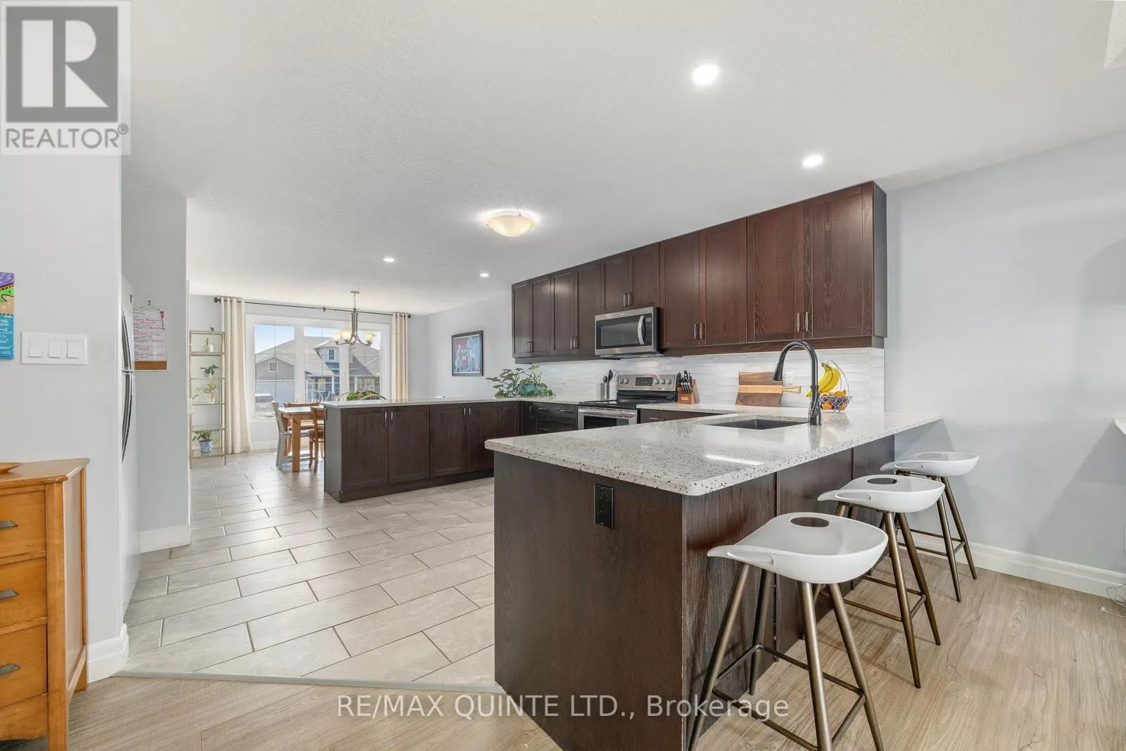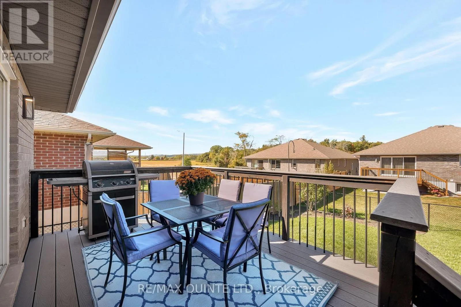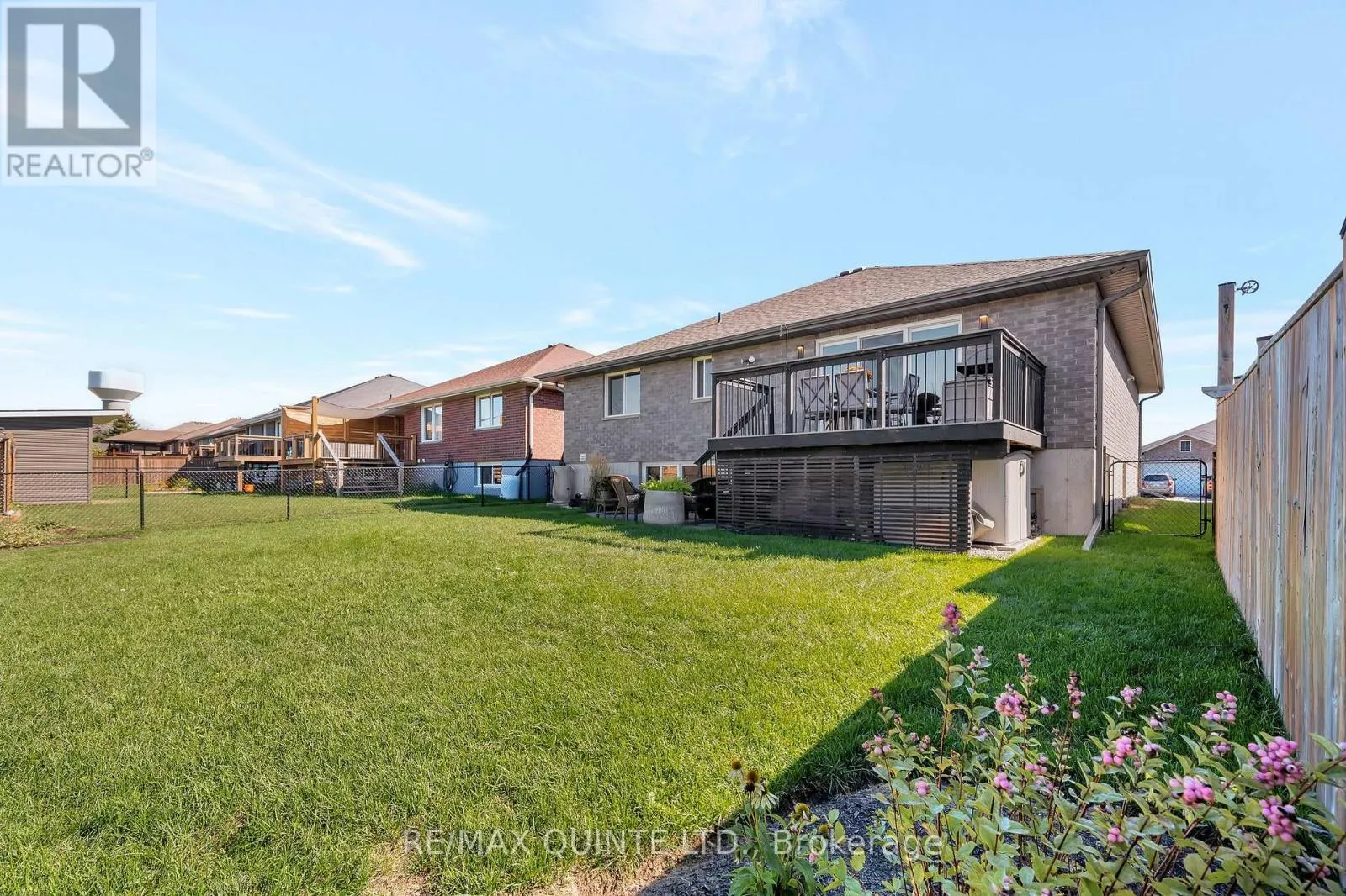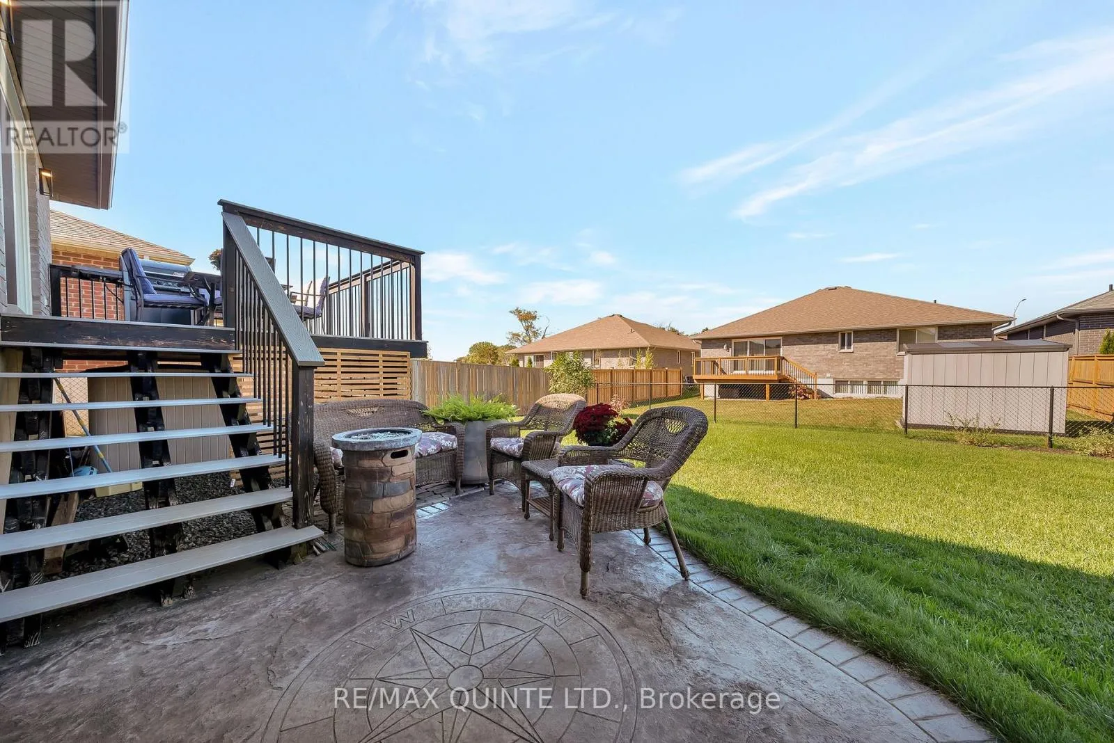 Little Farm Blvd & McIntosh Cres Offering 5 bedrooms and 3 bathrooms, this move-in-ready bungalow showcases thoughtful upgrades, meticulous care, and a seamless blend of style and comfort. Step into a sun-filled, open-concept main floor where the family room-anchored by a tray ceiling with pot lights-flows effortlessly into the dining area and chef-inspired kitchen. The kitchen impresses with terrazzo-quartz countertops, a composite granite double sink, premium cabinetry, and a stylish tile backsplash. The main-floor primary suite is a true private retreat, featuring a spacious custom walk-in closet and a spa-like ensuite with a double vanity, dual sinks, and a sleek stand-up shower. Downstairs, the bright and expansive lower level extends your living space with a large rec room, full bathroom, and three generous bedrooms, including one with its own walk-in closet-ideal for guests, teens, or a growing family. Outside, enjoy a deep, fully fenced backyard (2021) designed for relaxation and entertaining, complete with a composite deck, three-panel patio doors, stamped concrete patio, and ample green space. The triple-wide concrete driveway and insulated double-car garage provide exceptional parking and storage convenience. Notable upgrades include custom living room cabinetry (2021), front landscaping (2023), and a refreshed kitchen backsplash (2024). Located in a highly sought-after neighborhood close to schools, parks, shopping, CFB Trenton, and Hwy 401-and just a short drive to Sandbanks, Presqu'ile, and North Beach Provincial Parks-this home is perfectly suited for families, professionals, and outdoor enthusiasts alike. A rare opportunity to own a beautifully finished home in an unbeatable location-don't miss it. (id:27476)