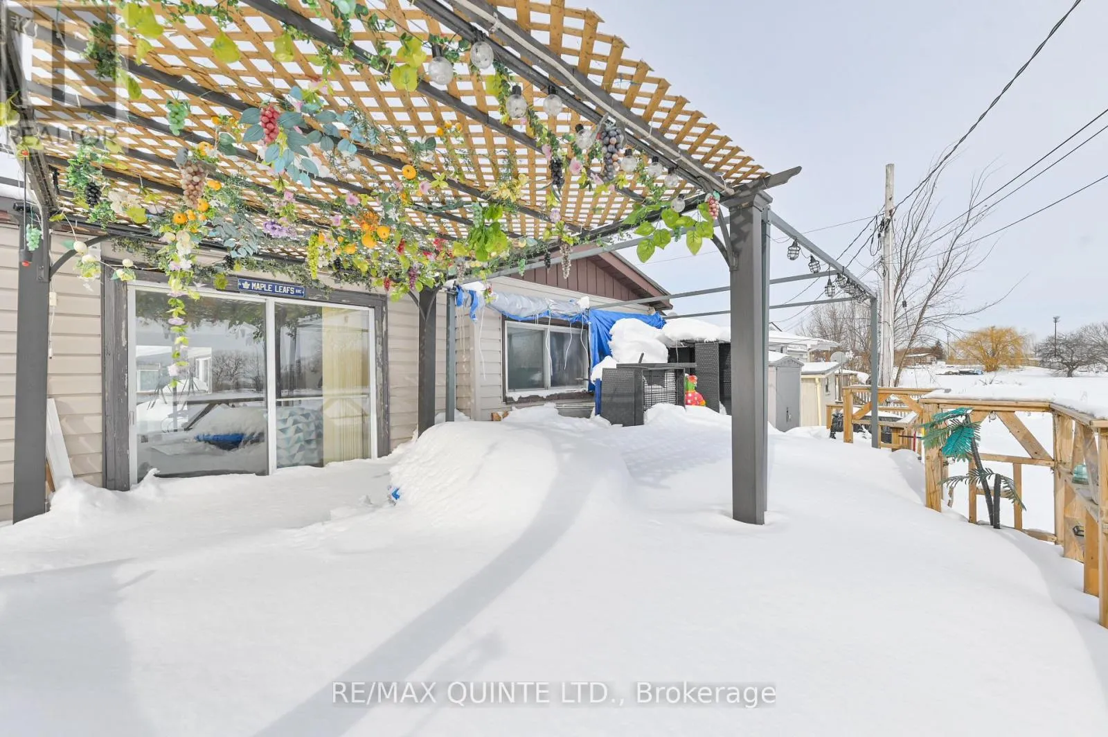 Cross Streets: RCAF & Dundas. ** Directions: Dundas Street E to Skyview Park. Experience the ultimate in low-maintenance living with this spacious mobile home, offering over 1,150 sq ft of comfort and style. Designed for those who want to spend less time on chores and more time enjoying life, this home features a fabulous outdoor space and a convenient carport-perfect for embracing the mobile park lifestyle. Step inside and discover a home that truly stands out. Enjoy two spacious bedrooms and an updated four-piece bath that add comfort and appeal to your everyday living. A bright, spacious eat-in kitchen and separate dining room offer ample space for quiet moments or entertaining. The welcoming family room, complete with a gas stove, is the perfect spot to unwind while taking in stunning views of the Bay of Quinte. Step through the patio door to a large deck-ideal for effortless outdoor living and gatherings. With minimal yard work required, you can enjoy your time doing what you love. Recent updates, such as a new hot water tank, heat pump, windows, metal roof, and modernized kitchen, mean you can move in with peace of mind. Carport included-a rare bonus in this park! Another rare feature in this park: a waterfront Lot! This home also includes your very own private dock, perfect for fishing, launching a small watercraft, or simply unwinding by the water. Here, every day feels like a getaway, and the sense of community and freedom make this park an incredible place to call home. Discover the best of affordable mobile park living-minimal maintenance, incredible amenities, and a wonderful sense of community-all within walking distance to restaurants and shopping. Complete with Washer, Dryer, Fridge, Stove, and Dishwasher, there is nothing to do but move in. Current Lot fee is 340.13 + 61.08 taxes + 122.97 water per month, for a total of 524.18 paid monthly to park. Increases to lot fees are regulated by the RTA. This is your opportunity to embrace a relaxed, rewarding lifestyle. Schedule your visit today! (id:27476)