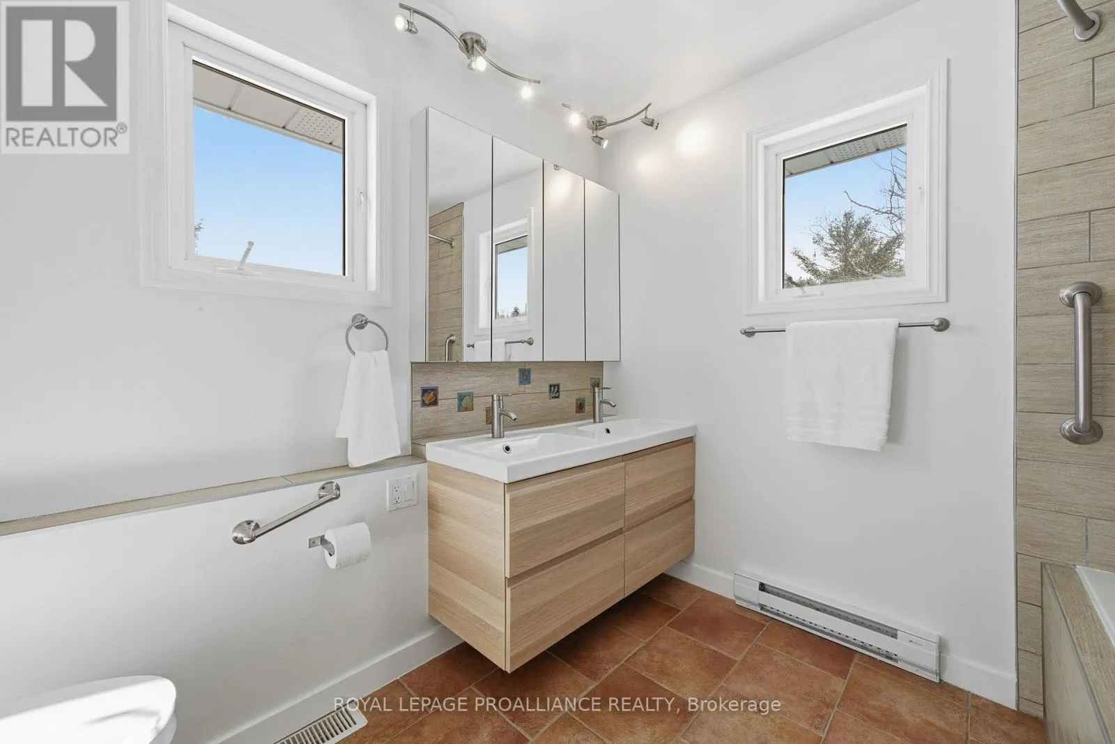 Cross Streets: Airport Rd & Flying Club Rd. ** Directions: Fish and Game. Now THIS view you deserve to wake up to! Perched on 3.365 private acres in Quinte West, this beautifully updated two-storey offers over 2,100 sq ft above grade plus nearly 1,200 sq ft of fully finished walk-out basement, delivering the perfect blend of country living and modern comfort. The main floor features gleaming hardwood throughout, a bright and spacious living room, a cozy den with propane fireplace, and a sitting room off the kitchen with sweeping countryside views. The heart of this home is a stunning kitchen with storage you won't believe, a massive centre island, granite countertops, built-in butcher block prep area, rich wood cabinetry with glass-front uppers, stainless steel appliances, and a chimney range hood, all bathed in natural light. Upstairs, the spacious primary bedroom includes a custom walk-in closet and 3pc ensuite. A generous second bedroom with double closets, a large third bedroom currently used as an office, an updated 5pc bath with soaker tub and tiled surround, and convenient second-floor laundry complete the upper level. The upper landing offers a versatile space perfect for a home office, reading nook, or sitting area. The finished walk-out basement is set up as a self-contained bachelor suite with a kitchenette, 3pc bath, huge flex room, rec room, cold room, and a large covered patio walkout with its own locking entrance, perfect for guests or secondary living quarters. Step outside to a full-length rear deck with multiple access points, overlooking acres of natural beauty with mature trees and rolling countryside views. The oversized double garage features built-in workshop space and interior access with an accessibility ramp. Just 10 minutes to downtown Trenton, the Trent River, and CFB Trenton, 15 minutes to downtown Belleville, and quick access to the 401. Country living without compromise. (id:27476)