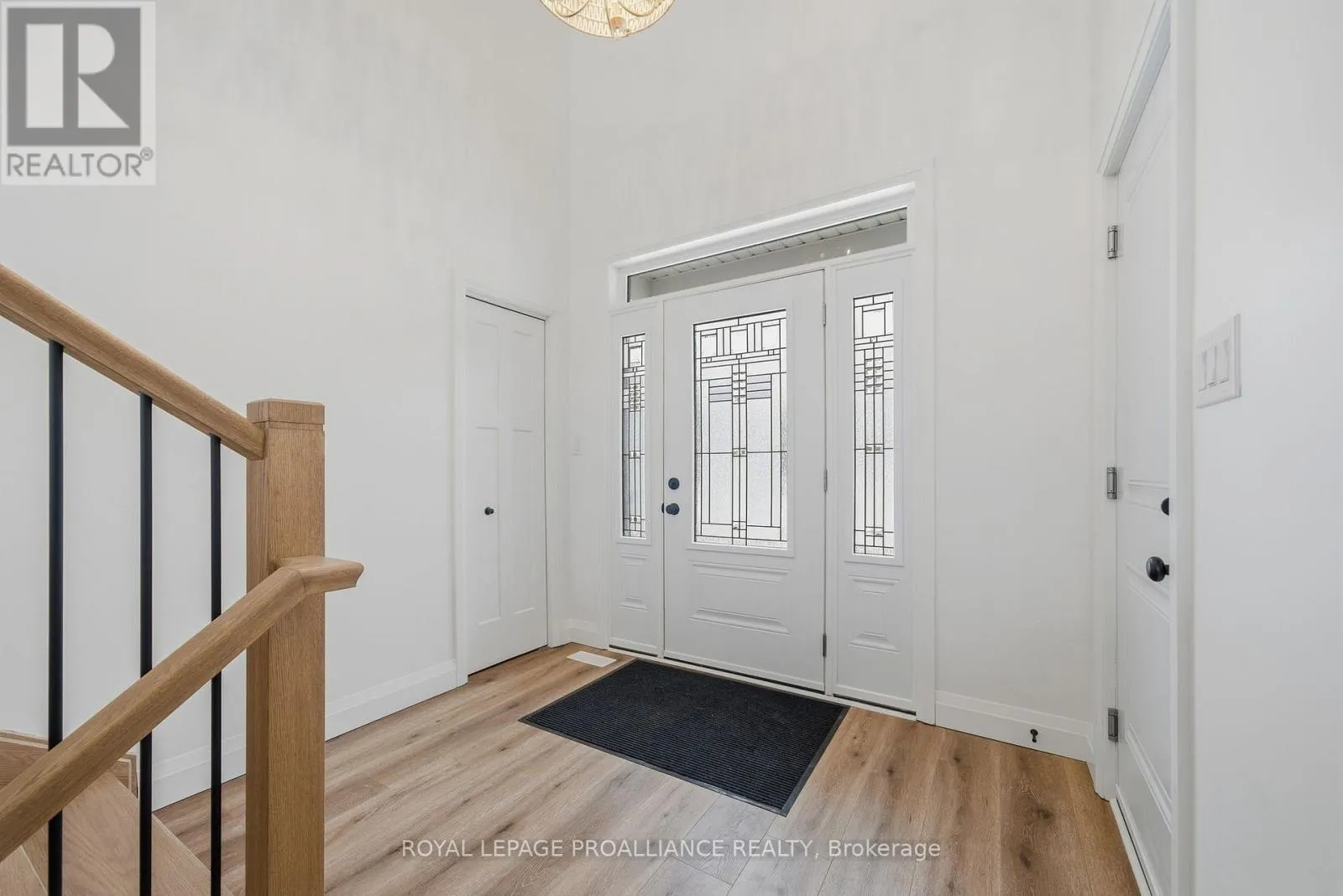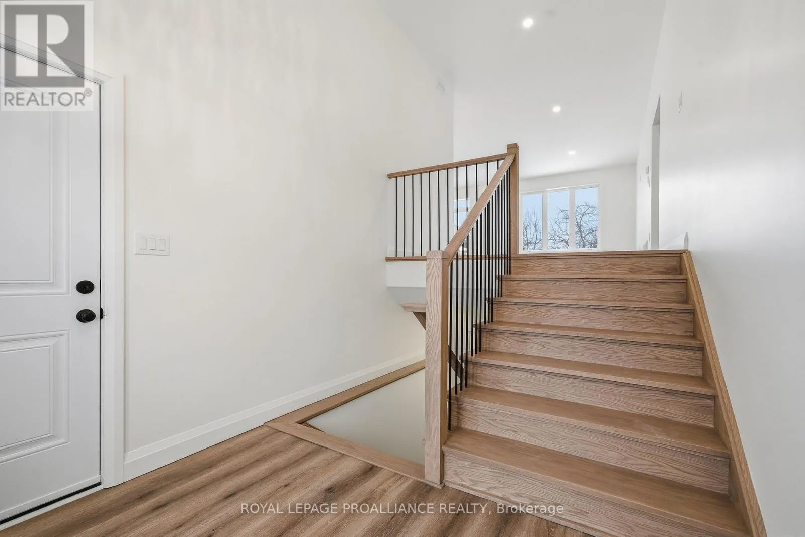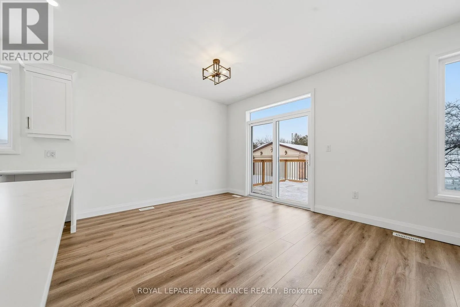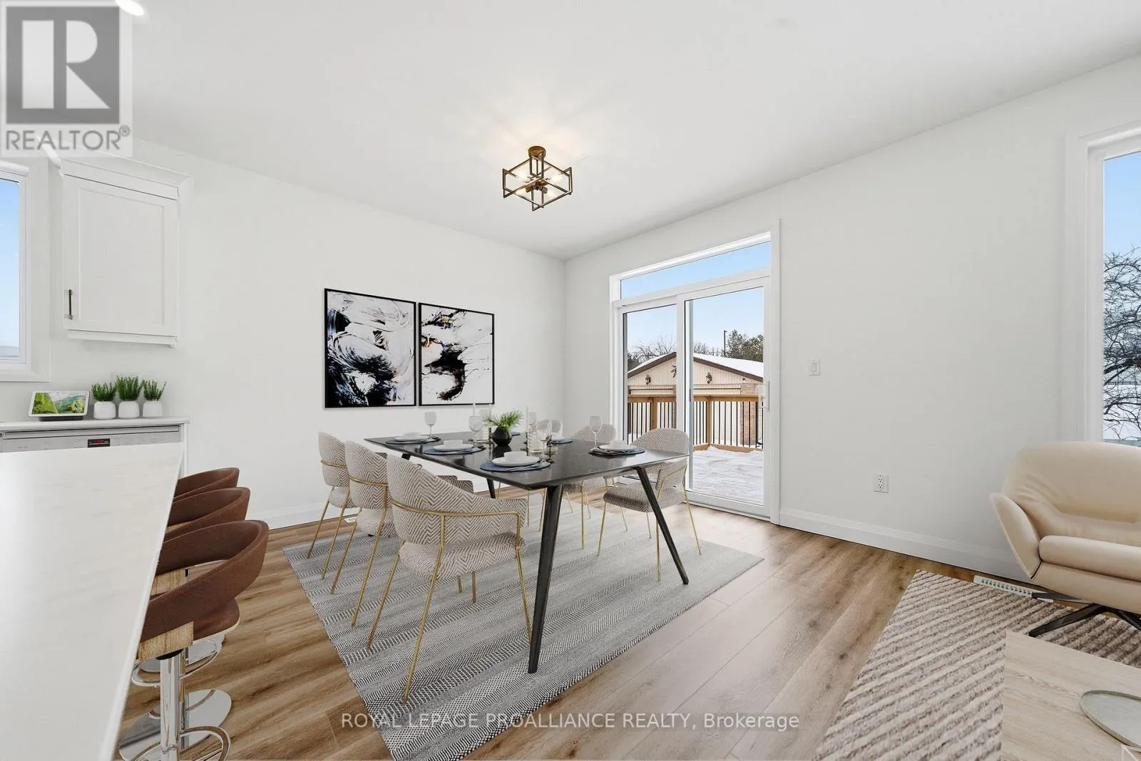 Cross Streets: Flindall & Bay. ** Directions: Flindall St to Bay St. Situated in the heart of Trenton within great walking distance to restaurants, shopping & Centennial Park offering children's play structure, baseball & soccer fields, open green space to roam & paved waterfront walking trails along the beautiful Bay of Quinte. FarDun Group presents this tastefully finished brand new home with Tarion Warranty, available for immediate occupancy if desired. Convenient double drive to the front covered porch into the spacious foyer with 15 ft ceiling or enter via the attached 261 sq ft garage. Oak staircase & railing invites you to this bright open plan. Timeless finishing selections here with 9 ft ceilings & neutral durable laminate flooring throughout. Classic shaker style kitchen cabinets in natural white with popular dekton countertops, deep granite undermount sink & detached entertaining island overlooking the sun filled dining & pot lit living area through the double sliding doors with transom feature & triple elongated windows. The large primary bedroom is positioned to the rear with generously sized walk-in closet. This main level also provides a second bedroom, full bath & large linen closet. Additional square feet available in the full unspoiled basement with bathroom rough in & three large windows allowing flexibility for your future layout. Need a finished basement now? The builder is open to discussing! Bonus, this beauty comes with a 12x12 deck & stairs to the already established yard. 152 Bay Street combines the perfect blend of easy new build living & modern design. You're invited to view the many perks this home has to offer at the OPEN HOUSE, Saturday February 14th 12-1:30pm. (id:27476)