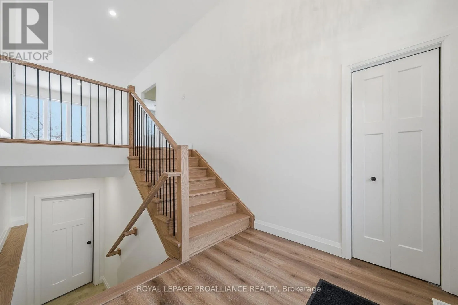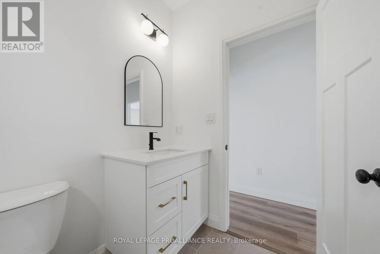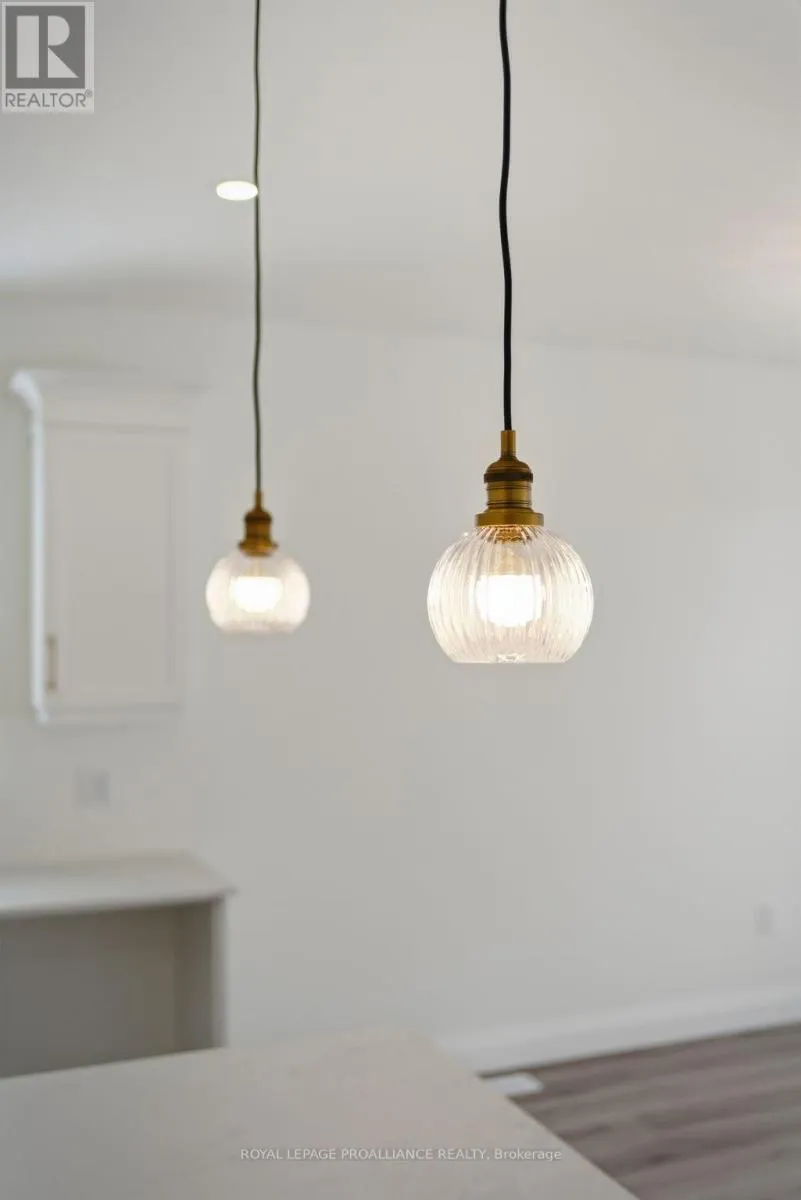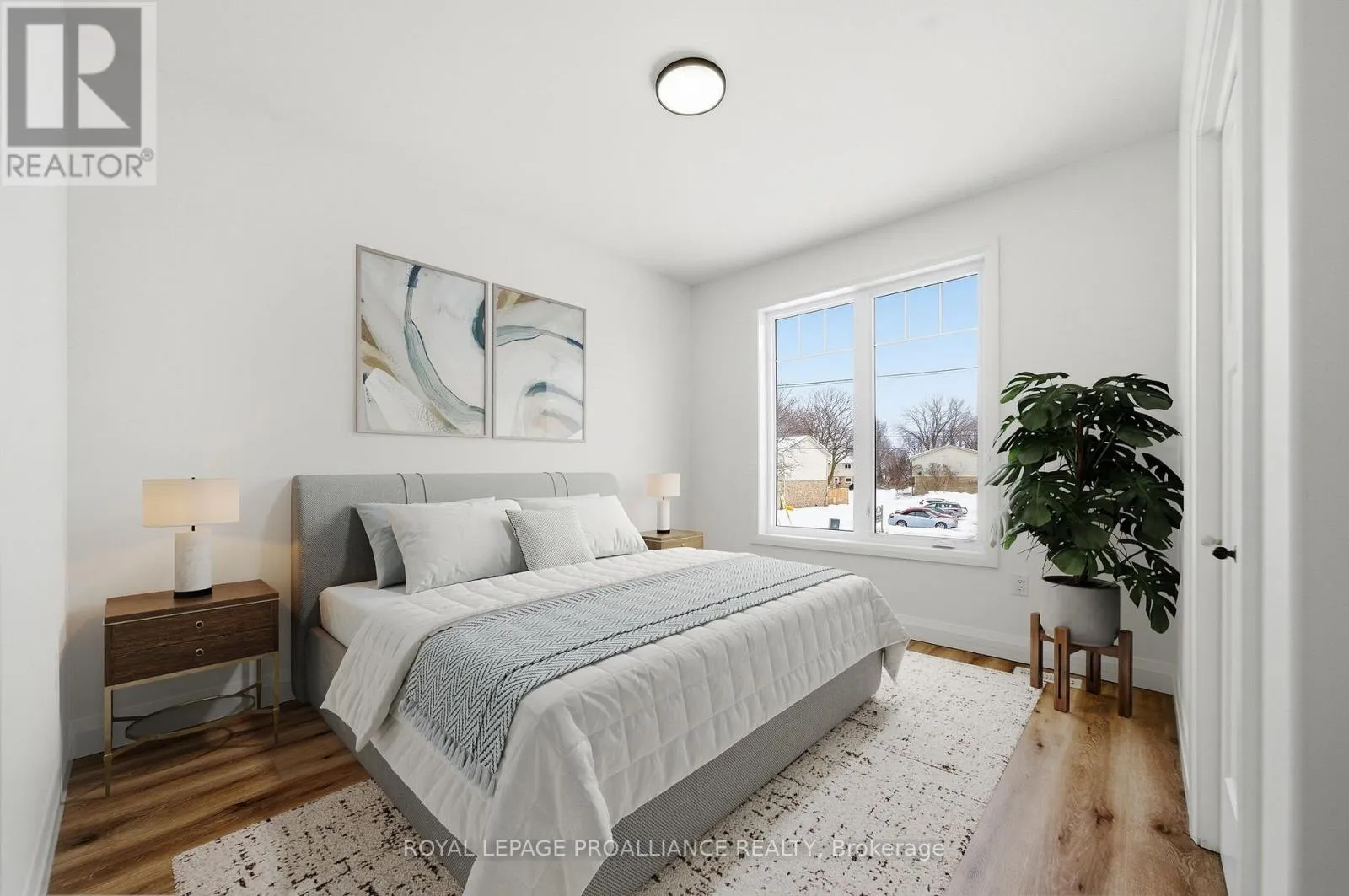 Cross Streets: Flindall & Bay. ** Directions: Flindall St to Bay St. Situated in the heart of Trenton within great walking distance to restaurants, shopping & Centennial Park offering children's play structure, baseball & soccer fields, open green space to roam & paved waterfront walking trails along the beautiful Bay of Quinte. FarDun Group presents this tastefully finished brand new home with Tarion Warranty, available for immediate occupancy if desired. Convenient double drive to the front covered porch into the spacious foyer with 15 ft ceiling or enter via the attached 261 sq ft garage. Oak staircase & railing invites you to this bright open plan. Timeless finishing selections here with 9 ft ceilings & neutral durable laminate flooring throughout. Classic shaker style kitchen cabinets in natural white with popular dekton countertops, deep granite undermount sink & detached entertaining island overlooking the sun filled dining & pot lit living area through the double sliding doors with transom feature & triple elongated windows. The large primary bedroom is positioned to the rear with generously sized walk-in closet. This main level also provides a second bedroom, full bath & large linen closet. Additional square feet available in the full unspoiled basement with bathroom rough in & three large windows allowing flexibility for your future layout. Need a finished basement now? The builder is open to discussing! Bonus, this beauty comes with a 12x12 deck & stairs to the already established yard. 152 Bay Street combines the perfect blend of easy new build living & modern design. You're invited to view the many perks this home has to offer at the OPEN HOUSE, Saturday February 14th 12-1:30pm. (id:27476)