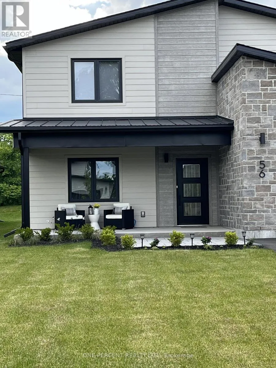 Hwy 33 To Plant To Fraser Dr. Welcome to 56 Fraser Drive in Batawa, where modern design meets thoughtful upgrades and a private, tree-lined setting. This is the "Alpina" model inspired by chalets. This one was formerly the show home that has been loaded with upgrades. It offers 3 bedrooms, 2.5 bathrooms, an office, an open-concept layout, and 9-foot ceilings that create a bright, spacious feel throughout the main level. The stunning kitchen is built for everyday living and entertaining, featuring a 10-foot island, quartz countertops, lots of cupboard space, a large pantry, black appliances, upgraded extractor fan, and pot lights flowing seamlessly into the dining and living areas. The living room offers a cozy natural gas fireplace and stylish custom blinds from Select Blinds, while just off the main space is a covered patio (approx. $15,000 upgrade) that extends your living area outdoors. The custom laundry room includes a quartz counter, additional storage and newer LG washer and dryer (approx. 2 years old). Built on a slab foundation with in-floor heat on the main floor and upstairs bathrooms, the home also features a fully insulated attached garage and Bell alarm system. Upstairs you'll find a bonus sitting room or potential playroom, main bath with double sinks, XL linen closet, and a very spacious primary bedroom with an extra large walk-in closet and private ensuite. Outside, the interlocking walkway adds curb appeal, and there's a private backyard, including beautiful lilac trees. Located in Batawa, you're minutes from the Lower Trent Trail, nature trails, and Batawa Ski Hill, offering year-round recreation in a scenic community yet close to all of the amenities of Trenton. The home has been meticulously cared for with nothing to do but move in, book your showing today! (id:27476)