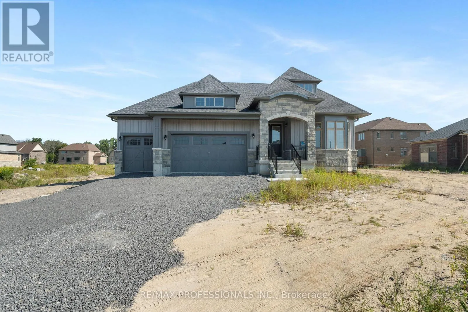 Cross Streets: Loyalist Parkway & County Rd. 64. ** Directions: Loyalist Parkway and County Rd. 64. Stunning Brand New Never Lived In, 5 bed 4 bath Bungaloft. Modern & Sleek Kitchen with High End Black Stainless Steel Appliances, Oversized Quartz Kitchen Island & Breakfast Bar, Backsplash, & Pantry room. Open Concept to Eat-in Kitchen with walkout to 220 ft PREMIUM LOT. Must See Upper Level Loft Overlooking Great Room with 18 foot Vaulted Ceilings and Grand Portrait Windows and fireplace. Main level Primary room with 6 pc ensuite with all glass shower walk-in shower and standalone soaker tub, walk-in closet, double door walk out to yard. Main floor laundry and Mudroom. 10 parking spaces including 3 car garage. Home is under Tarion warranty. **EXTRAS** Largest Vineyard Floor Plan. 2700+ Square Feet. $$$$ Upgraded finishes. High End Appliances. Hardwood Floors and Hardwood Stairs. Builder to lay new grass, pave 7 car driveway + plant trees. (id:27476)