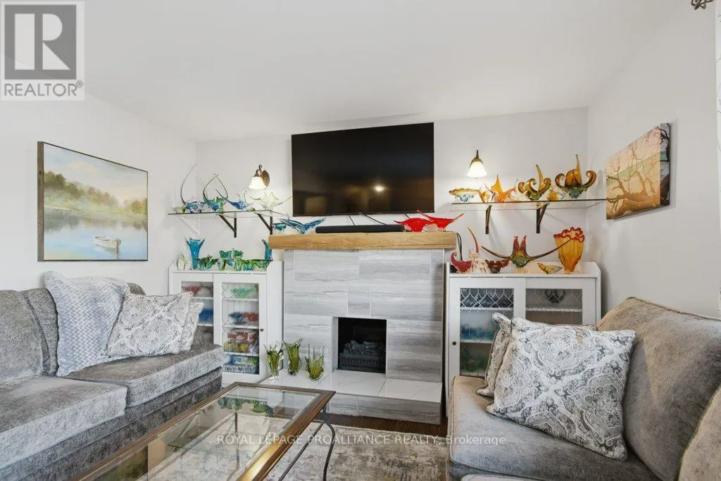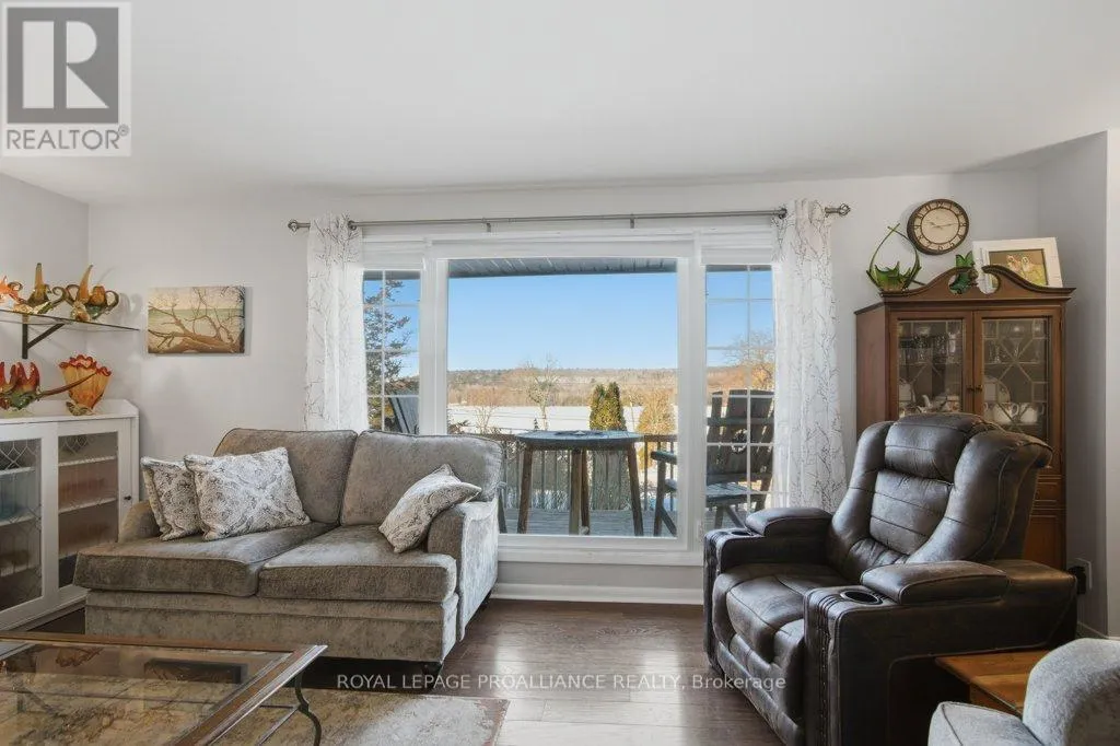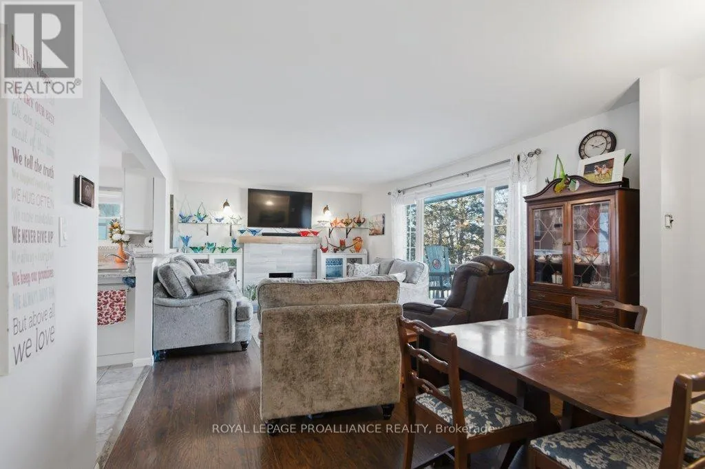 Cross Streets: Frankford Stirling Road/Riverside Drive. ** Directions: Frankford Stirling Road third house from Trent River Estates. Enjoy comfortable main floor living in this well-appointed home featuring two main floor bedrooms, with a primary suite complete with a private ensuite. Main floor laundry adds to the ease of everyday living. The bright kitchen offers an abundance of cupboards, providing plenty of storage and workspace. Relax in the inviting living room highlighted by a electric fireplace (no heat) and a beautiful view of the Trent River. The finished above-ground lower level expands your living space with a generous rec room, featuring a walk out, wood stove, an additional den, and a large workshop/garage ideal for hobbies, storage, or projects. Step outside to a peaceful backyard overlooking a wooded area, offering privacy and a serene natural setting. This home combines practicality, comfort, and scenic views-perfect for relaxed living both indoors and out. (id:27476)