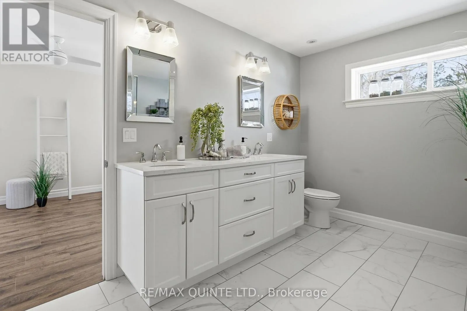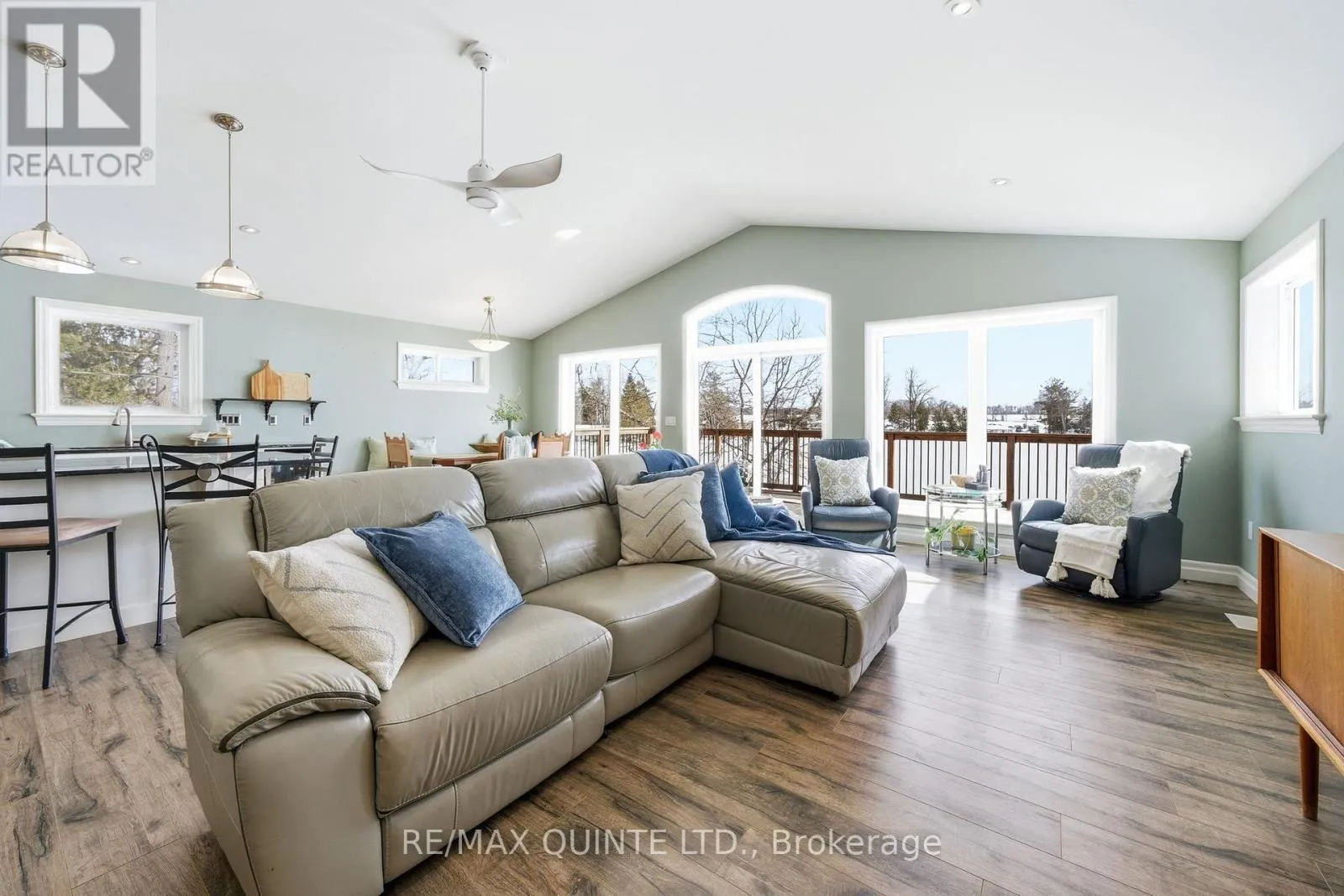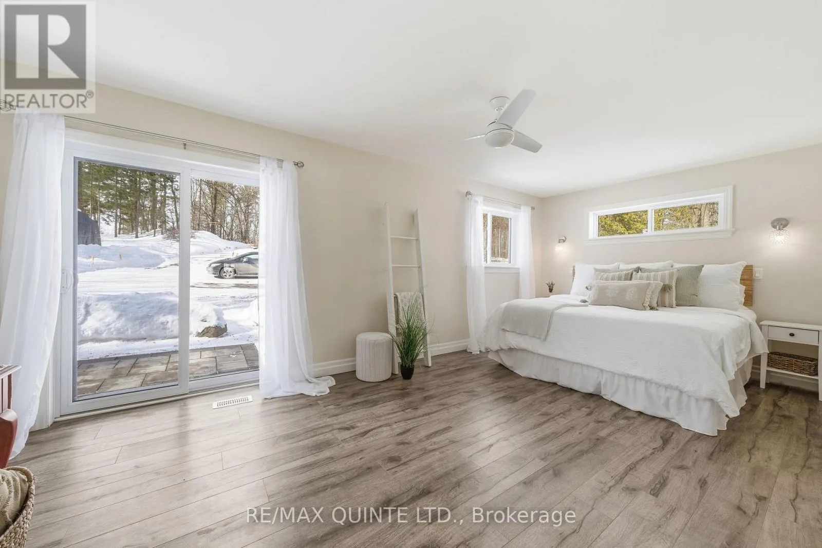 Cross Streets: Frankford Stirling Rd/John Meyers. ** Directions: North on 62, West on John Meyers to #75. Welcome to Oak Lake - where life slows down, the views stretch wide, and every season tells its own story. Built in 2019, this 4-bedroom bungalow offers 2,800 sq ft of beautifully finished living space and rests on 0.37 acres with over 60 feet of private shoreline - your front-row seat to summer swims, fiery fall reflections, and peaceful winter mornings. Step inside and the view steals your breath before you even set your keys down. Vaulted ceilings rise above the open-concept great room, and an expansive wall of windows frames the water like living art. From the kitchen, dining, and living areas, the lake is always in sight. Designed for real life, the kitchen flows seamlessly to the upper deck - perfect for effortless entertaining and long summer evenings outdoors. The kitchen features granite countertops, an abundance of cabinetry, and a walk-in pantry with built-in shelving and stand-up freezer. The primary suite is a true retreat. Wake to the sounds of nature, step out through patio doors, and ease into your day. A walk-through closet and a spa-inspired ensuite with in-floor heating create comfort in every detail. A second main-floor bedroom offers space for guests or a home office, and the thoughtfully designed laundry room features built-in storage, folding space, and utility sink. The walkout lower level extends the lifestyle with two additional bedrooms, a spacious rec room, and a full kitchenette - ideal for teens, extended family, or weekend visitors. A 3-piece bath with heated floors adds extra comfort. Outside, a covered patio leads to the shoreline where days are spent swimming, boating, fishing, or gathering around the fire pit. With ample parking and a storage shed, this home was built for easy, year-round living. Located under 15 minutes to Stirling and Belleville with quick Highway 401 access, you're never far from what you need. This isn't just a waterfront property. It's four-season lake living - exactly as it should be! (id:27476)