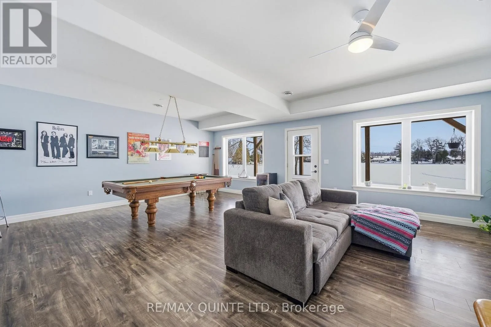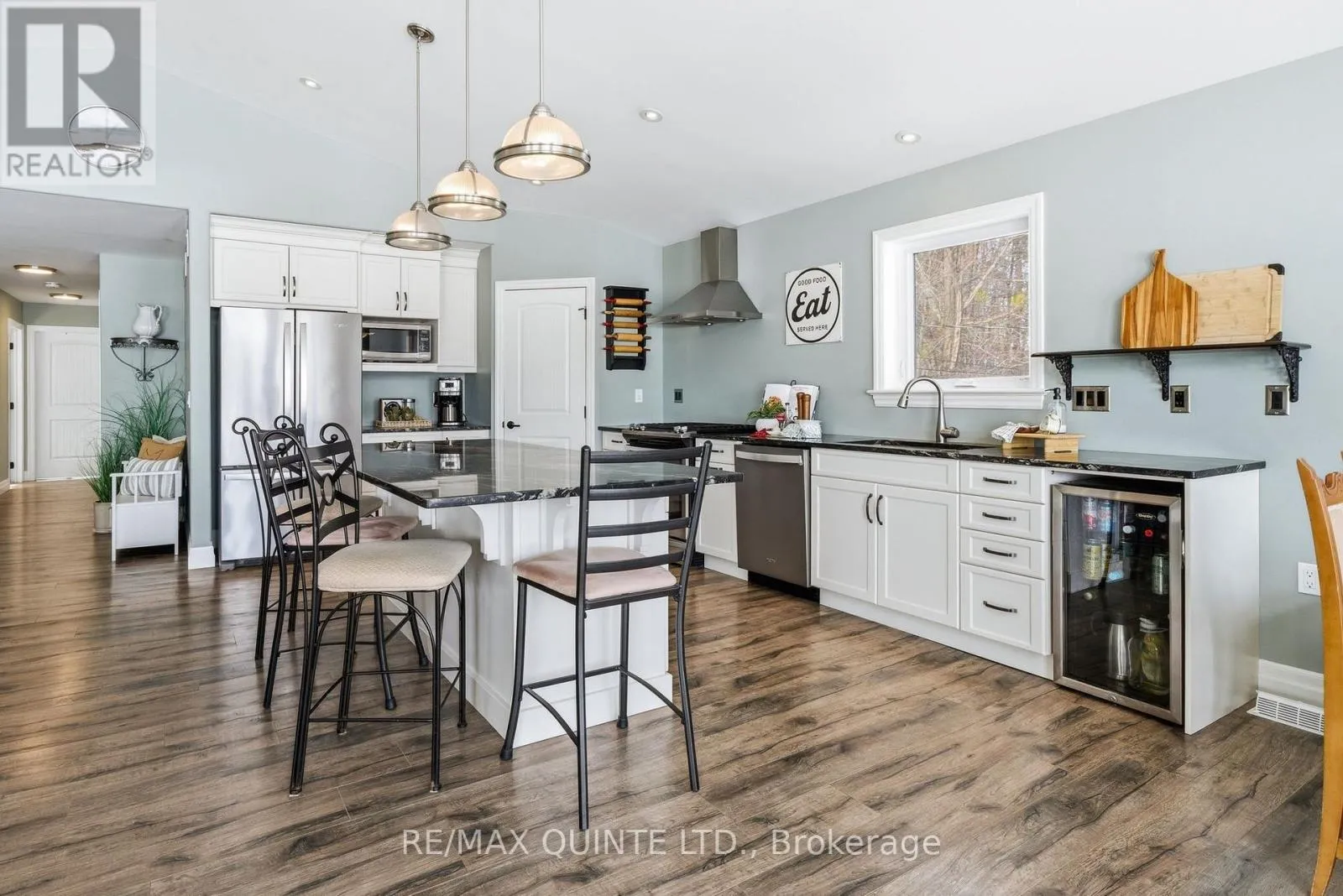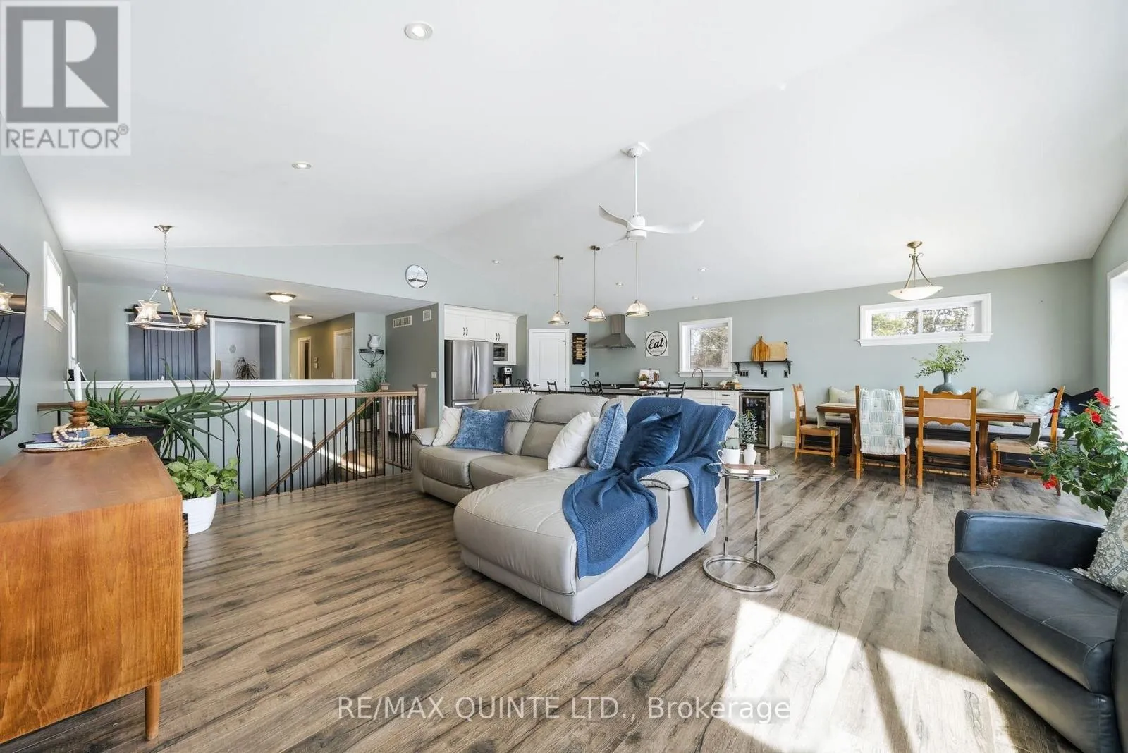 Cross Streets: Frankford Stirling Rd/John Meyers. ** Directions: North on 62, West on John Meyers to #75. Welcome to Oak Lake - where life slows down, the views stretch wide, and every season tells its own story. Built in 2019, this 4-bedroom bungalow offers 2,800 sq ft of beautifully finished living space and rests on 0.37 acres with over 60 feet of private shoreline - your front-row seat to summer swims, fiery fall reflections, and peaceful winter mornings. Step inside and the view steals your breath before you even set your keys down. Vaulted ceilings rise above the open-concept great room, and an expansive wall of windows frames the water like living art. From the kitchen, dining, and living areas, the lake is always in sight. Designed for real life, the kitchen flows seamlessly to the upper deck - perfect for effortless entertaining and long summer evenings outdoors. The kitchen features granite countertops, an abundance of cabinetry, and a walk-in pantry with built-in shelving and stand-up freezer. The primary suite is a true retreat. Wake to the sounds of nature, step out through patio doors, and ease into your day. A walk-through closet and a spa-inspired ensuite with in-floor heating create comfort in every detail. A second main-floor bedroom offers space for guests or a home office, and the thoughtfully designed laundry room features built-in storage, folding space, and utility sink. The walkout lower level extends the lifestyle with two additional bedrooms, a spacious rec room, and a full kitchenette - ideal for teens, extended family, or weekend visitors. A 3-piece bath with heated floors adds extra comfort. Outside, a covered patio leads to the shoreline where days are spent swimming, boating, fishing, or gathering around the fire pit. With ample parking and a storage shed, this home was built for easy, year-round living. Located under 15 minutes to Stirling and Belleville with quick Highway 401 access, you're never far from what you need. This isn't just a waterfront property. It's four-season lake living - exactly as it should be! (id:27476)