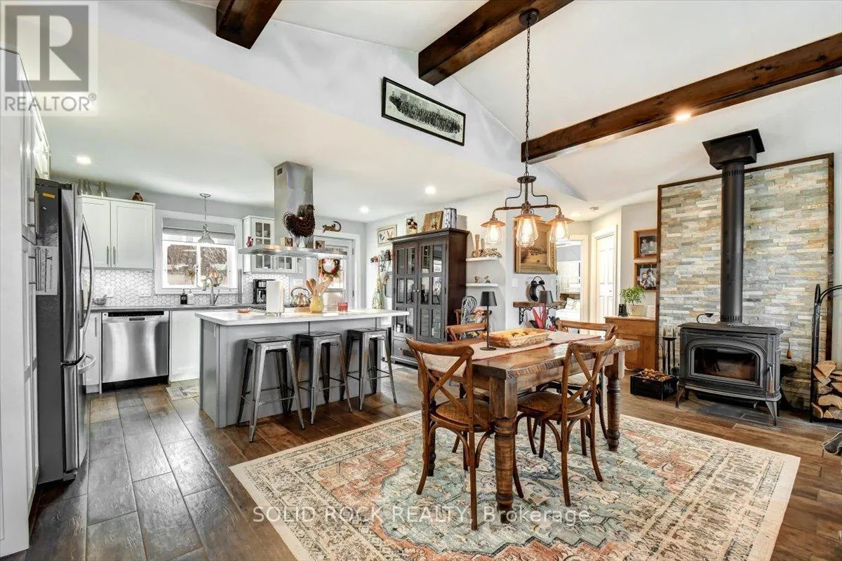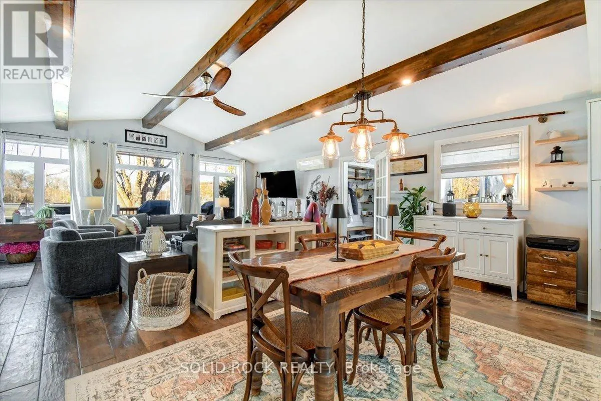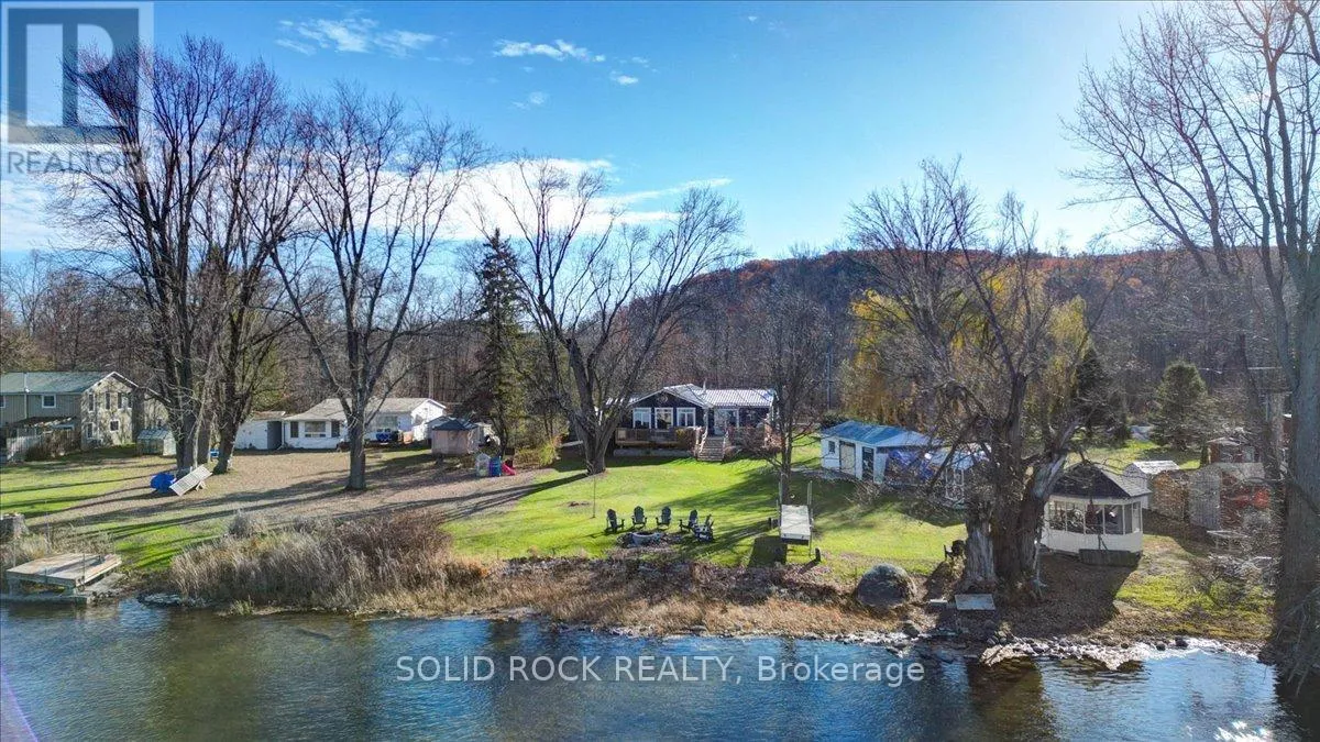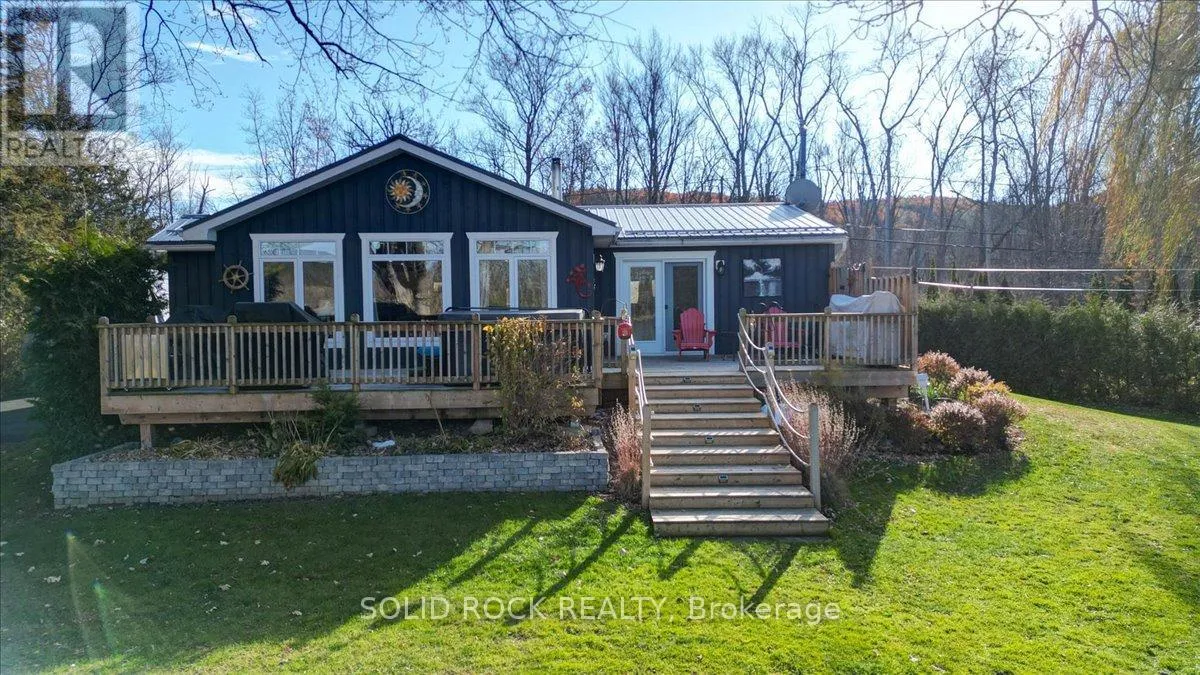 Cross Streets: Glen Ross Rd and Cooke Armstrong Rd. ** Directions: From HWY 401 go north on HWY 33 to Cooke Armstrong Rd, turn right. Welcome to this exceptional waterfront property, offering the perfect blend of comfort, charm, and year-round relaxation. This well maintained 2-bedroom, 2-bath home sits on just over .5 acre landscaped lot with breathtaking sunset views and direct access to the water, allowing you to enjoy peaceful living and fishing right from your own dock. Step inside to an inviting open-concept kitchen, dining, and living area designed for effortless flow and natural light. The kitchen features stainless steel appliances, abundant cabinetry, and generous counter space. Striking wood beams add warmth and character, while porcelain flooring runs throughout the main living area for durability and style. A cozy wood stove creates the perfect ambiance on cooler evenings. The spacious primary bedroom boasts a private 3-piece ensuite and direct patio access, making it an ideal space for quiet mornings or enjoying fresh air before bed. The second bedroom is conveniently located next to main bathroom providing function and practicality which includes the laundry facilities, adding to the home's thoughtful layout. A practical mudroom provides additional organization and storage. Outdoor living is truly exceptional here. Relax and unwind on the deck, complete with a hot tub, or gather around the fire pit for evenings under the stars. The property also includes a charming screened-in gazebo, perfect for bug-free summer nights, as well as a workshop and a delightful she shed-ideal for hobbies, storage, or creative space. The beautifully landscaped grounds enhance the home's tranquil atmosphere, with open sightlines to the water and incredible sunset views that never gets old. Whether you're looking for a year-round residence or a peaceful getaway, this property offers unmatched comfort, charm, and riverside living. Don't miss the opportunity to make this stunning waterfront home your own. (id:27476)