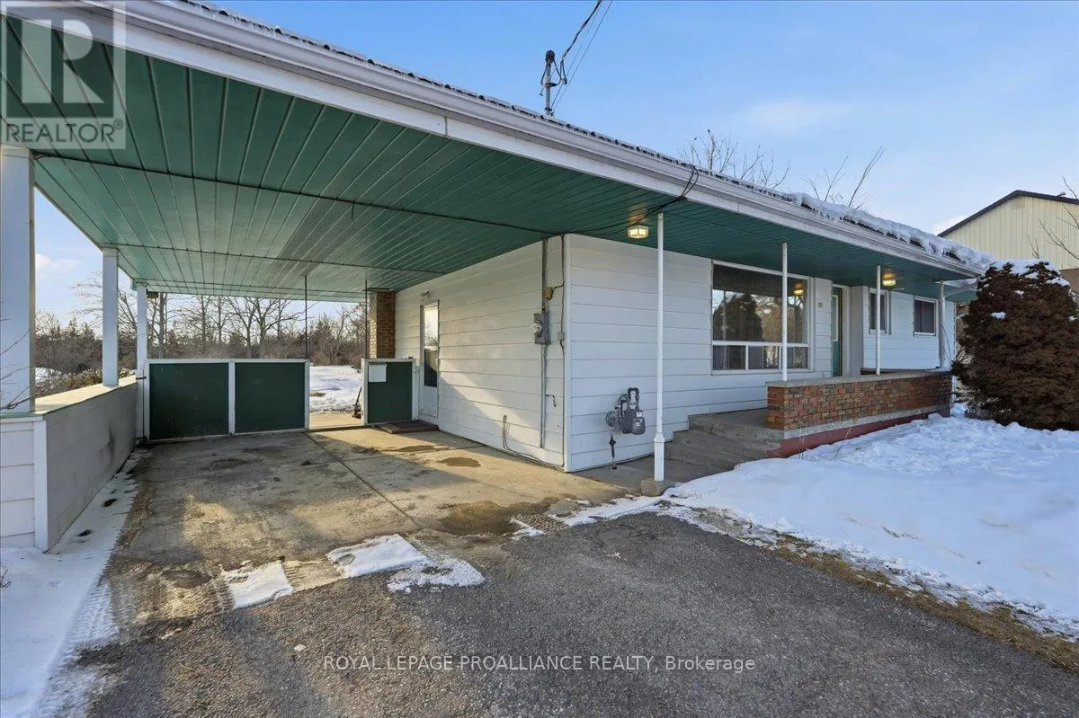 Aikins Road & Old Highway 2 Welcome to this quaint bungalow ideally located within close proximity to both Belleville and Trenton in a sought-after area close to local public and secondary schools as well as CFB Trenton. Situated on an impressive approximately 1.4-acre lot, this property offers the perfect balance of rural space with convenient access to amenities.Freshly painted throughout in warm, neutral tones and featuring original hardwood flooring. The main floor is filled with plenty of natural light from large windows throughout. A dining area flows comfortably off the cozy kitchen, into the spacious living room creating an inviting space for everyday living. The main level offers three bedrooms and a full four-piece bathroom.The unfinished basement provides excellent potential for future development and additional living space tailored to your needs. Thoughtful updates and features include a durable steel roof, numerous updated windows, natural gas heating, municipal water service, a natural gas furnace and increased insulation in the attic.Outside, the unique large lot provides exceptional outdoor space for walking, gardening, pets, or children to enjoy. A carport and ample parking complete the property. An excellent opportunity for first-time buyers or those looking to downsize while still enjoying privacy and space. (id:27476)