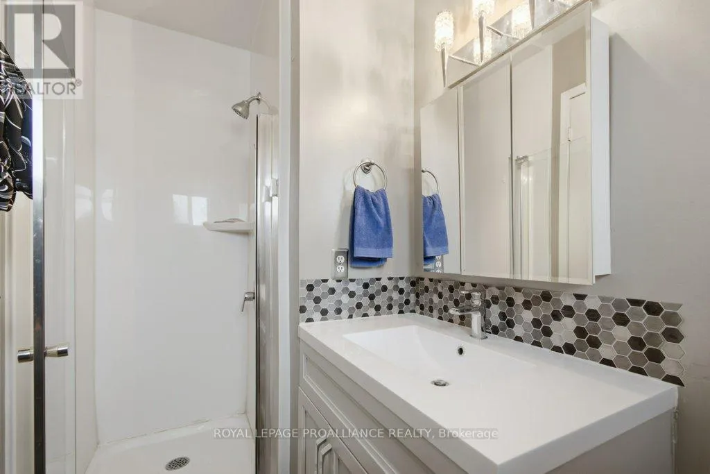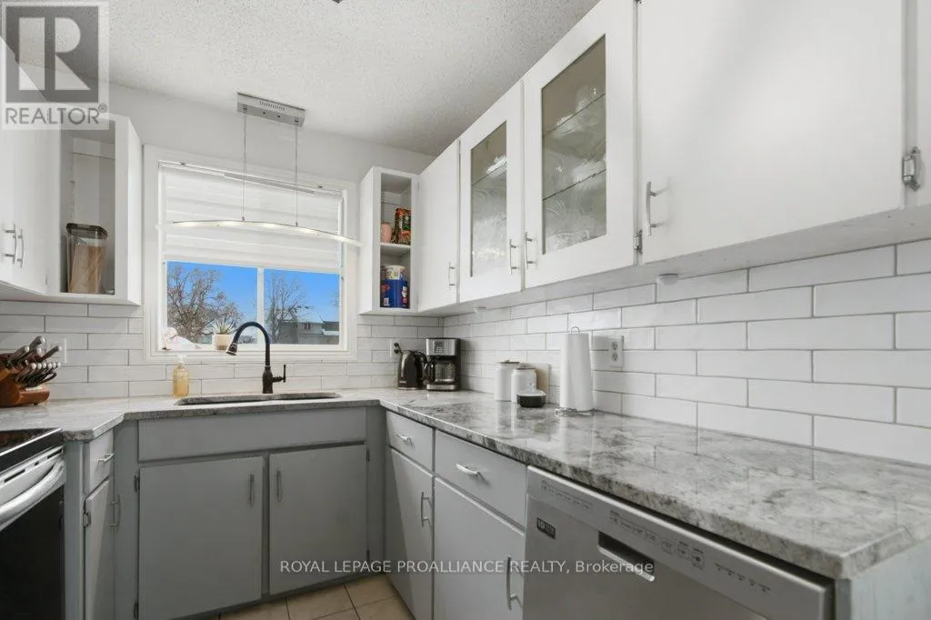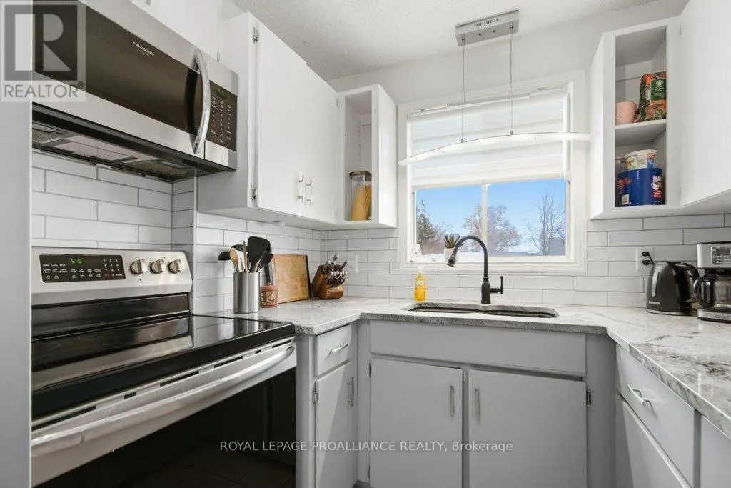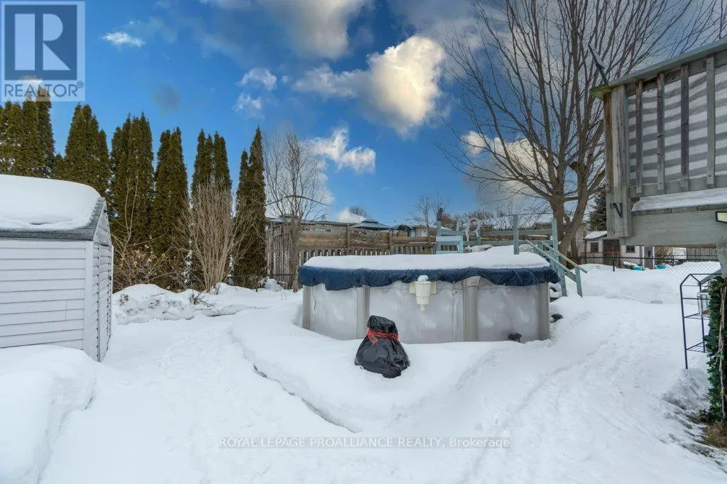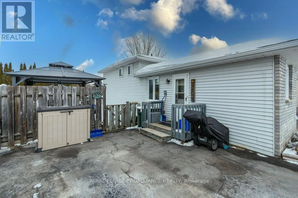 Sidney St / Birch St This well-maintained 3 bedroom, 2 bath backsplit offers the perfect blend of comfort and functionality in a fantastic location. The spacious eat-in kitchen features beautiful quartz countertops, providing both style and durability, along with plenty of room for cooking and casual dining. Large windows fill the space with natural light, creating a bright and welcoming atmosphere. The inviting living room boasts a cozy gas fireplace, perfect for relaxing evenings at home. Upstairs, you'll find a primary bedroom complete with a 3-piece ensuite and balcony to the backyard, along with two additional bedrooms and a 4-piece main bathroom, ideal for families or guests. The lower level offers even more living space, including a large finished rec room that can easily serve as an entertainment area, home office, or kids' playroom. You'll also find a convenient laundry room and utility room on this level. Situated on a mature lot, the fully fenced backyard is ready for summer enjoyment with an above-ground pool and a large storage shed. A new heat pump (2024) adds modern efficiency and comfort. Ideally located just minutes to CFB Trenton, downtown Trenton, and Highway 401, this home offers both convenience and lifestyle. A wonderful opportunity in a sought-after area! (id:27476)