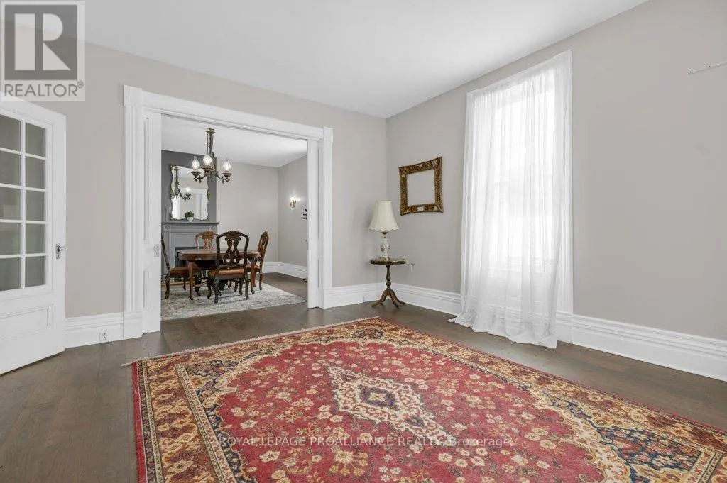 Cross Streets: Hwy 2 and Marmora. ** Directions: Hwy 2 (Dundas) to Marmora Street. Welcome to this spacious 3-storey, 4-bedroom, 4-bath home offering timeless character and exceptional living space. The main floor features a large kitchen with an attached den/office area, ideal for working from home or enjoying a quiet moment. You'll also find elegant formal living and dining rooms complete with classic pocket doors. A grand staircase leads to the second level with three generous bedrooms, all with hardwood flooring along with multiple bathrooms for family convenience. The third-floor loft provides a versatile studio, office, or bonus room. The full basement extends the entire length of the home and include a workshop plus direct outside access. Enjoy evenings on the wrap-around verandah or spend time in the backyard garden space. A charming and spacious home in a central Trenton location. Close to all amenities, schools, shopping, CFB Trenton and 401. Come and see what this beautiful home has to offer. (id:27476)