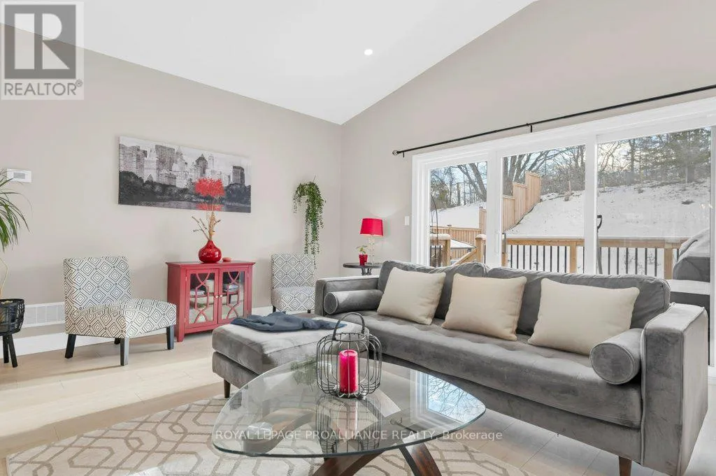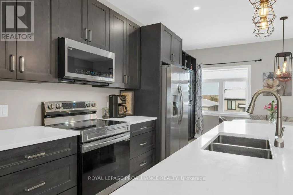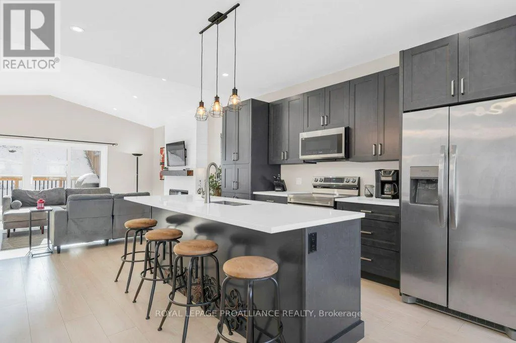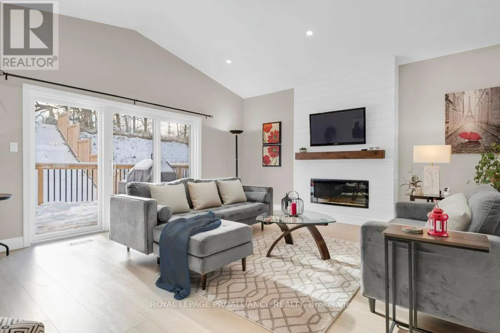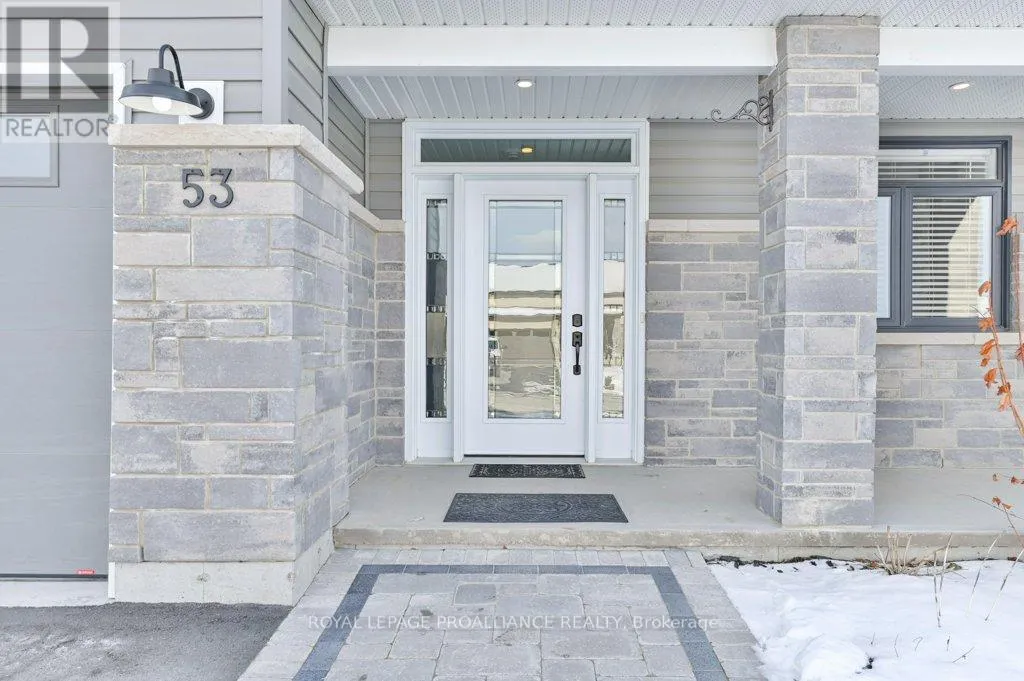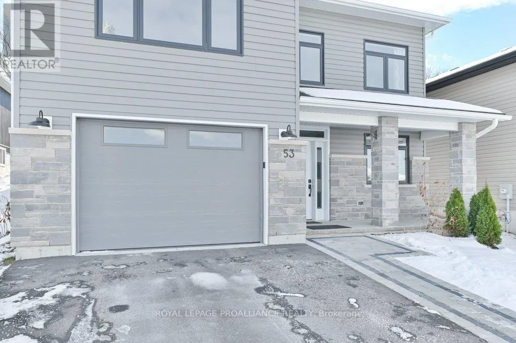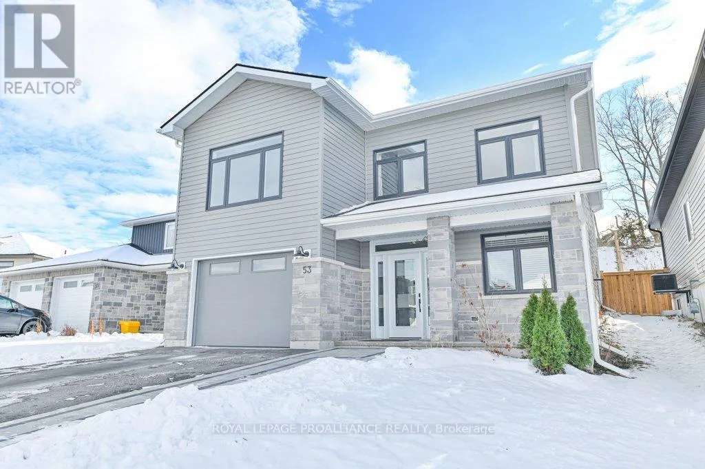 Cross Streets: North Trent St / Huffman Rd / Kyle Ct / Meagan. ** Directions: North Trent St/Hufman Rd/Kyle Crt/Meaghan. Welcome to 53 Meagan Lane-an executive 2023 residence that elevates the standard of a modern new build, featuring over $25,000 in upgrades. This turnkey luxury home is perfectly located with quick access to the 401, Belleville, and CFB Trenton. Within 2 km, enjoy downtown Frankford, the Frankford Tourist Park and Beach, the Trent River, golf, trails, playgrounds, shops, restaurants, and essential amenities-everything that makes this community so loved.Inside, bright sophistication defines the space with 9-foot ceilings, a stunning vaulted living room, and a seamless open-concept layout designed for both everyday living and entertaining. The gourmet kitchen showcases an impressive 8-foot quartz island and a striking full wall of glass-front cabinetry-perfect for hosting gatherings while staying connected with family and guests. The living area offers warmth and character with a beautiful shiplap-framed fireplace that creates a cozy focal point during cooler months. Main-floor laundry and a 200-amp service add convenience and functionality. Includes 6 high end appliances.The primary suite is a peaceful retreat with a walk-in closet and a spa-inspired ensuite featuring a custom glass shower and premium finishes.Step outside to a private outdoor oasis designed with entertaining in mind. An 8-foot patio door leads to a spacious deck and lower patio area, creating a seamless indoor-outdoor flow that is perfect for summer barbecues, evening cocktails, and gatherings with friends and family. The professionally landscaped, fully fenced yard offers exceptional privacy with no rear neighbors and beautiful backyard views of the Trent River. Perennial gardens and mature greenery enhance the peaceful setting, while the all-season gazebo provides a comfortable outdoor living space to relax or entertain throughout the warmer months. The built-in natural gas barbecue hook-up makes hosting effortless, and an elegant interlocking walkway further enhances the home's curb appeal. (id:27476)